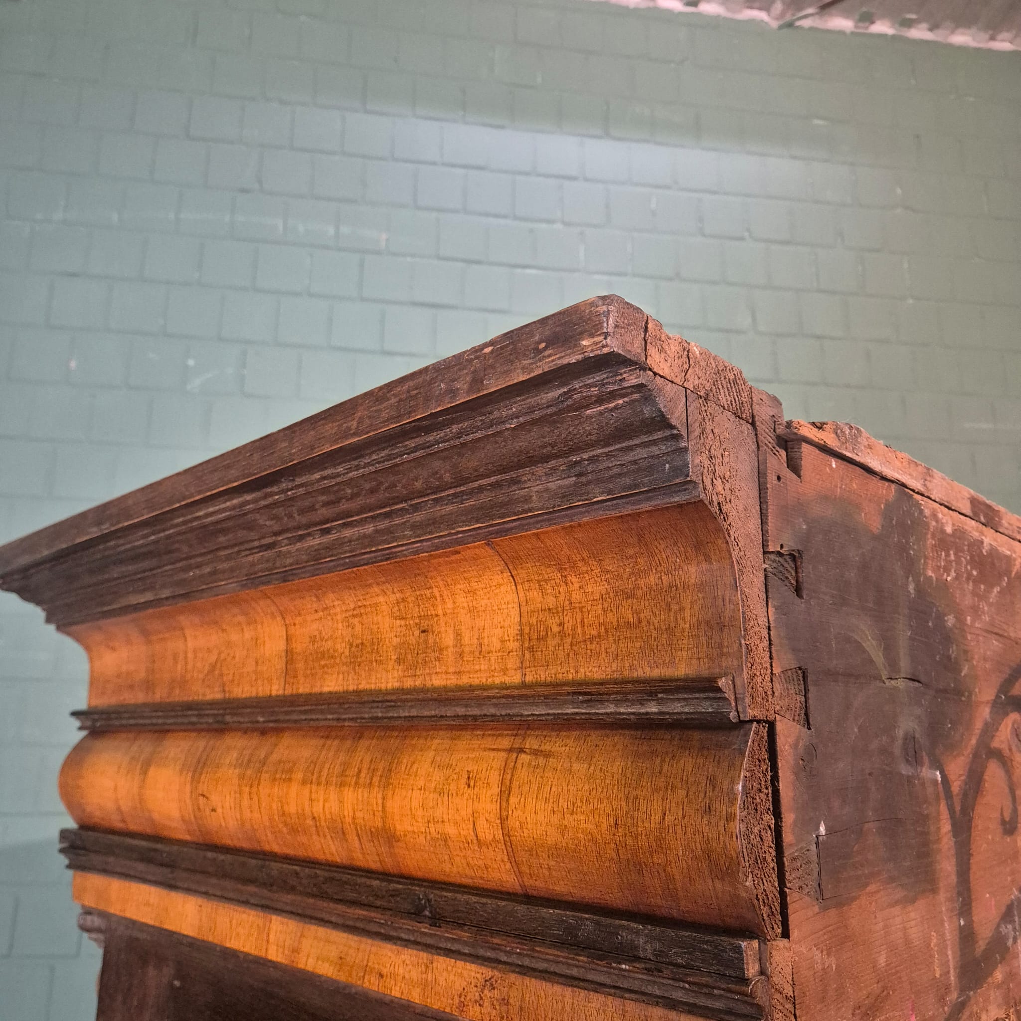 Restored neo-Baroque walnut-on-oak veneered cabinet from circa 1860. The cabinet is in very good condition and has minimal signs of use. Dismountable (7-piece).