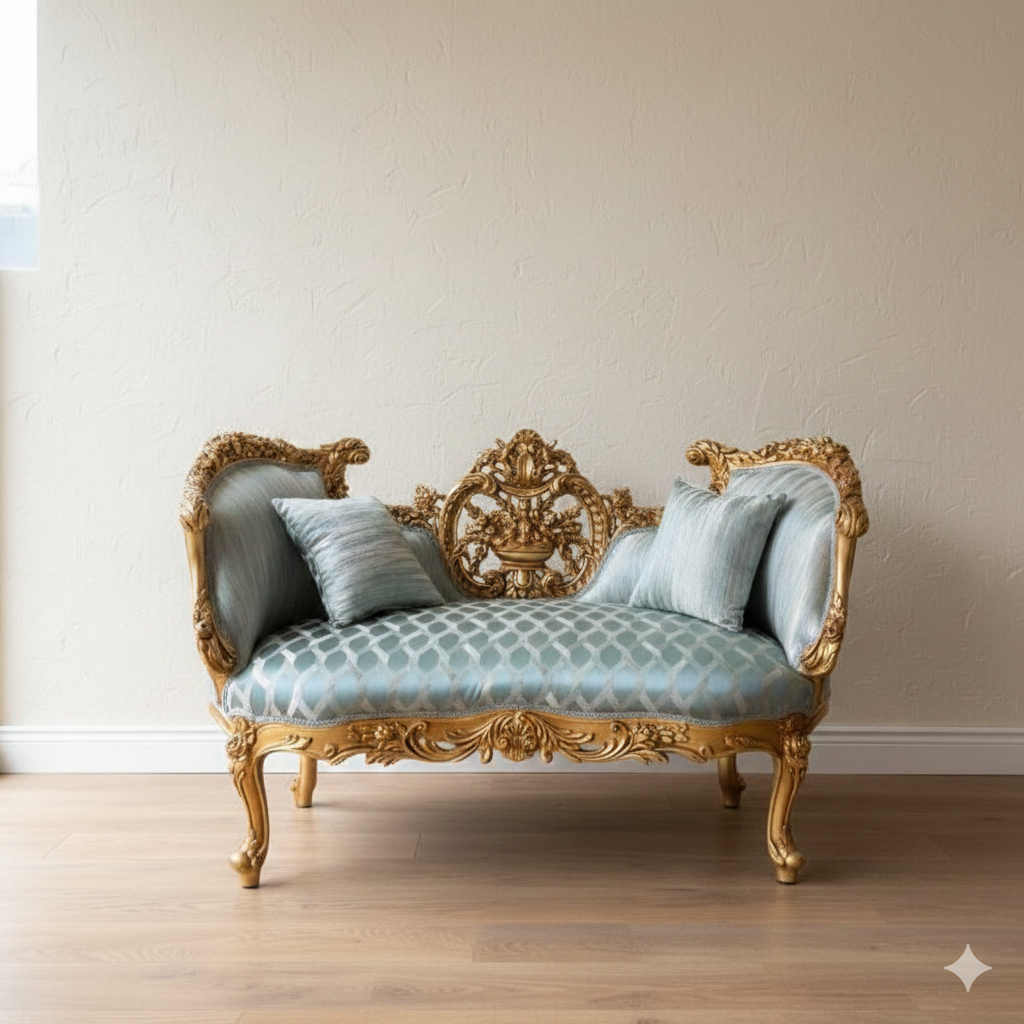 Bank Sofa Baroque style Gold-Silver Blue 1.35 m