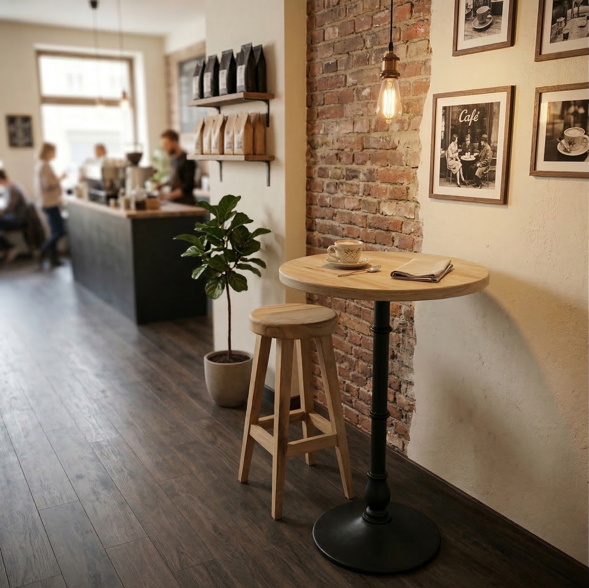 Bar stool made of solid teak.