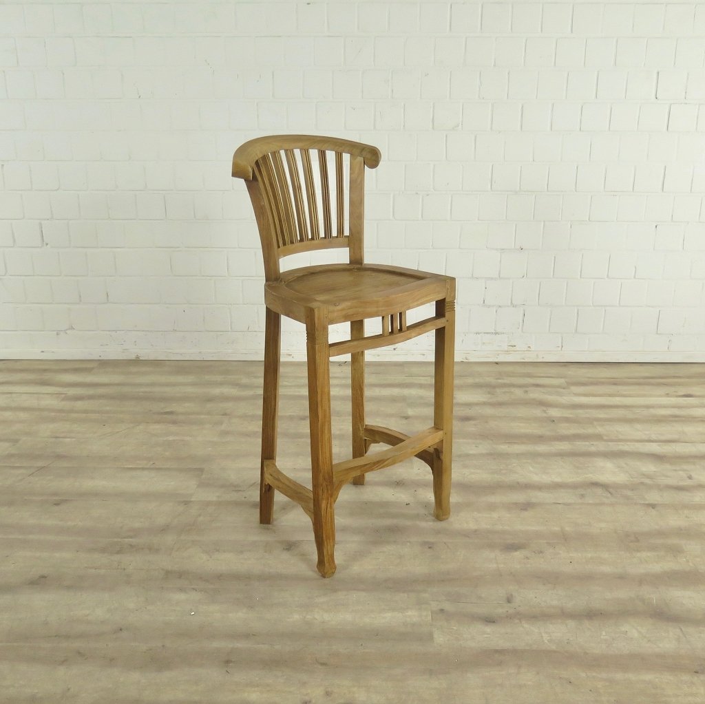Barstool with backrest. Made of solid teak (hardwood).