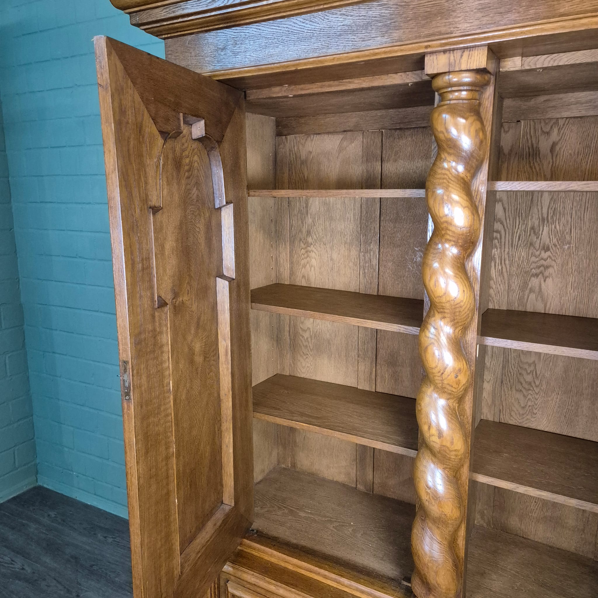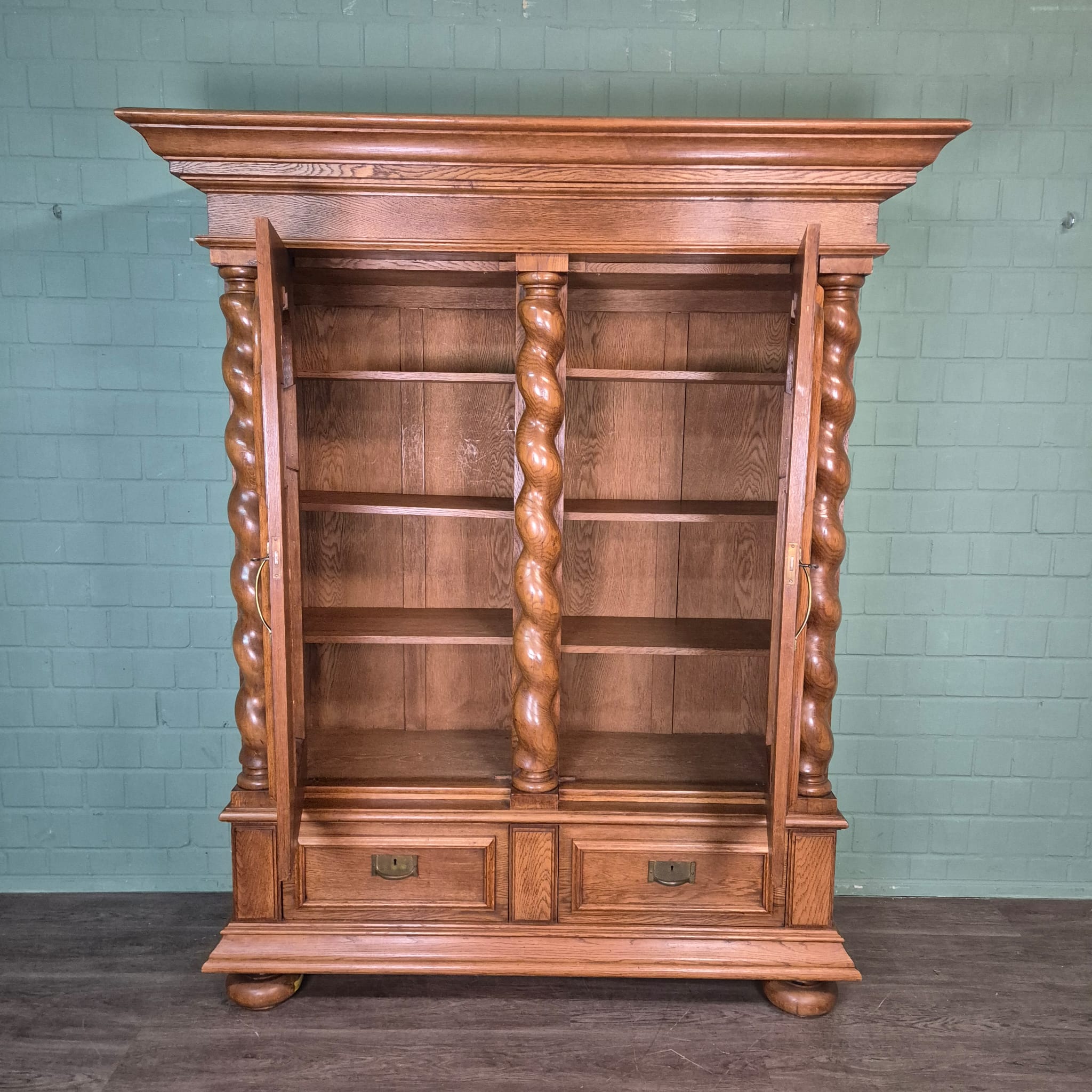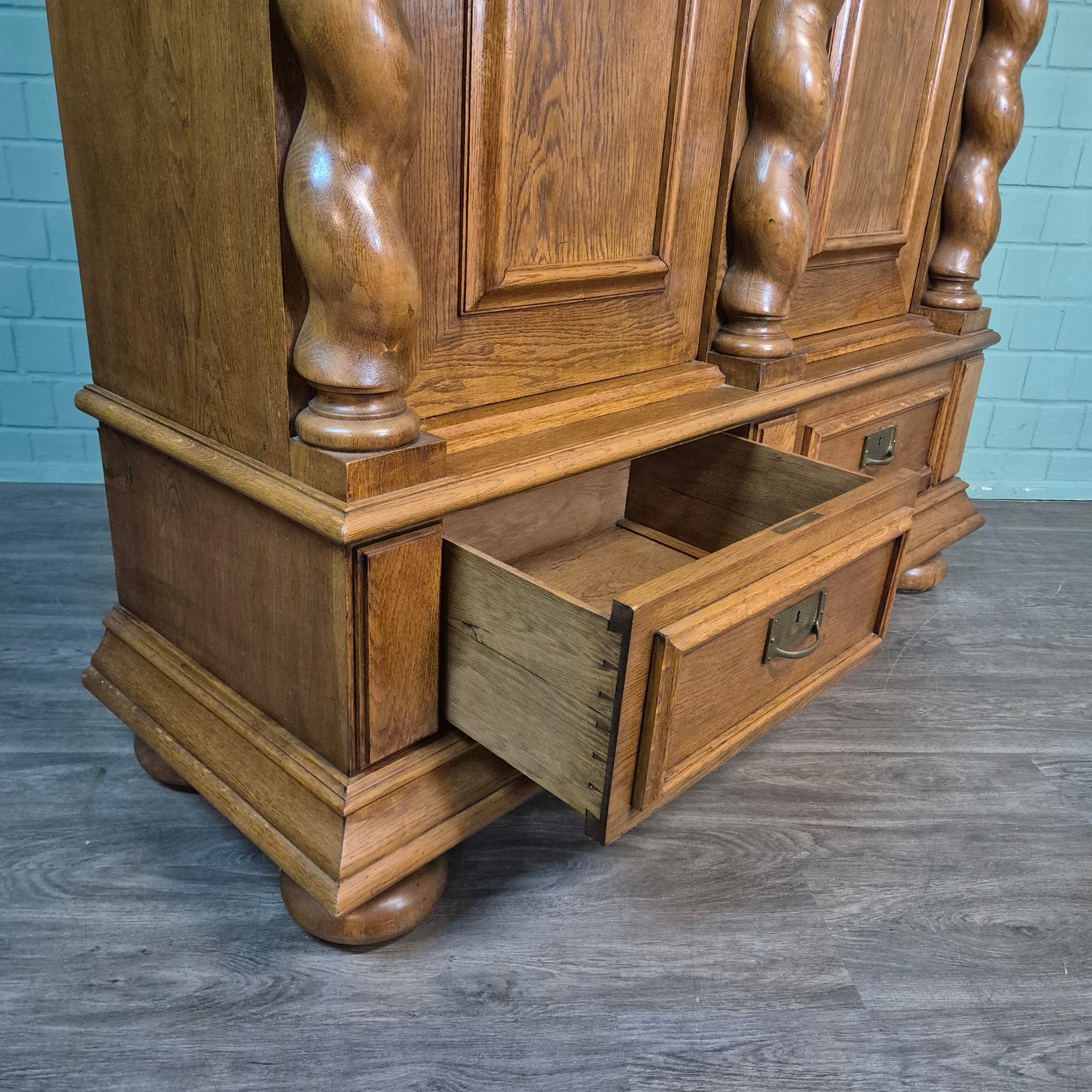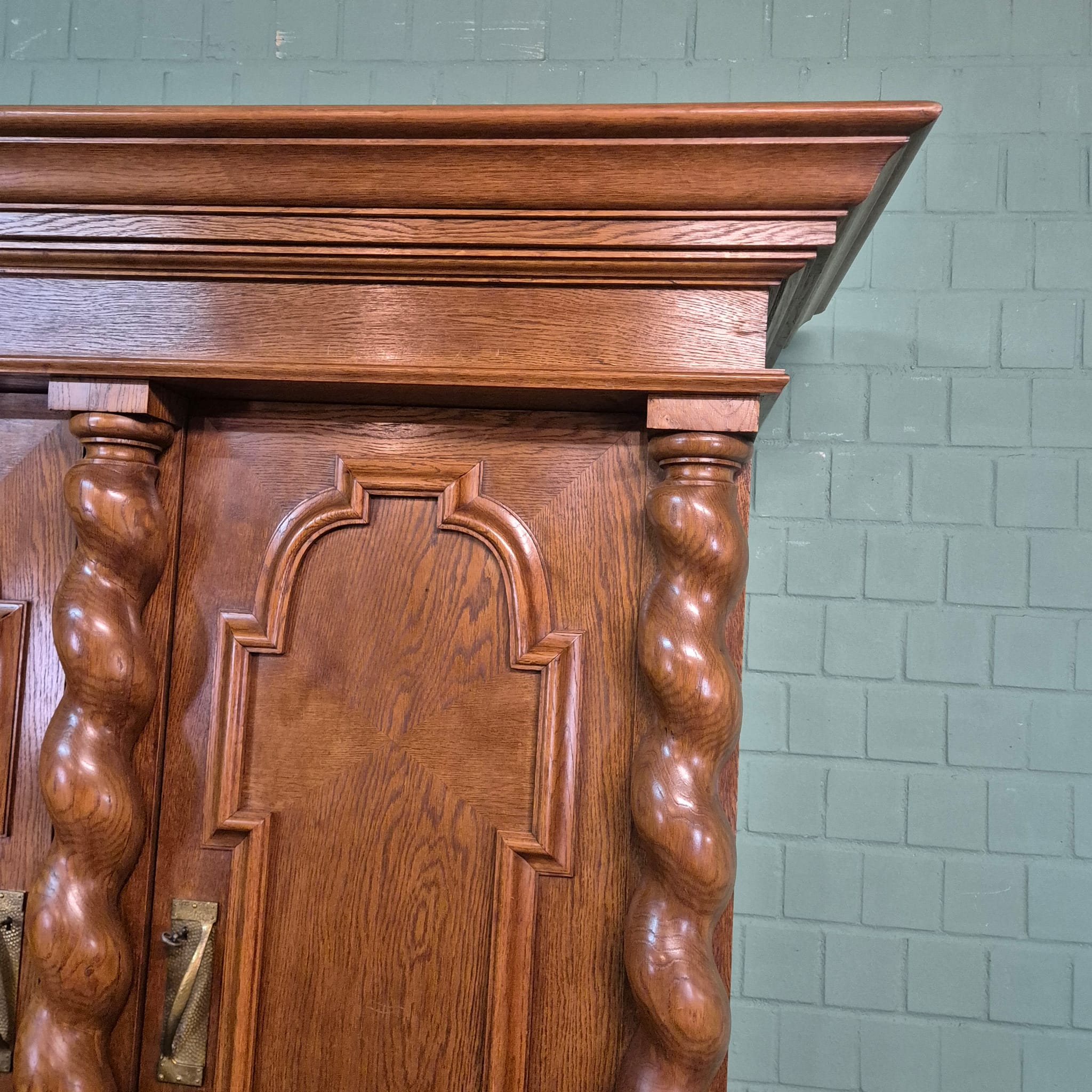 Original neo-baroque cabinet made of solid oak from around 1900. The cabinet is in good condition and shows normal signs of use. It can be dismantled (8-piece).