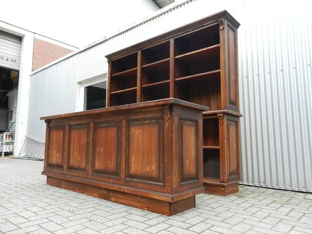 The combination of a cabinet and a sales counter model Yvonne Marrón made of solid wood impresses with its stylish elegance and elaborate workmanship. The combination of nostalgic look and modern functionality is suitable for all shop fittings and many other applications. The furniture is supplied fully assembled and are immediately ready for use.