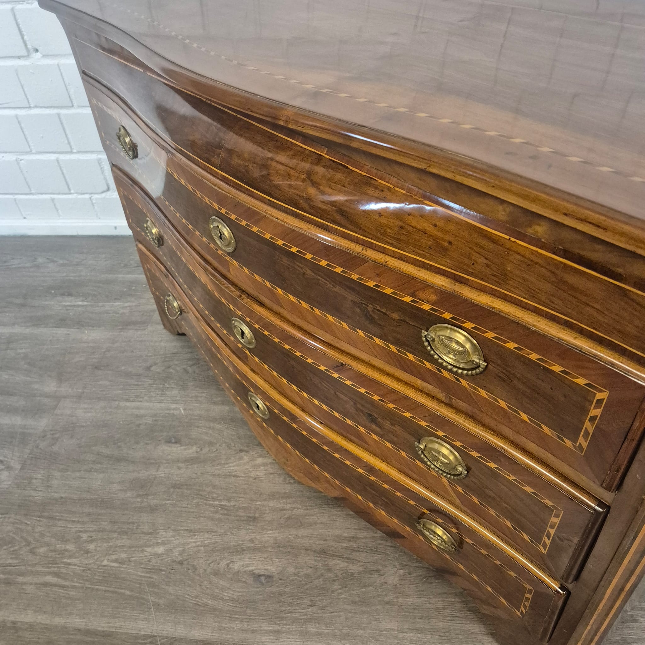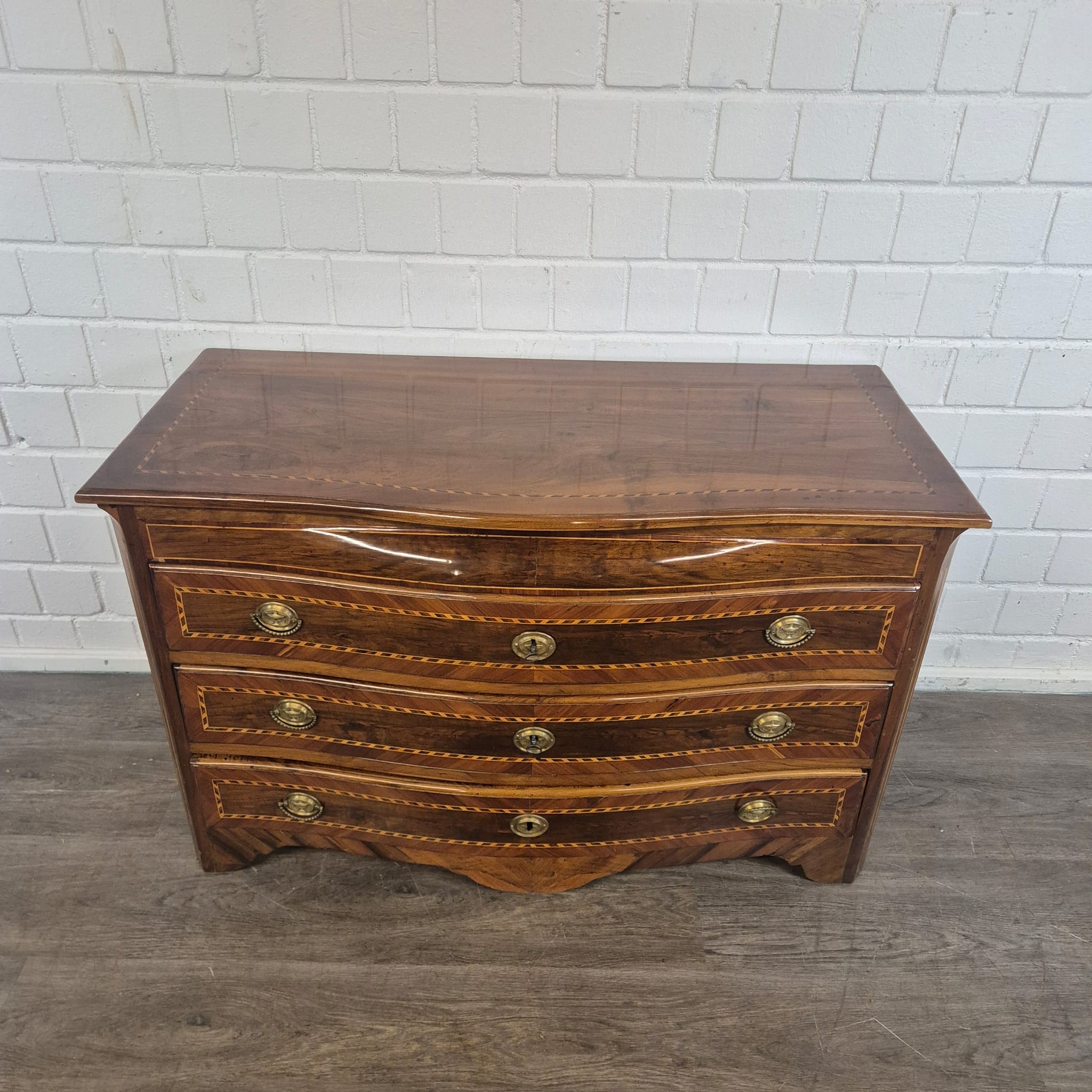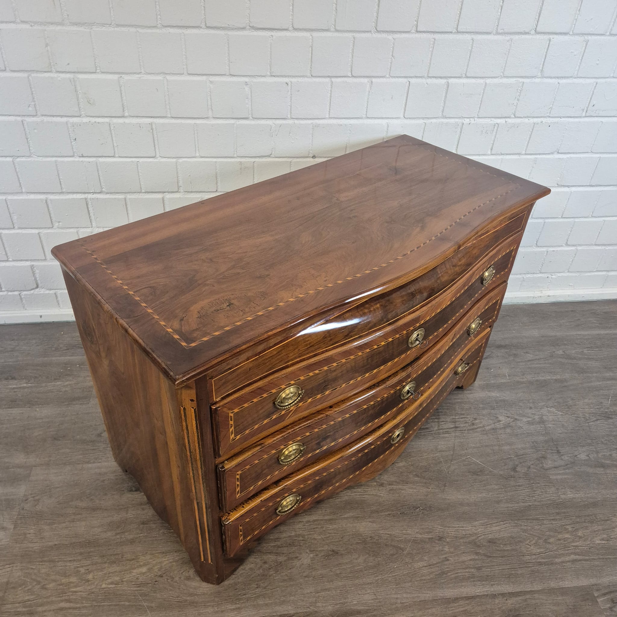 Restored Baroque commode, walnut veneered and shellac polished, from ca. 1790. The Louis XVI commode is in very good condition and shows minimal signs of use.