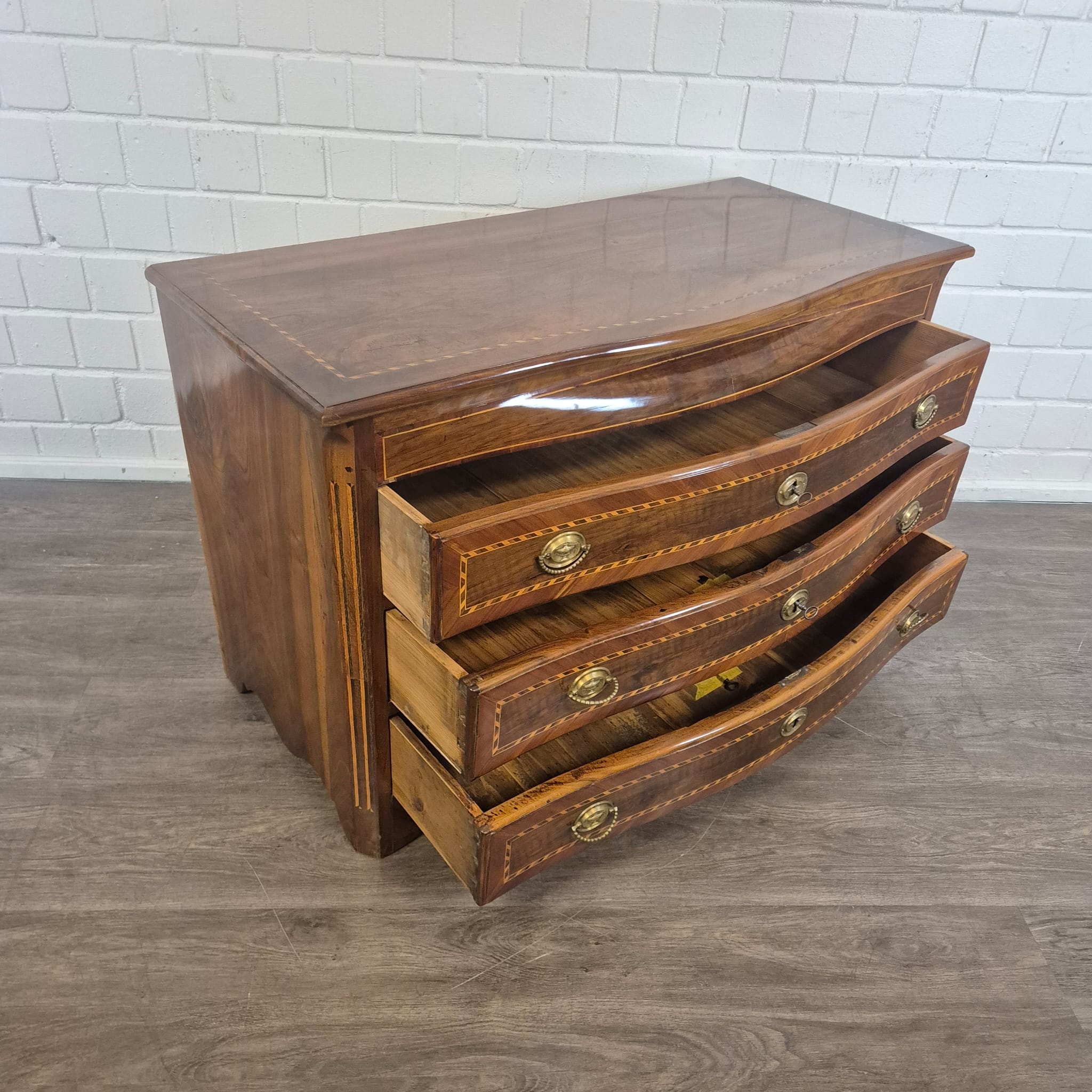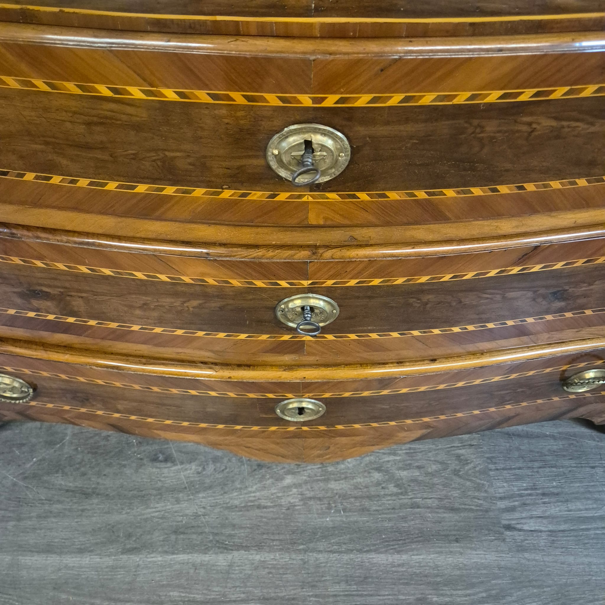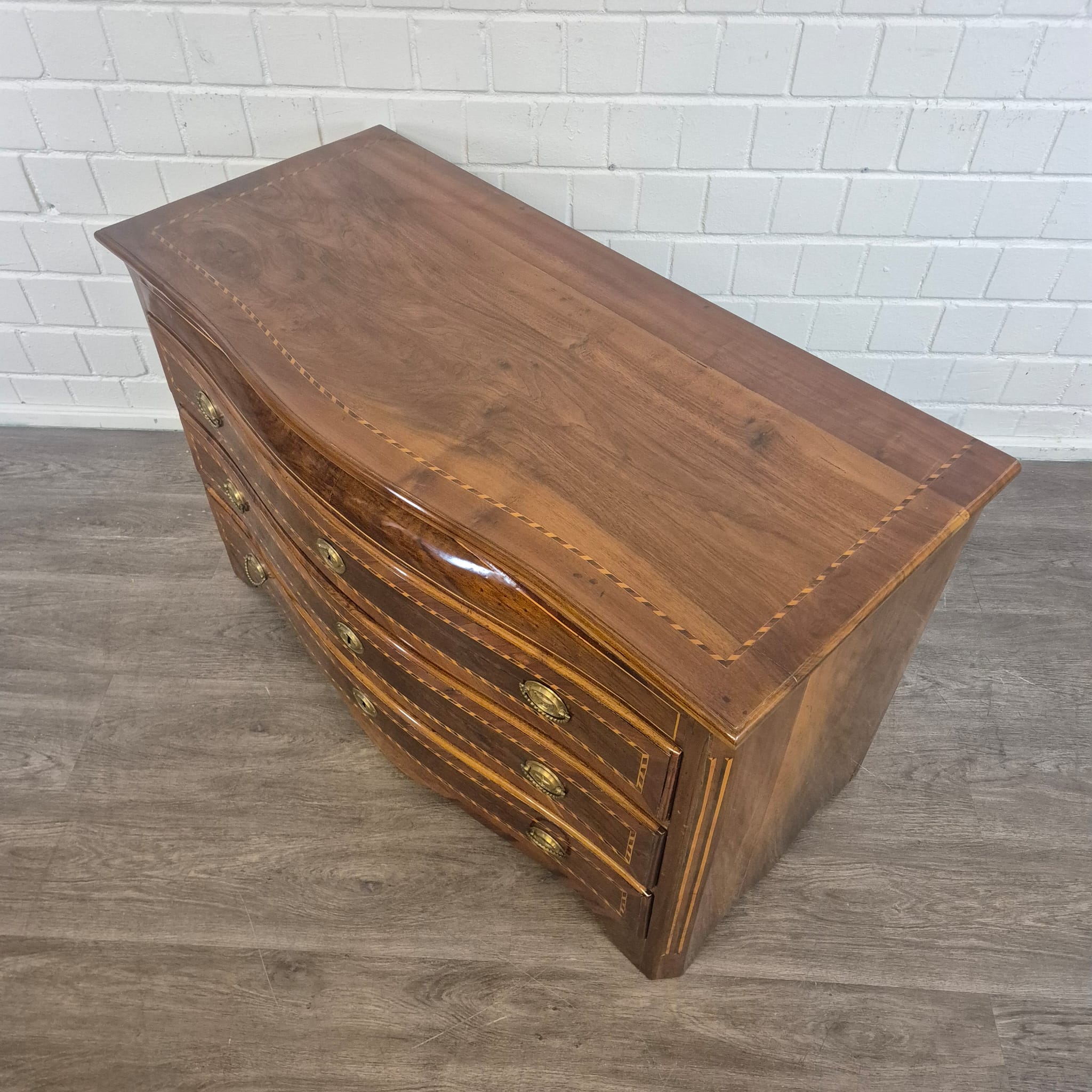 Restored Baroque commode, walnut veneered and shellac polished, from ca. 1790. The Louis XVI commode is in very good condition and shows minimal signs of use.