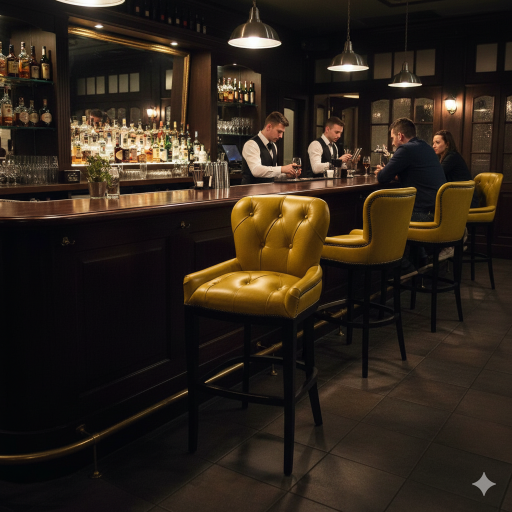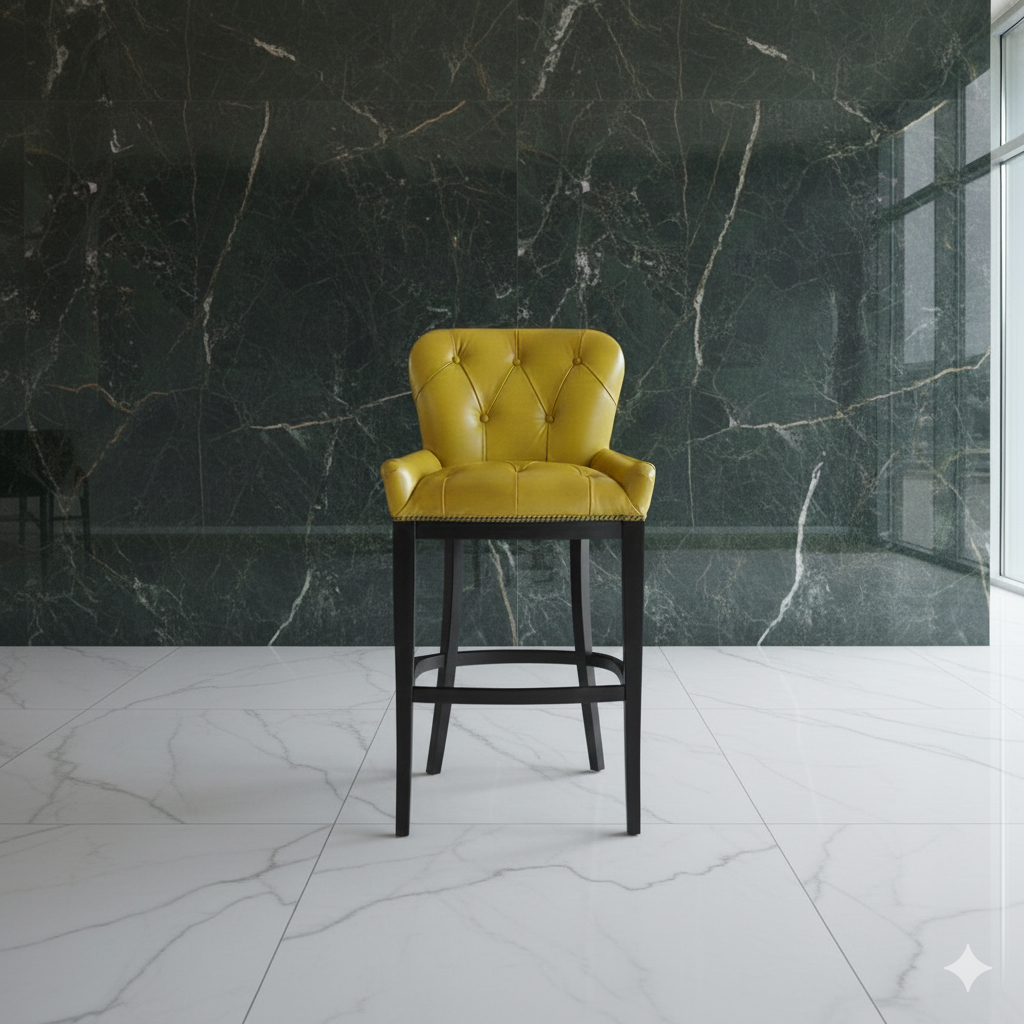 Chesterfield Barstool Leather Yellow