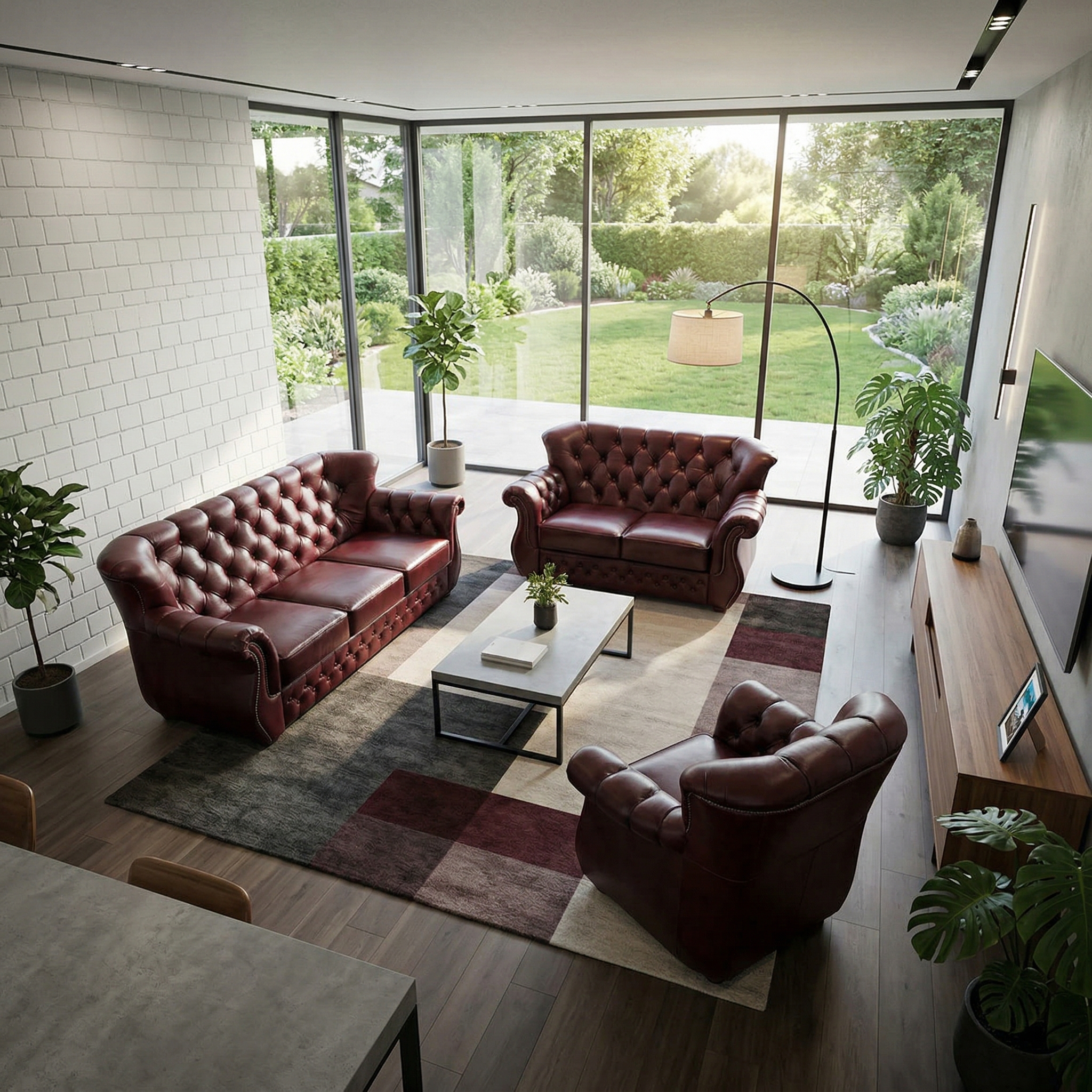 Chesterfield sofa set burgundy 3-2-1 leather