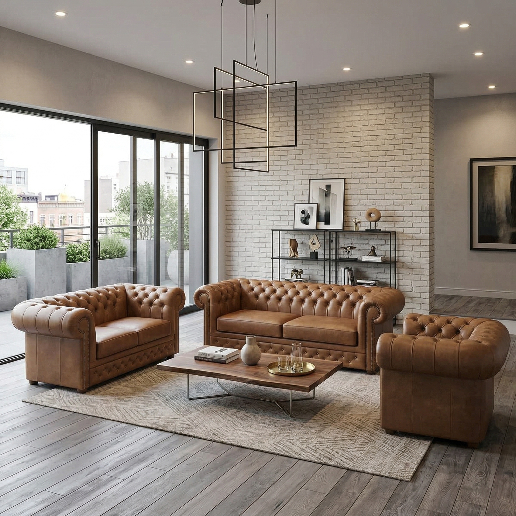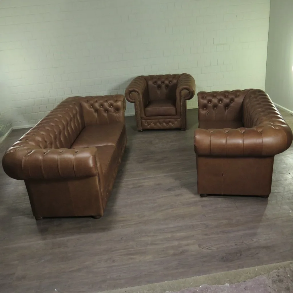 Chesterfield Sofa Set Cognac 3-2-1 Leather