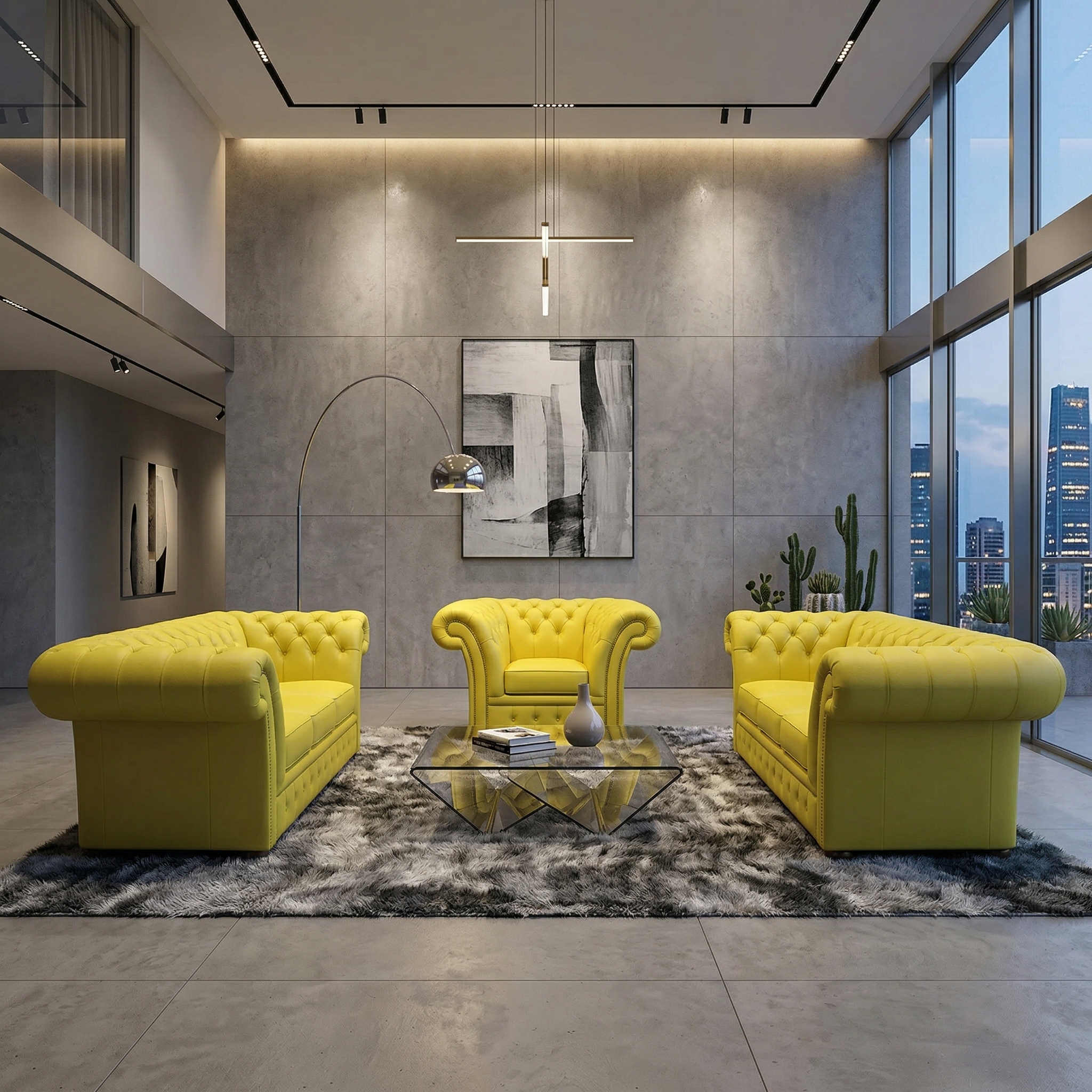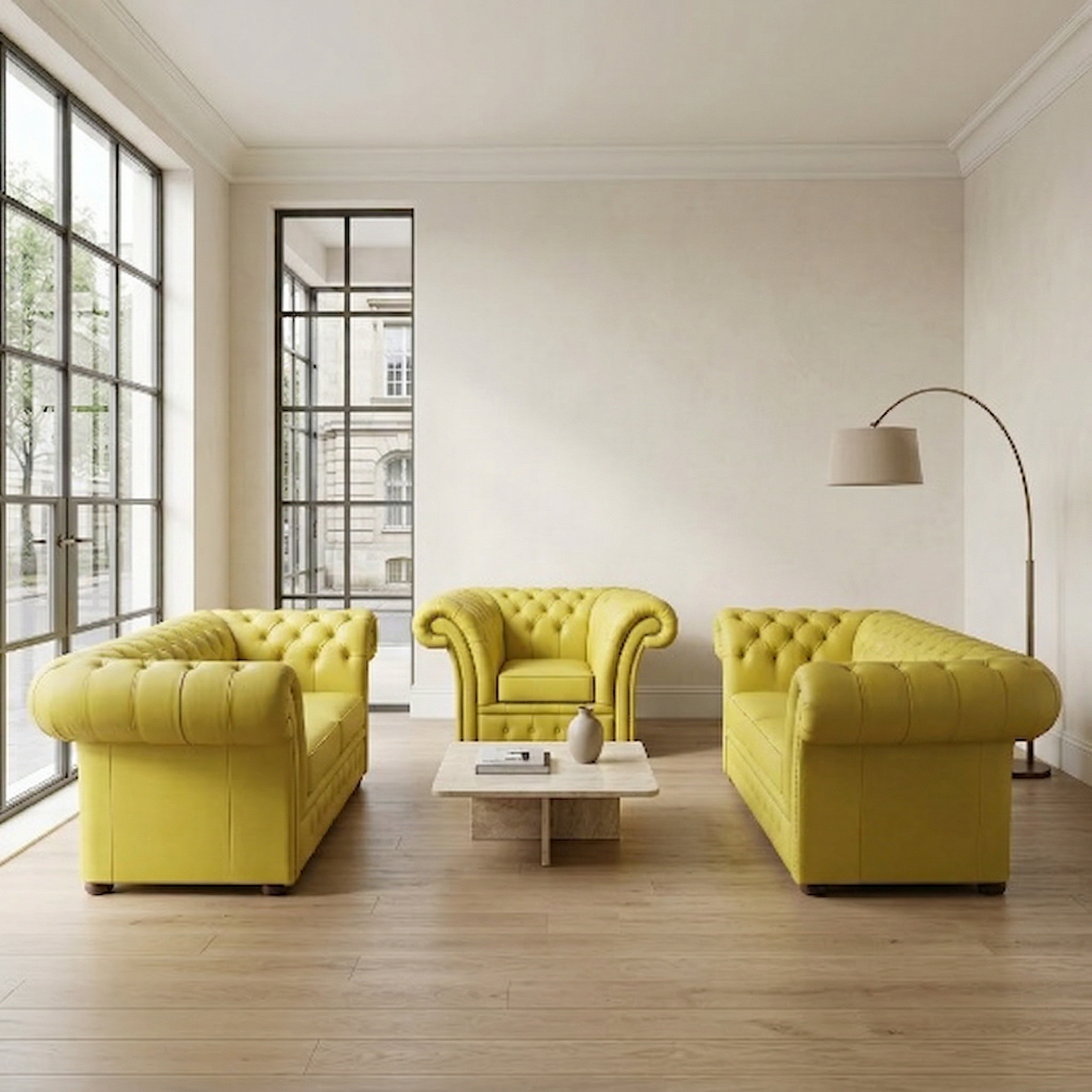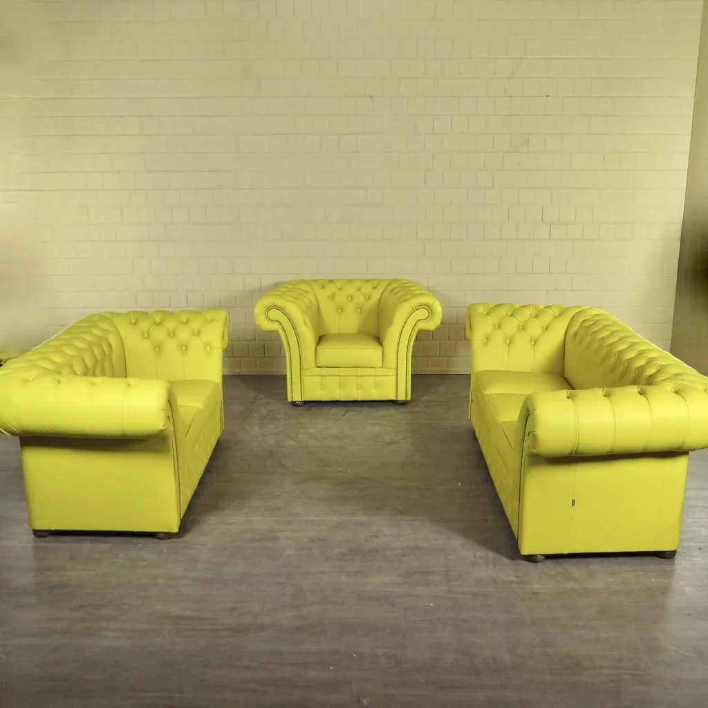 Chesterfield Sofa Set Yellow 3-2-1 Leather
