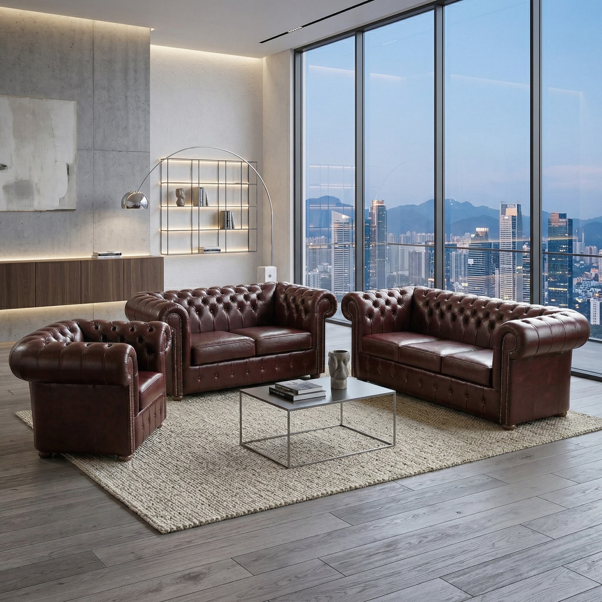 Chesterfield Sofa Red-Brown 3-2-1 Leather