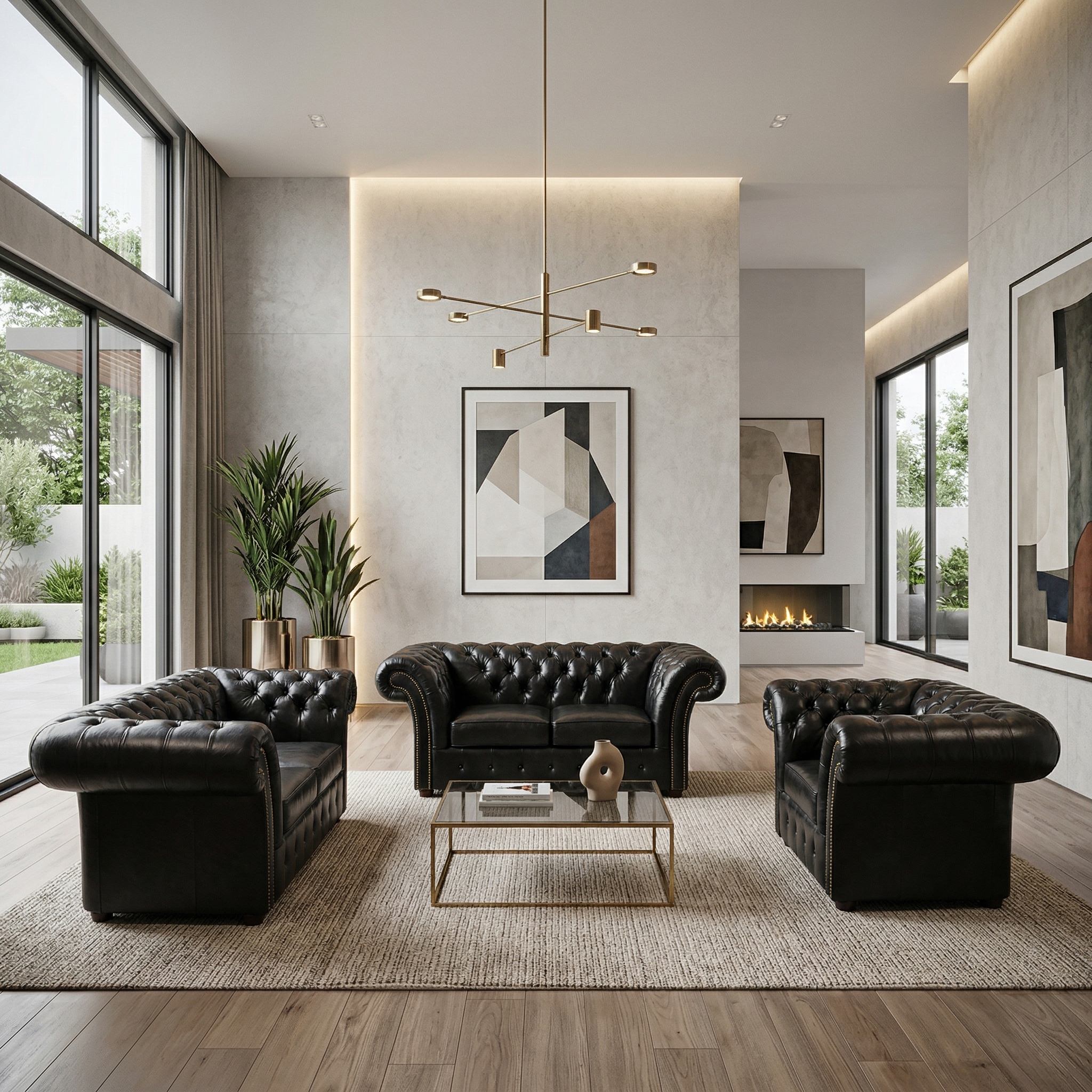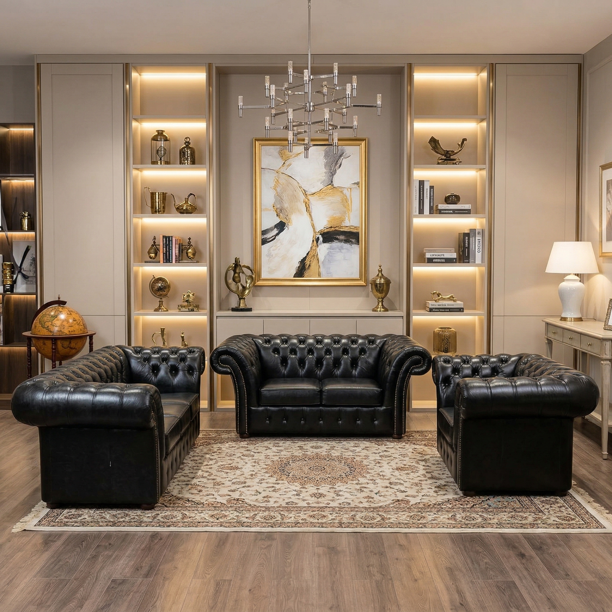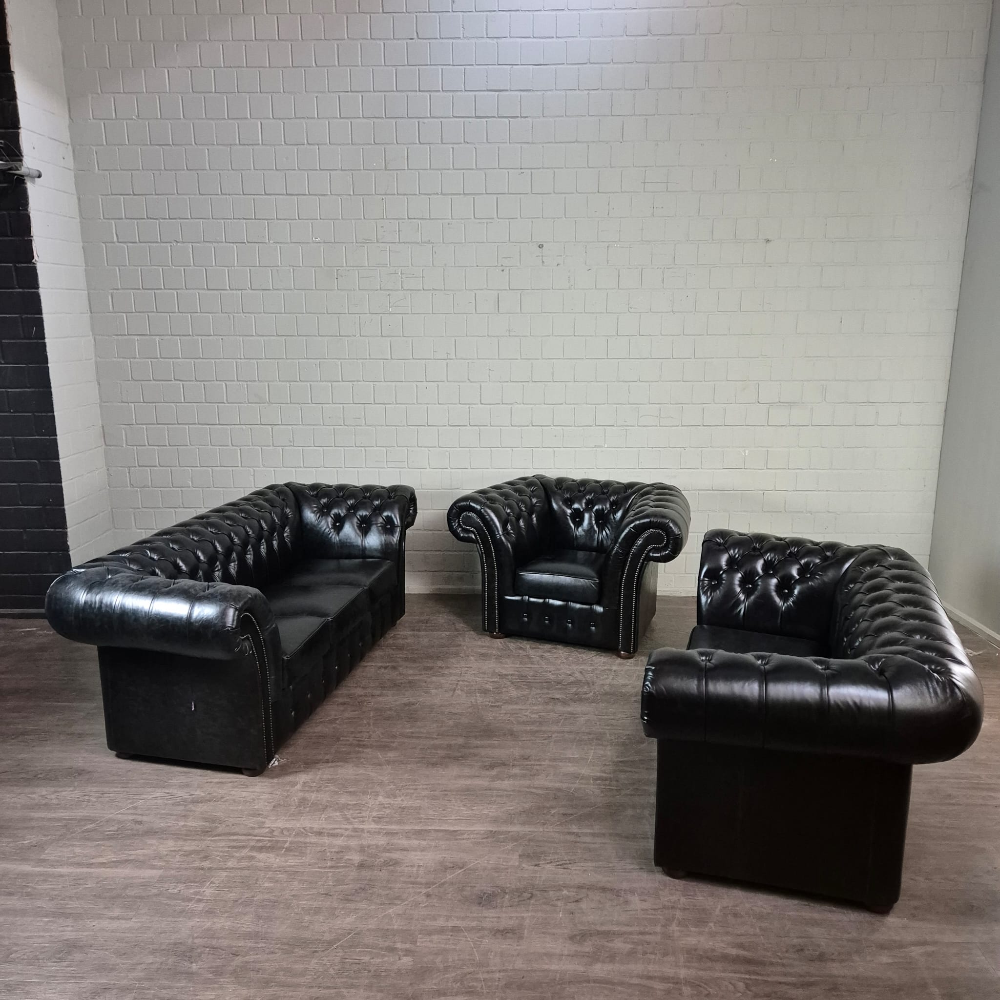 Chesterfield Sofa Black 3-2-1 Leather
