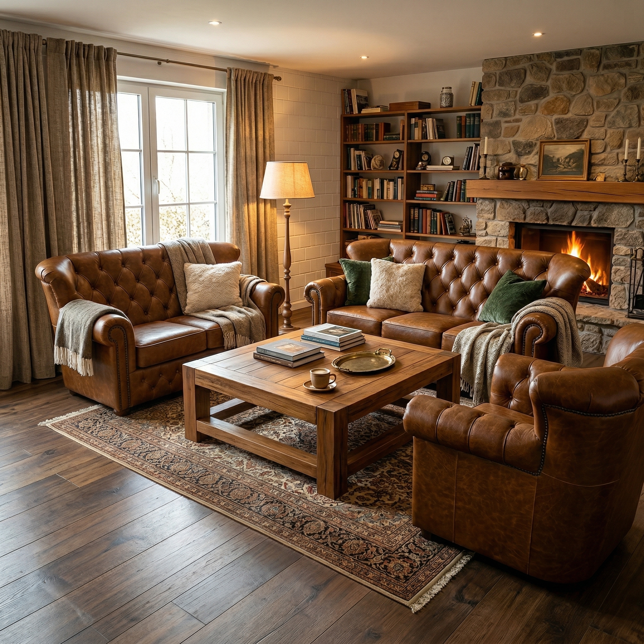 Chesterfield Sofa Camel 3-2-1 Leather