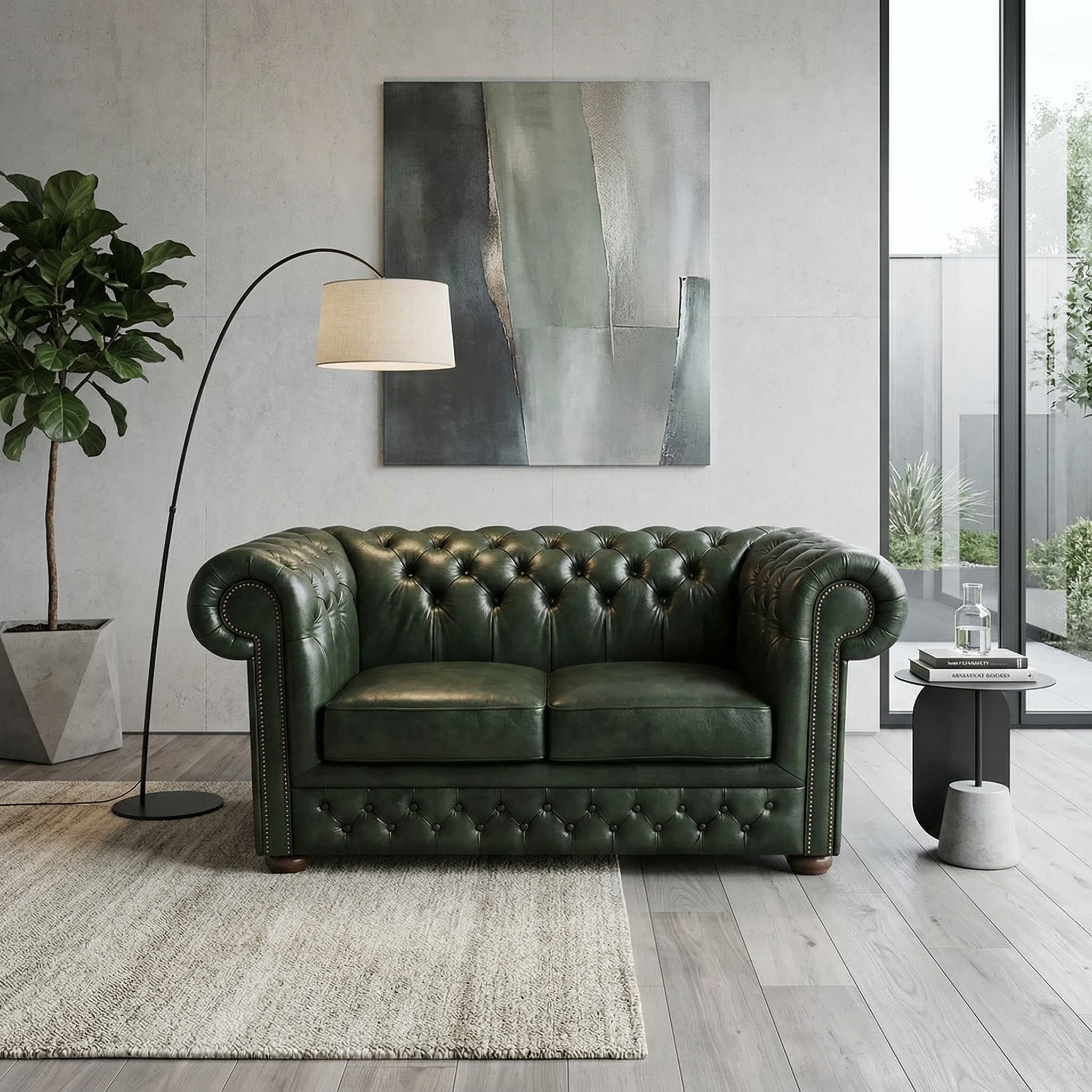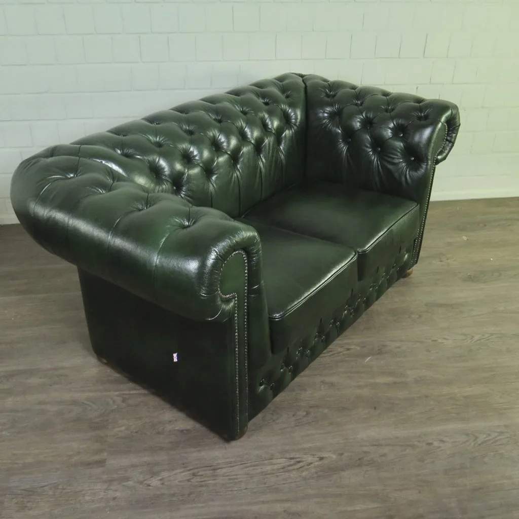 Chesterfield Sofa Leather Dark Green 1,67 m