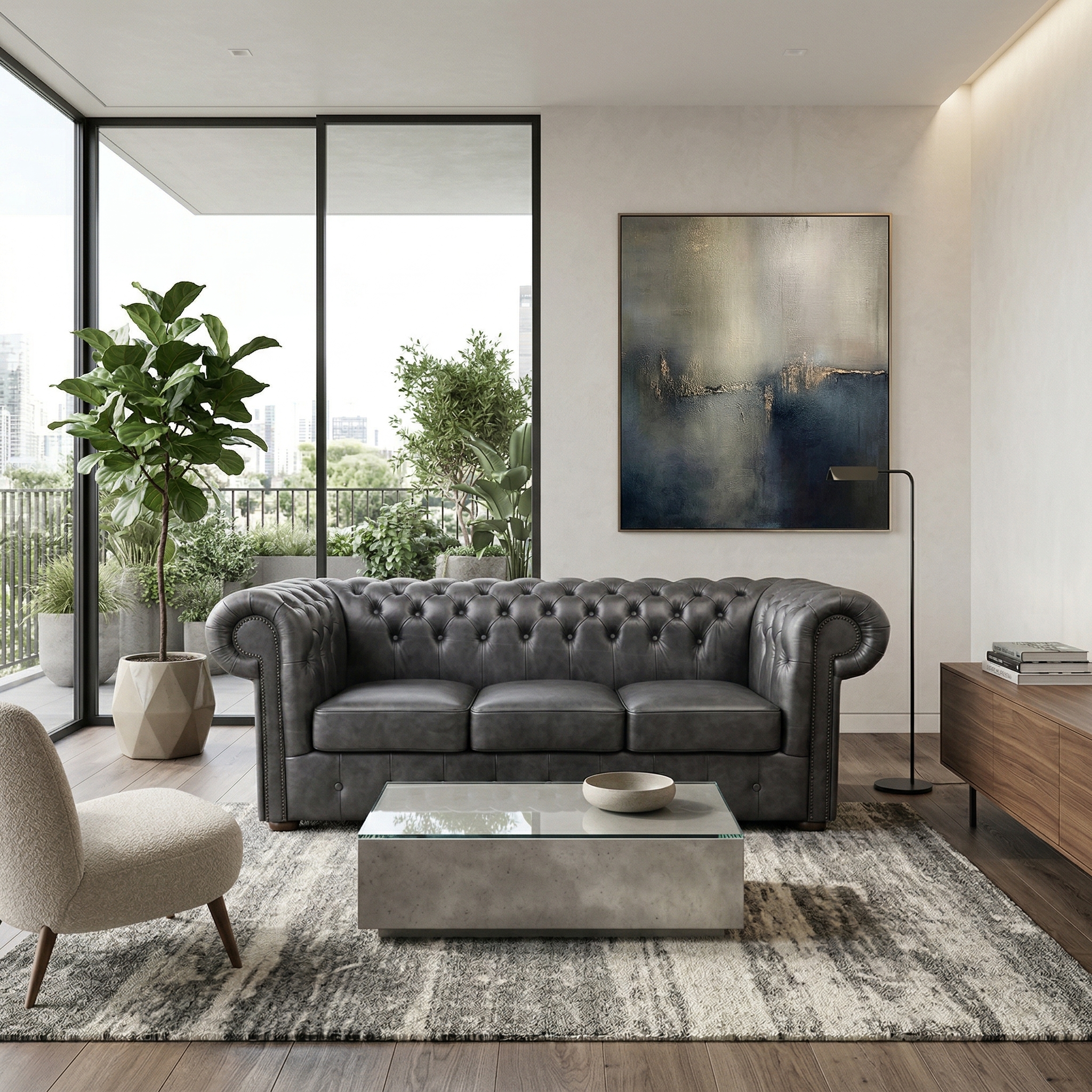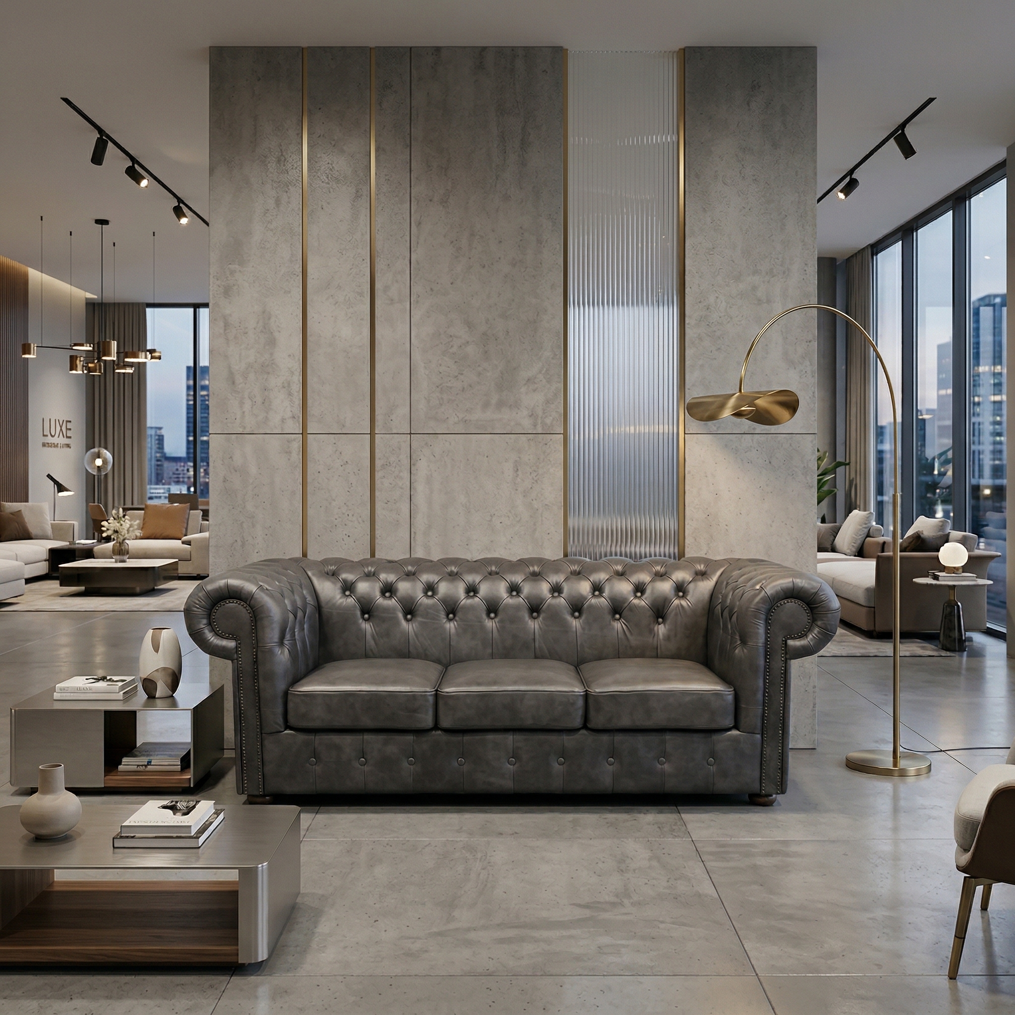 Chesterfield Sofa Leather Anthracite 2,00 m