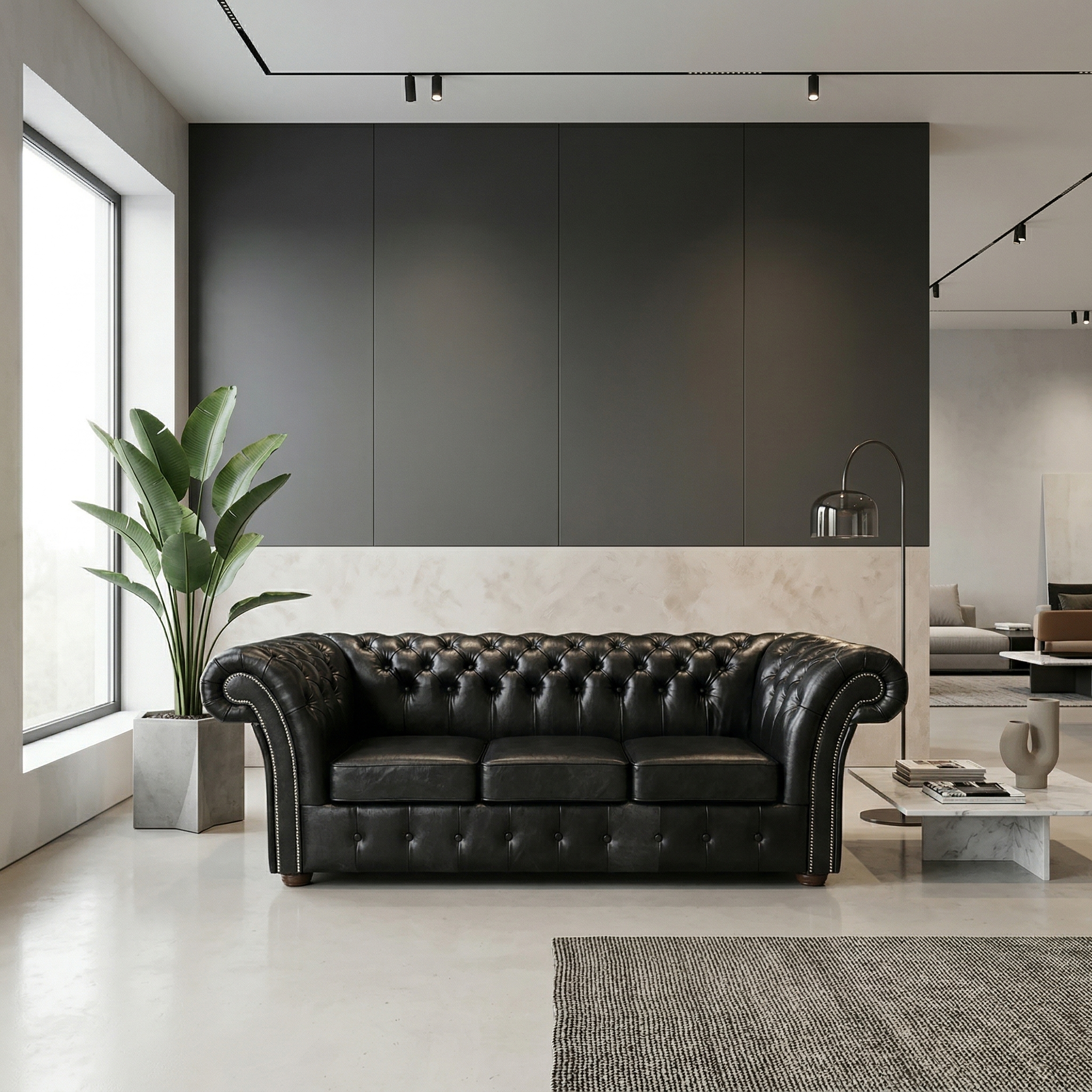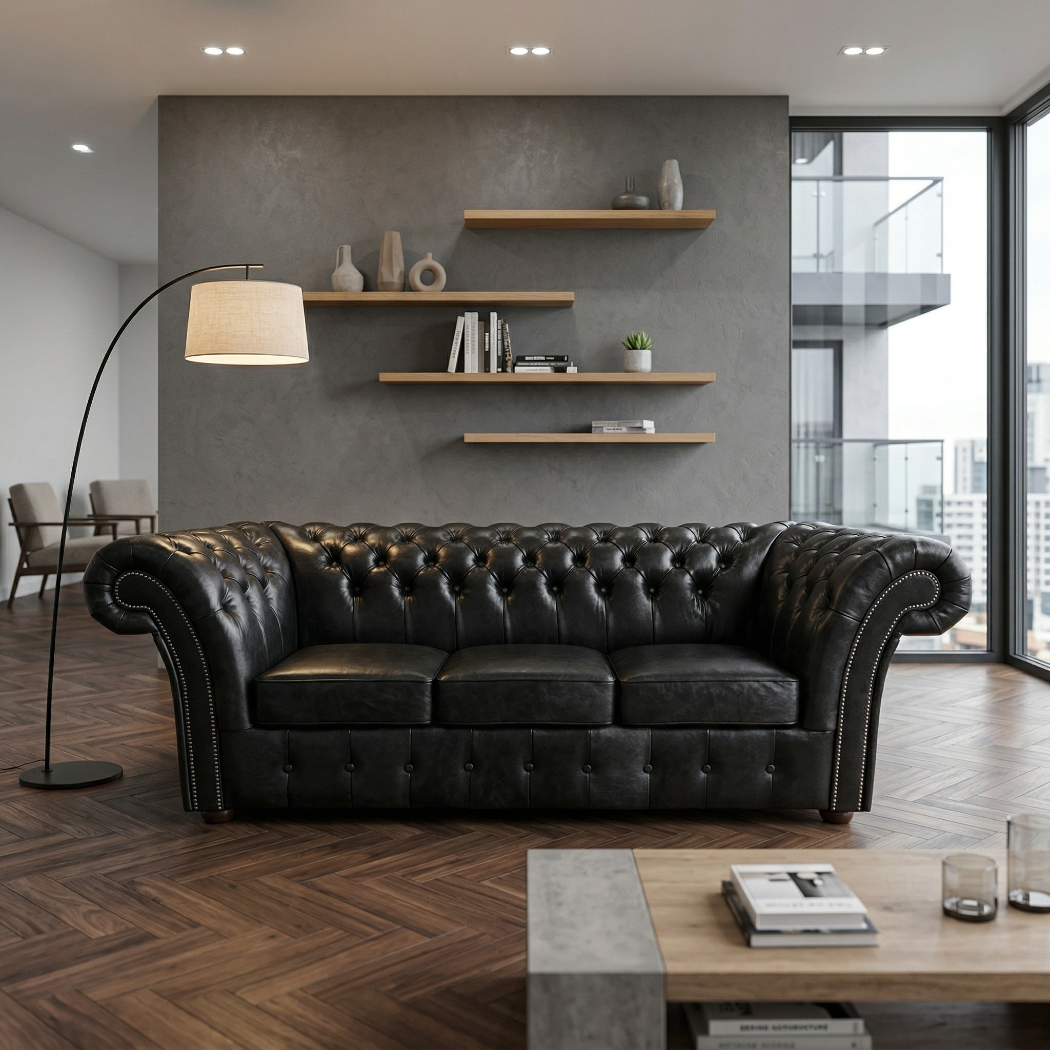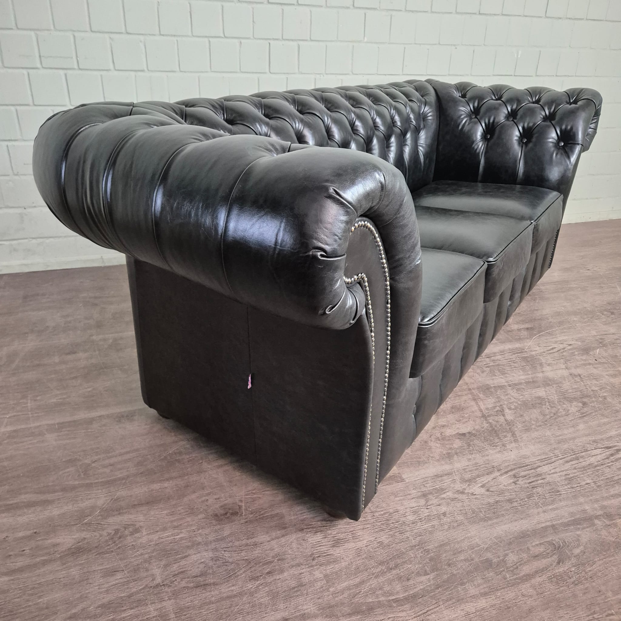 Chesterfield Sofa Leather Black 2,20 m