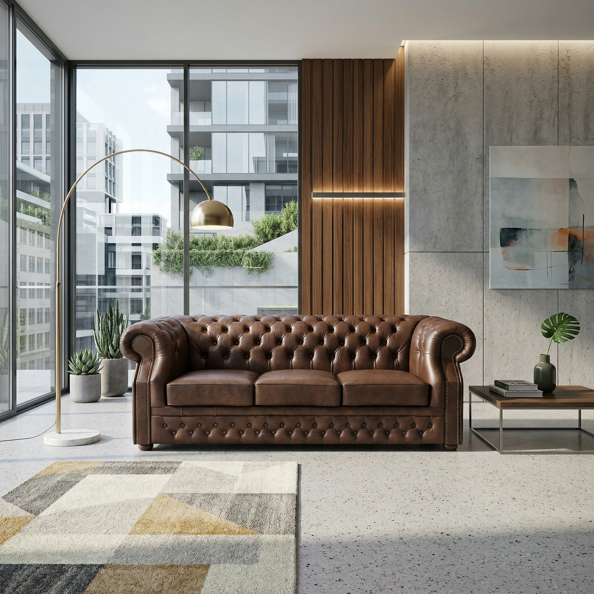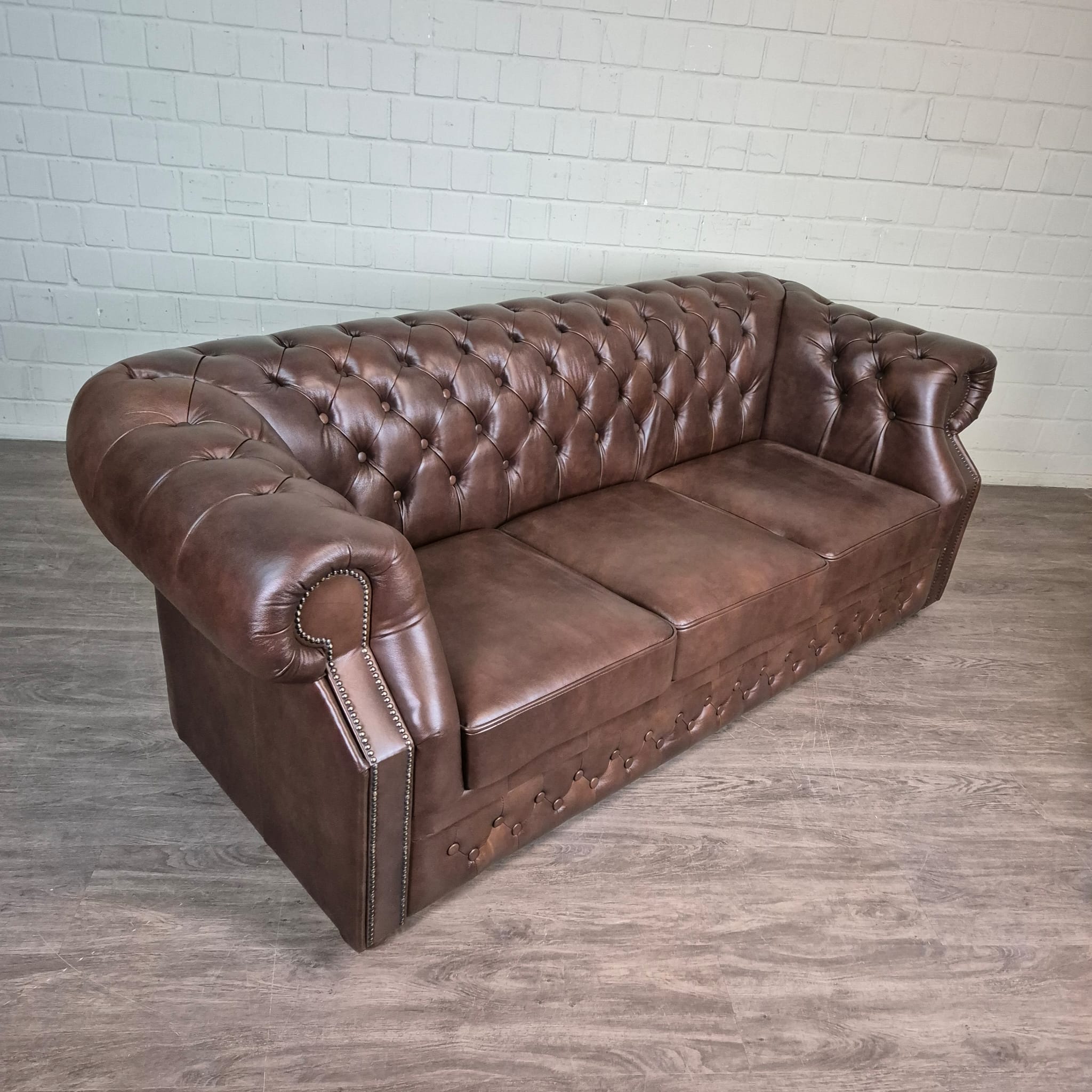 Chesterfield Sofa Leather Brown 2.25 m