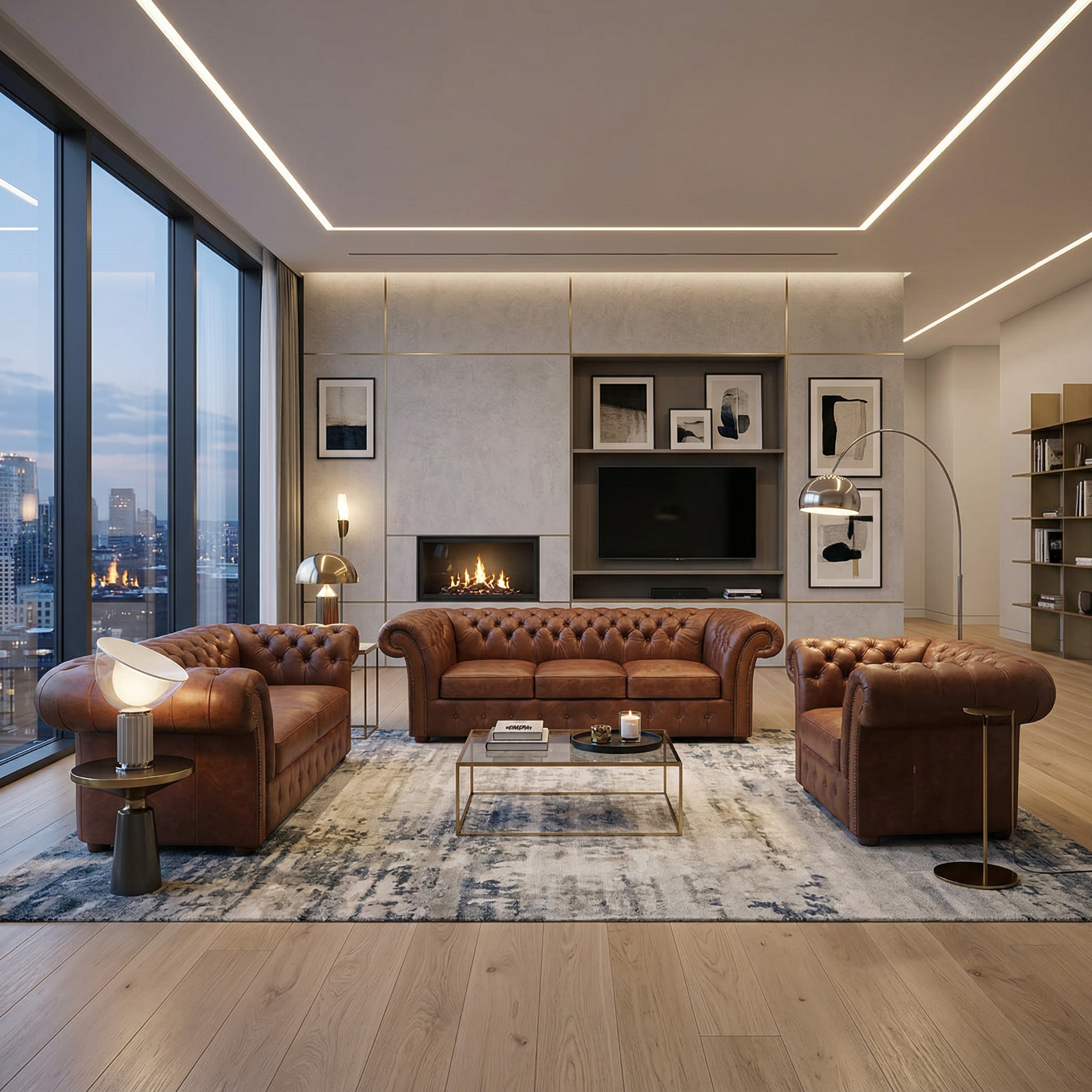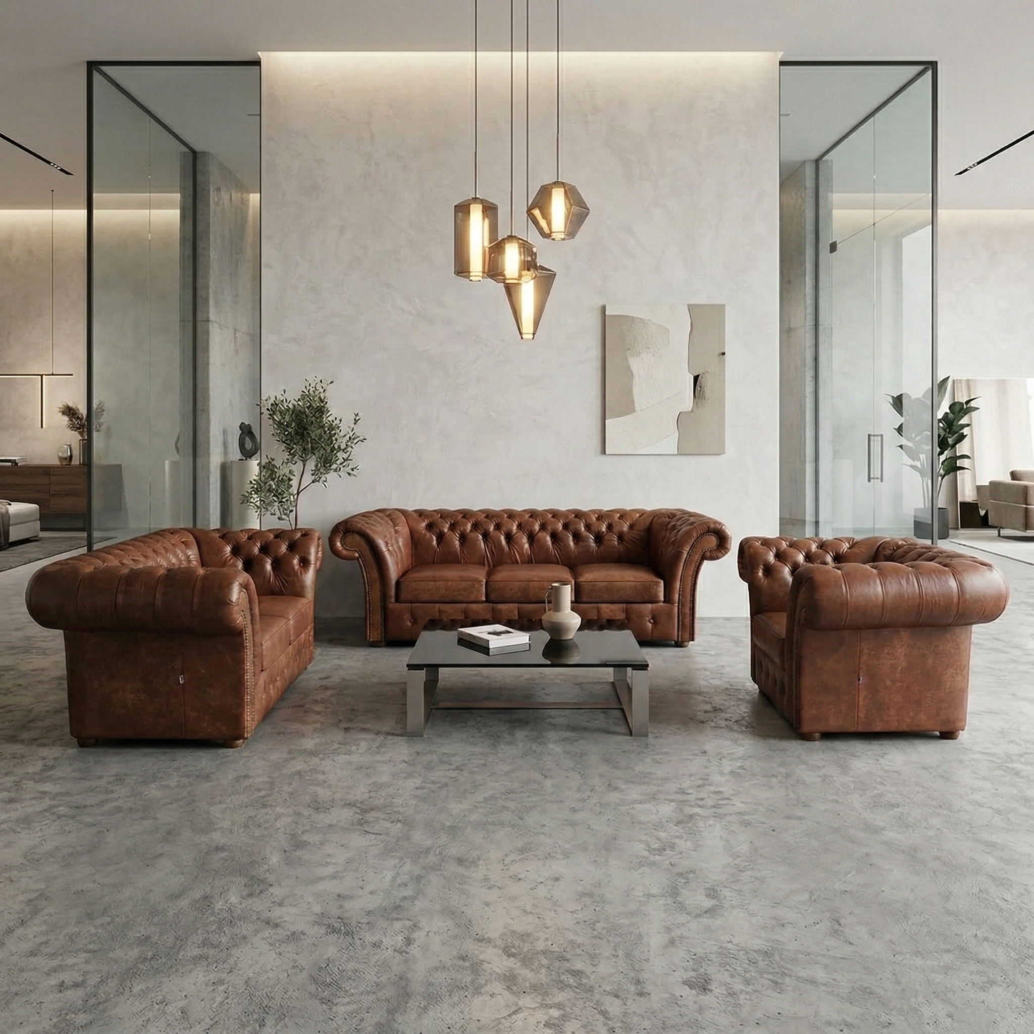 Chesterfield Sofa Leather Brown 3-2-1