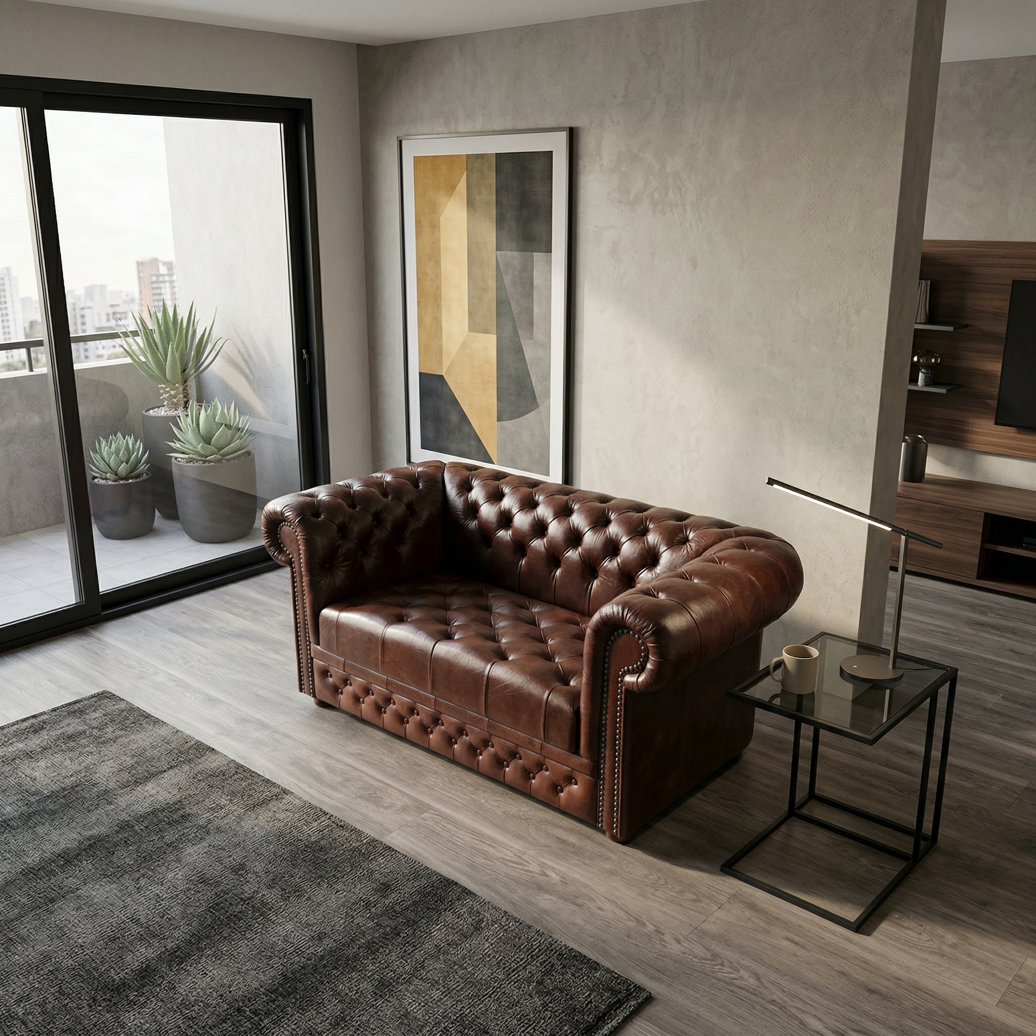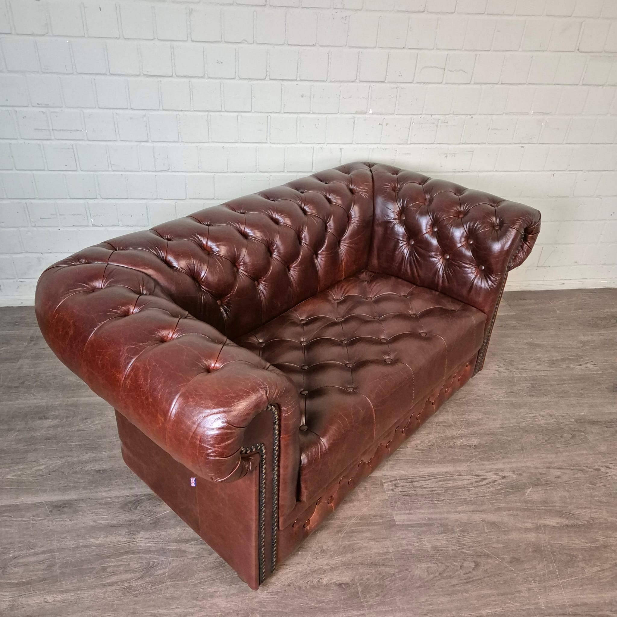 Chesterfield Sofa Leather Chestnut Brown 1.65 m