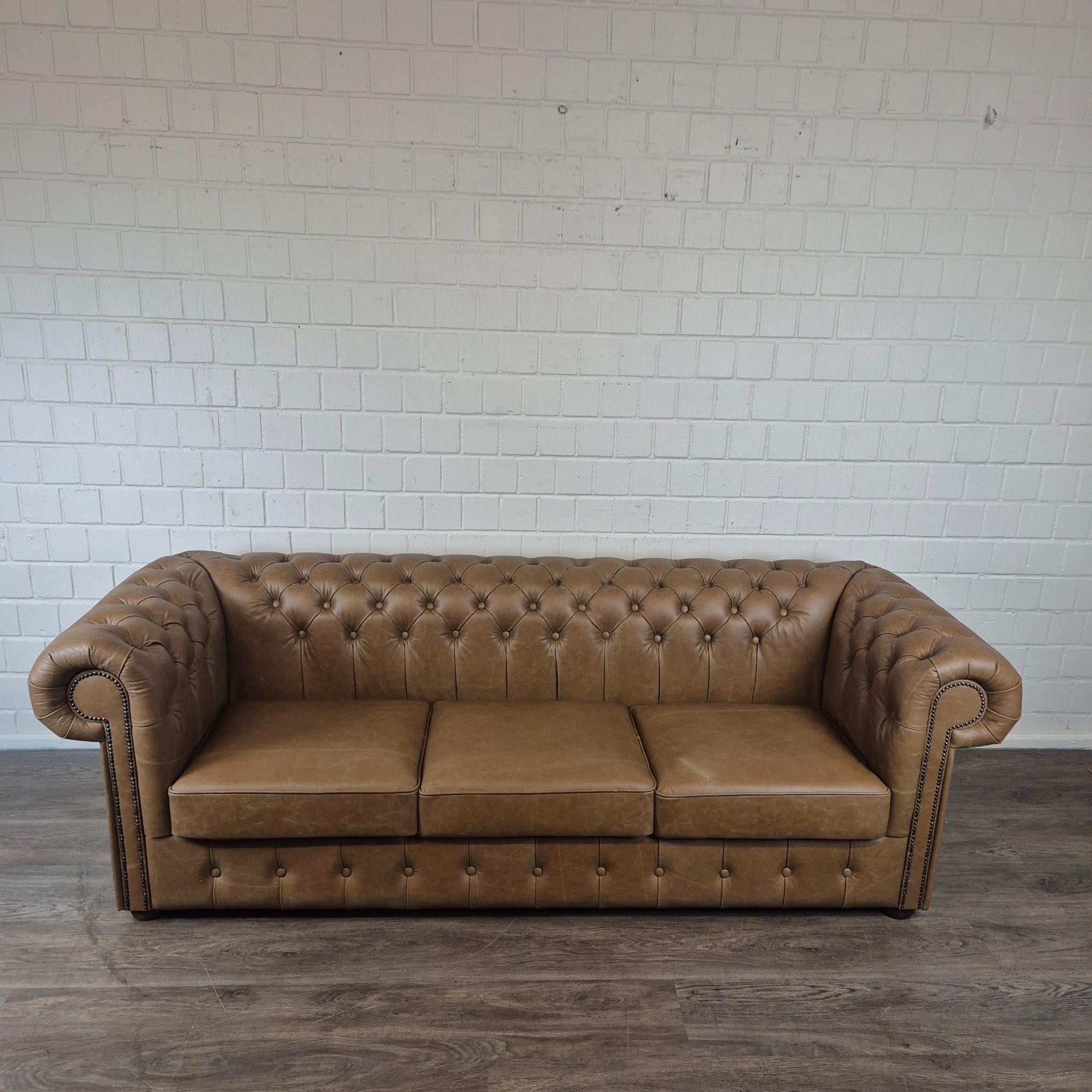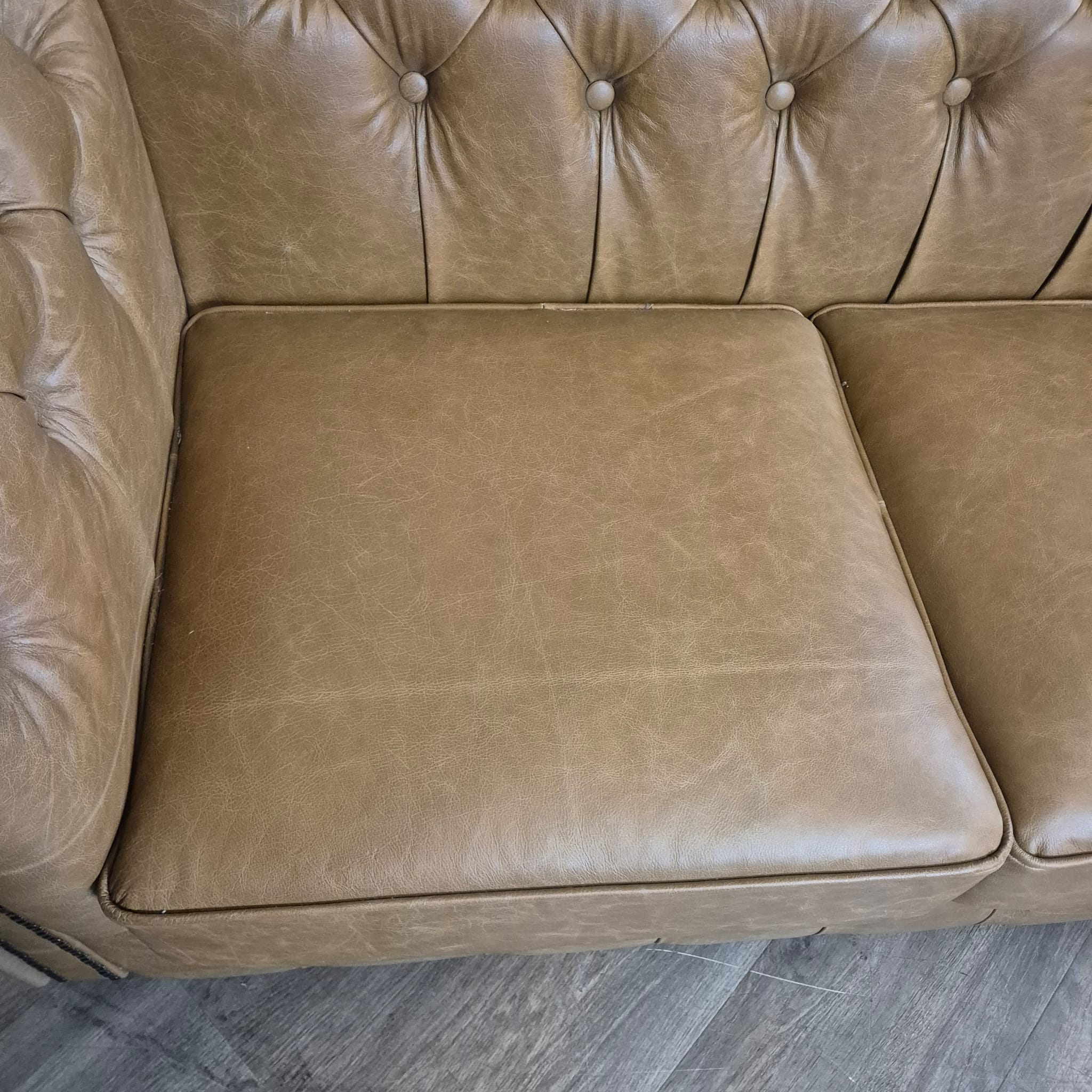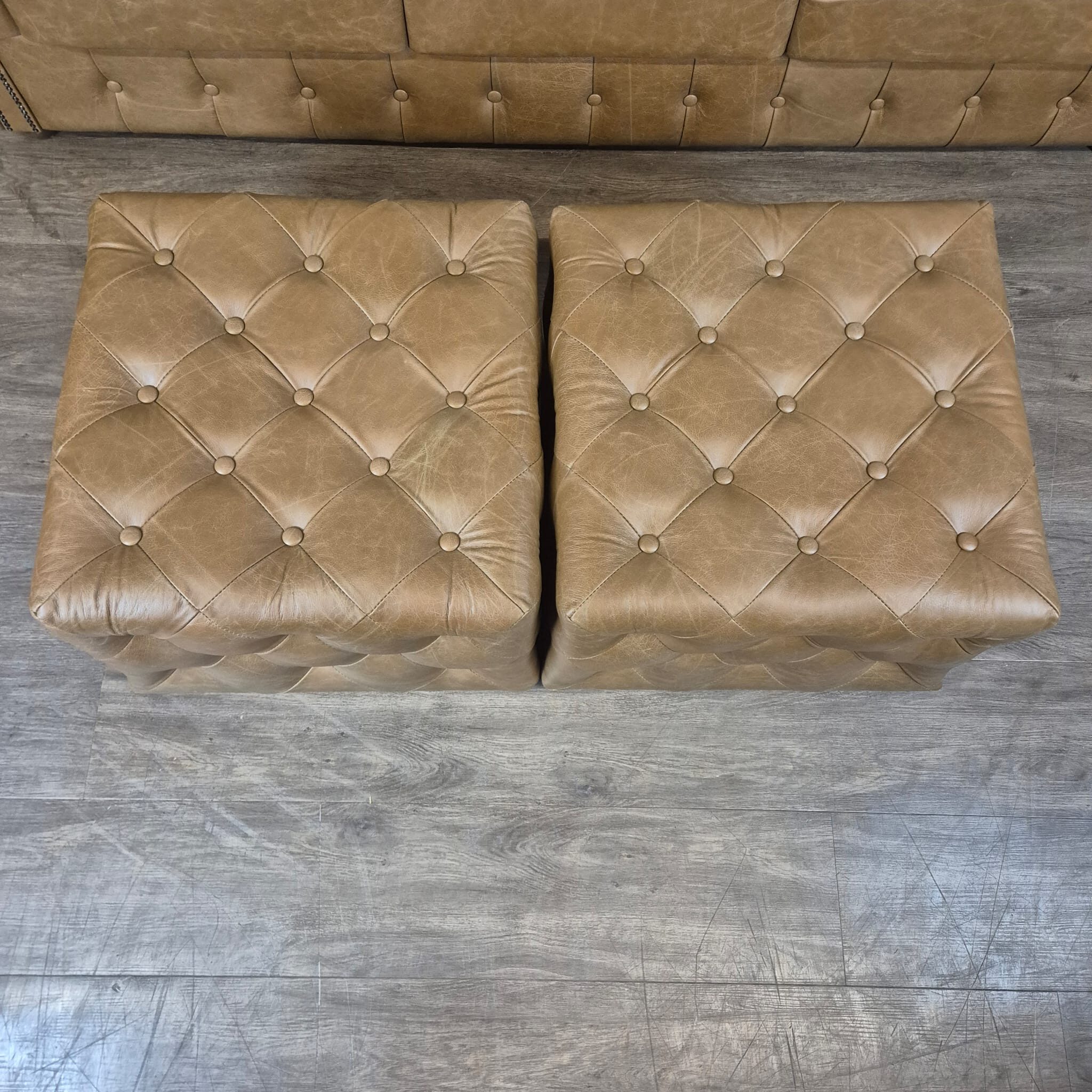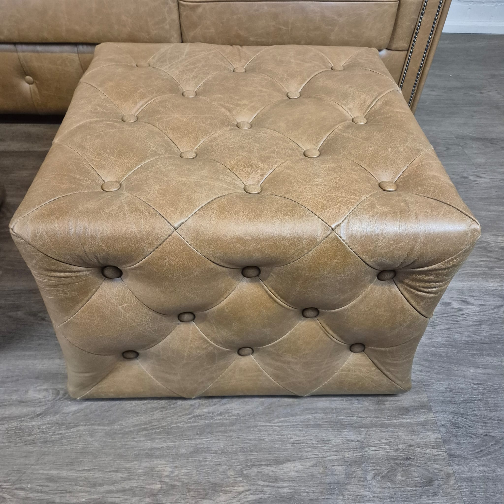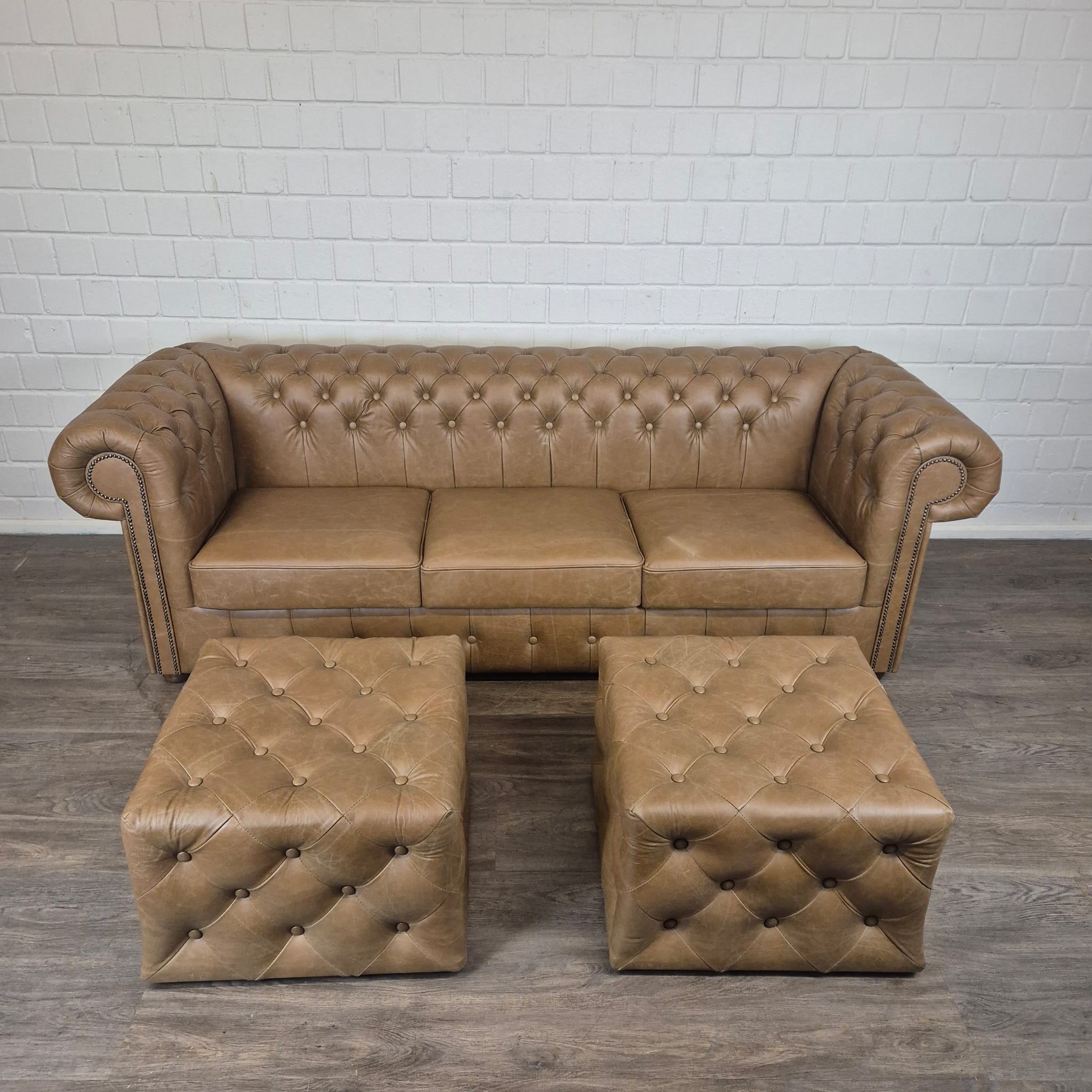 Chesterfield sofa + 2 genuine leather ottomans – Display model at a special price