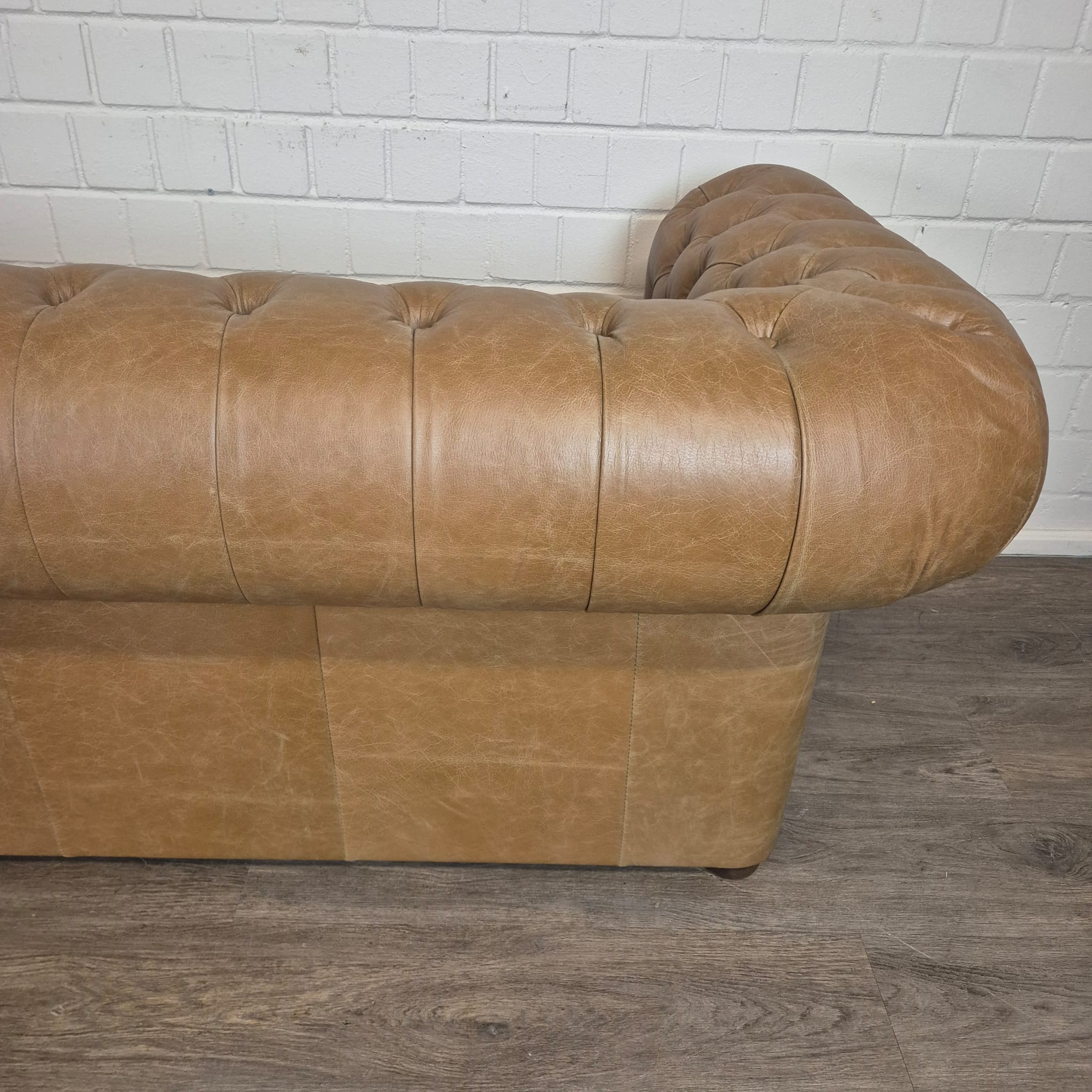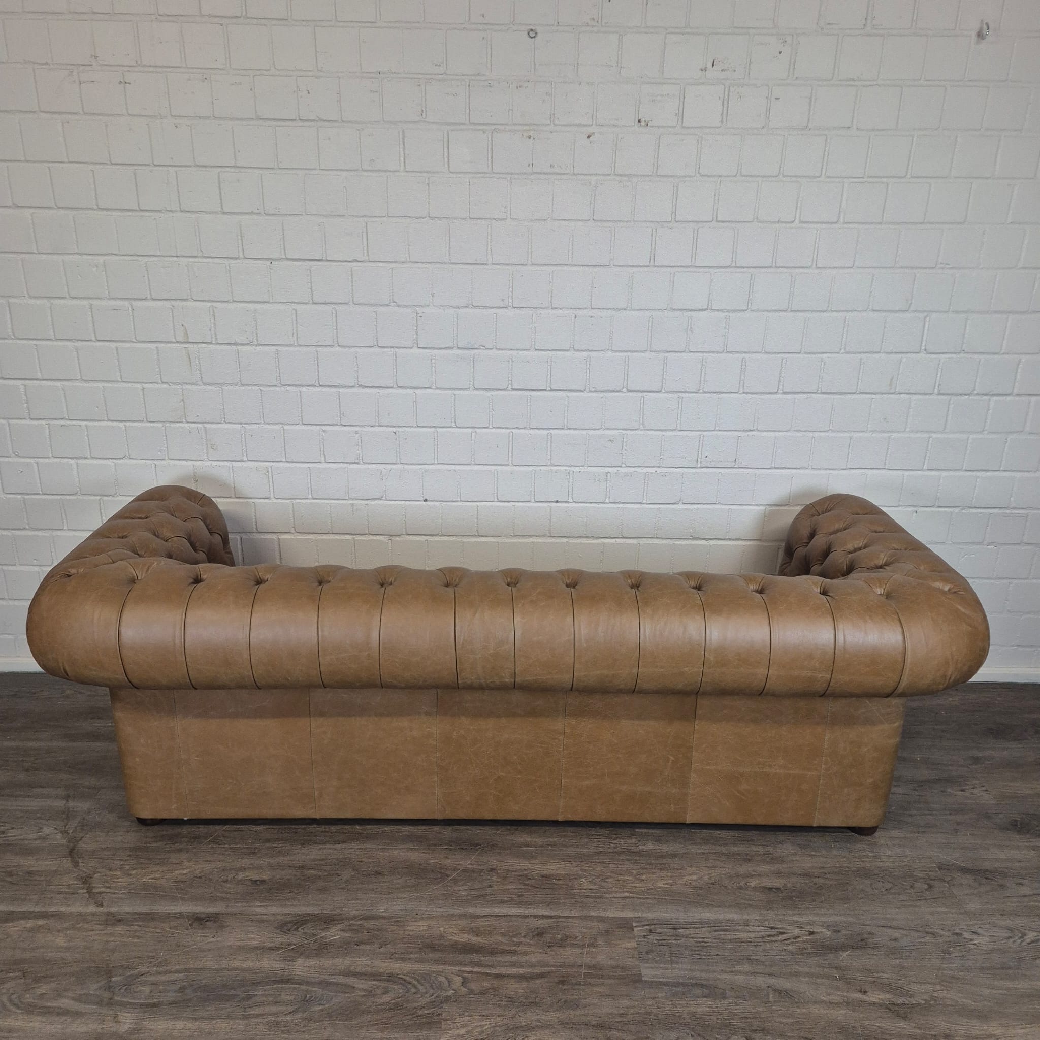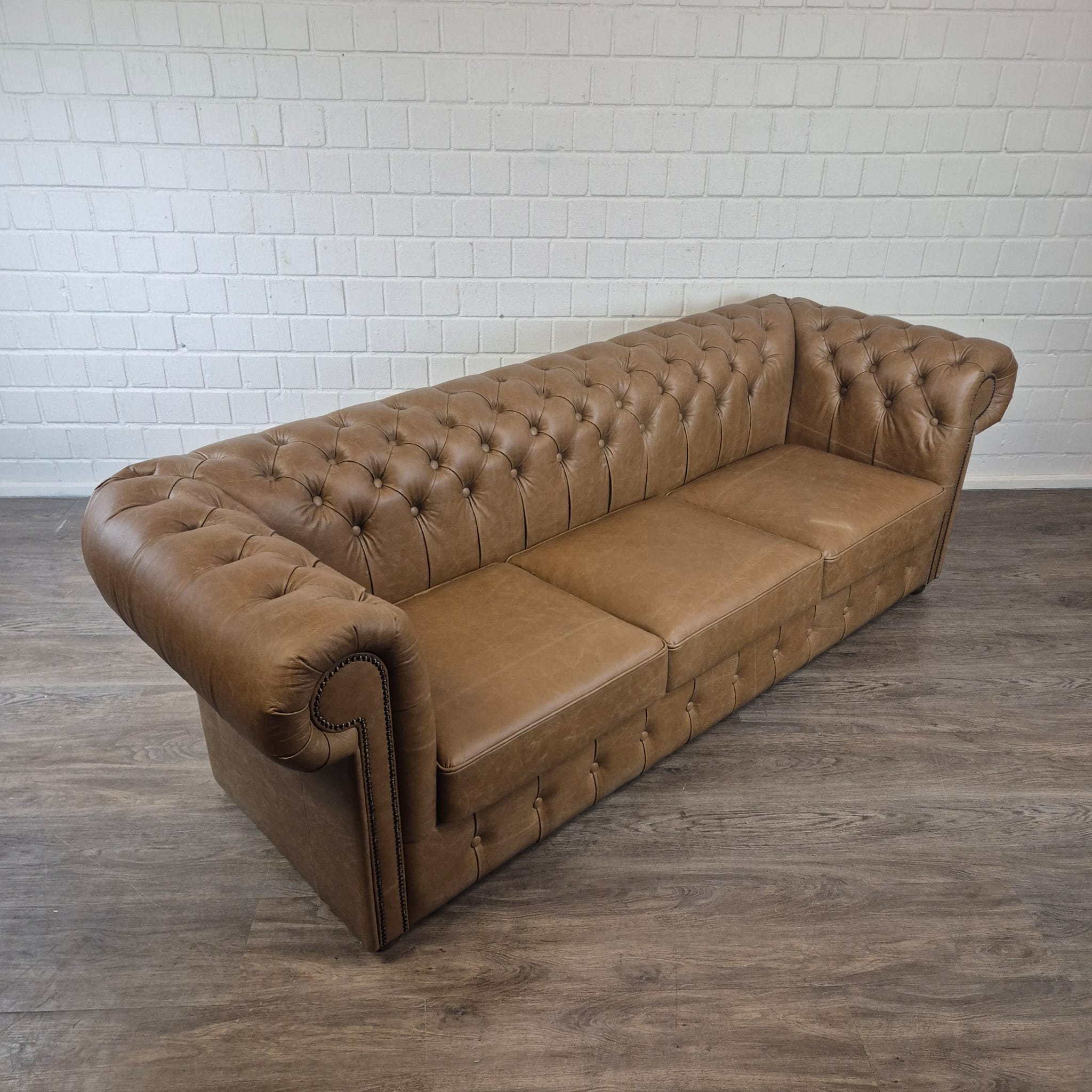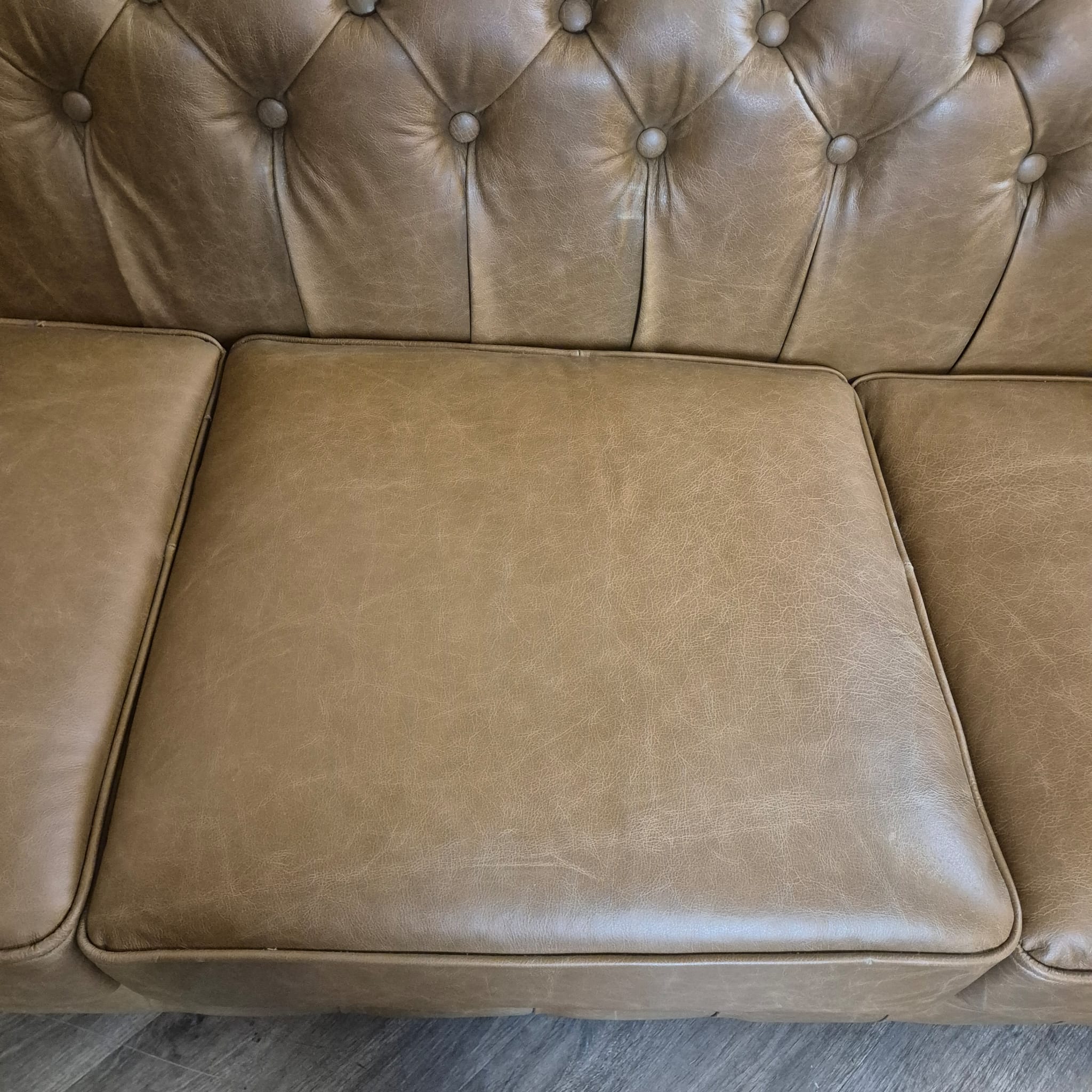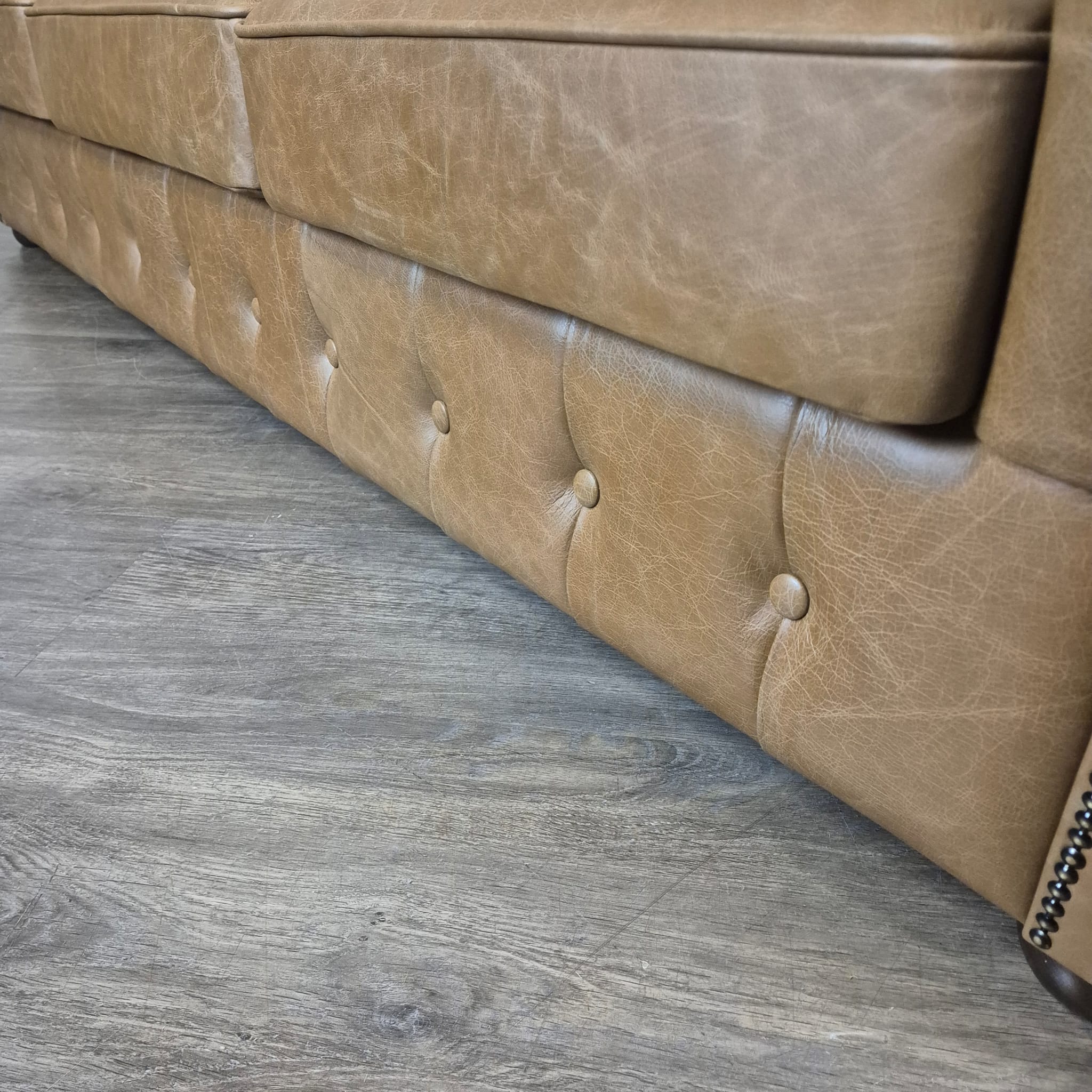 Chesterfield sofa + 2 genuine leather ottomans – Display model at a special price