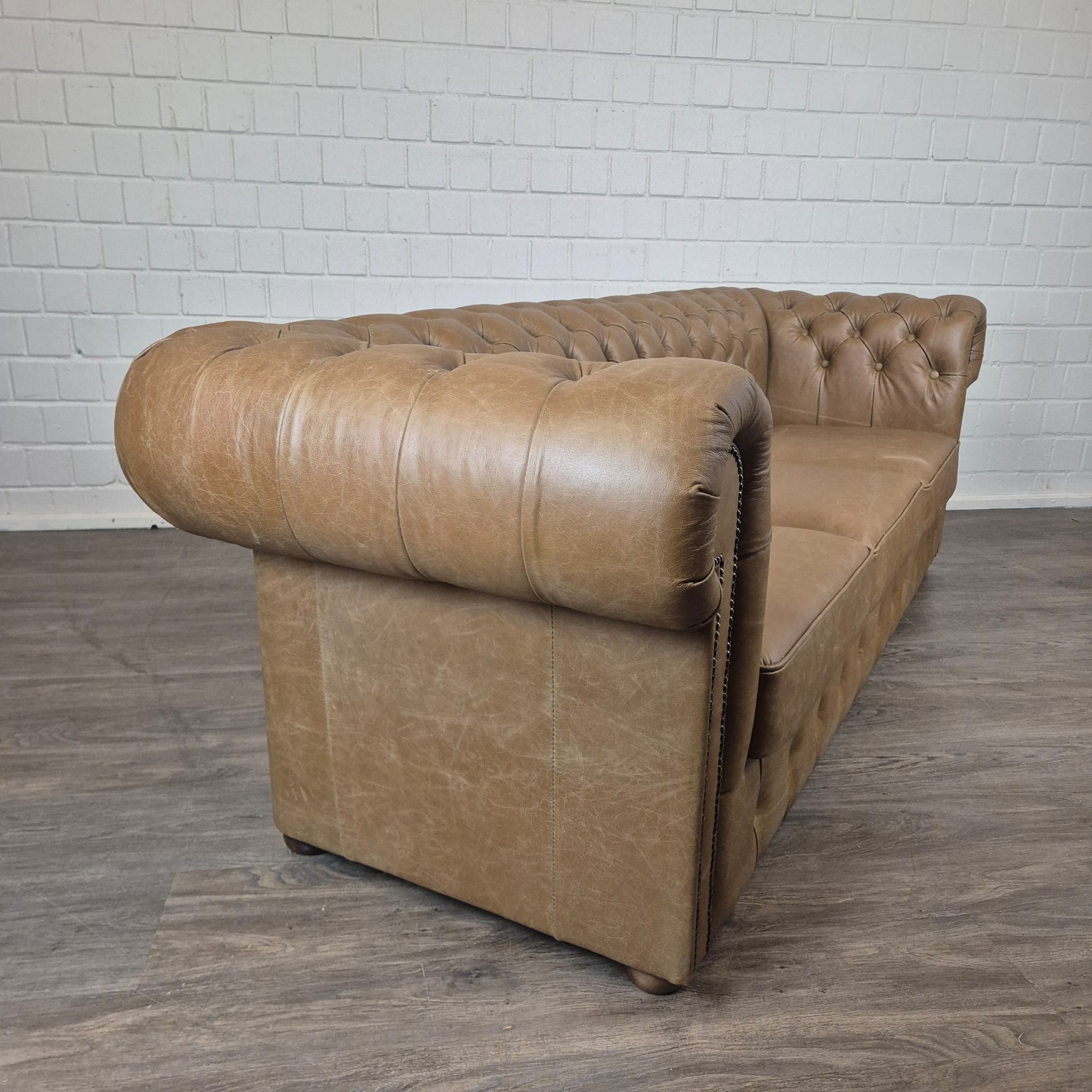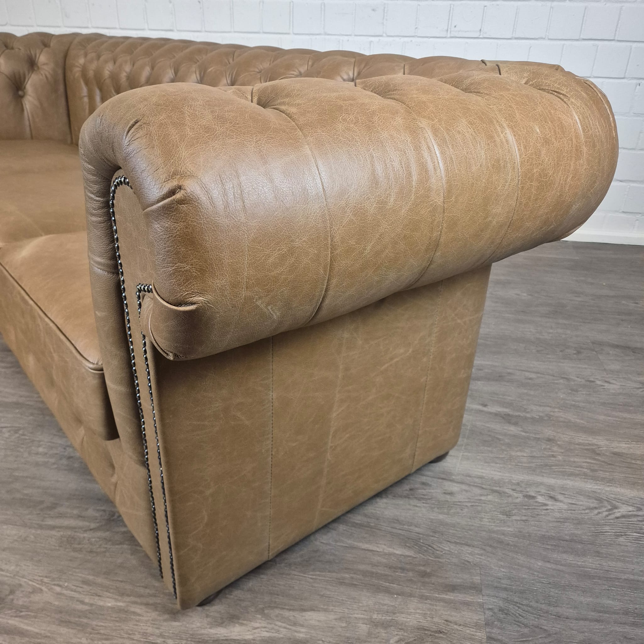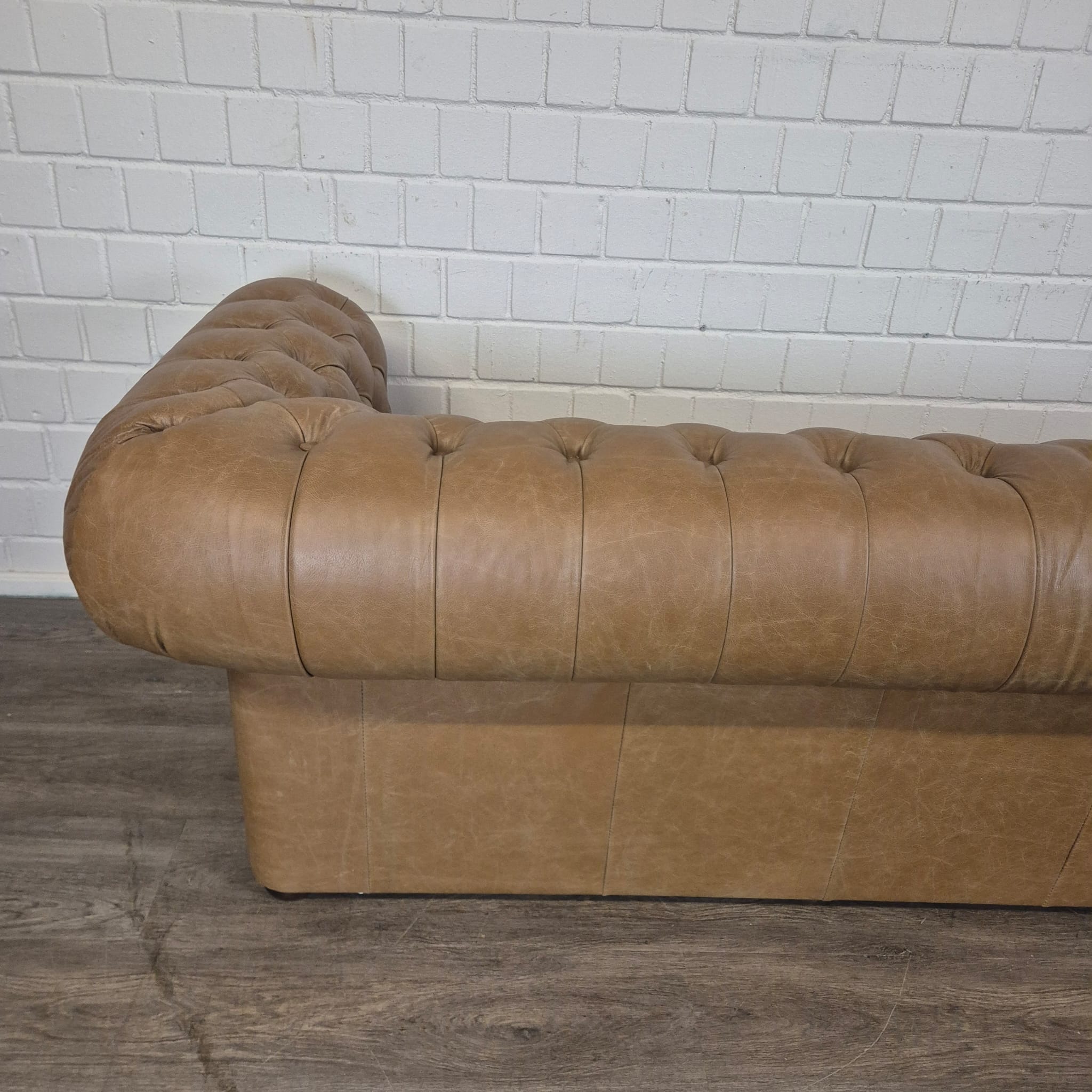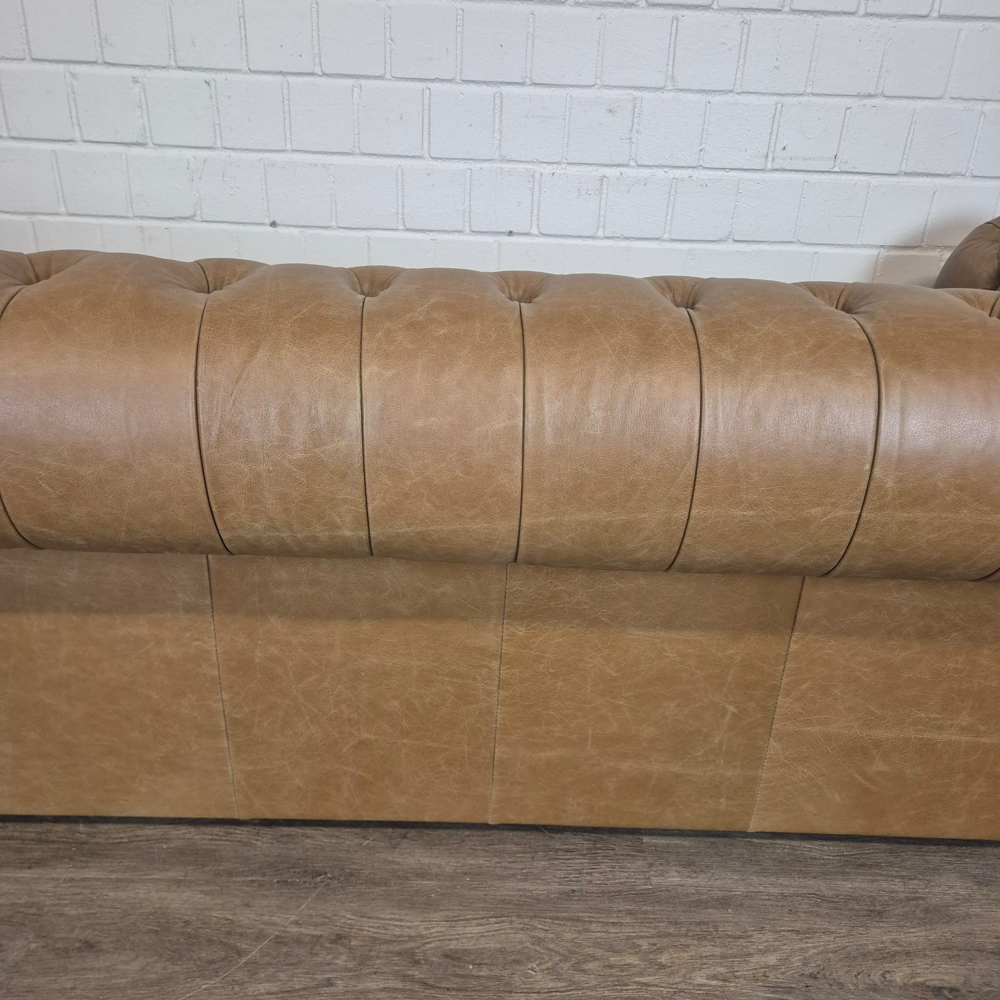 Chesterfield sofa + 2 genuine leather ottomans – Display model at a special price