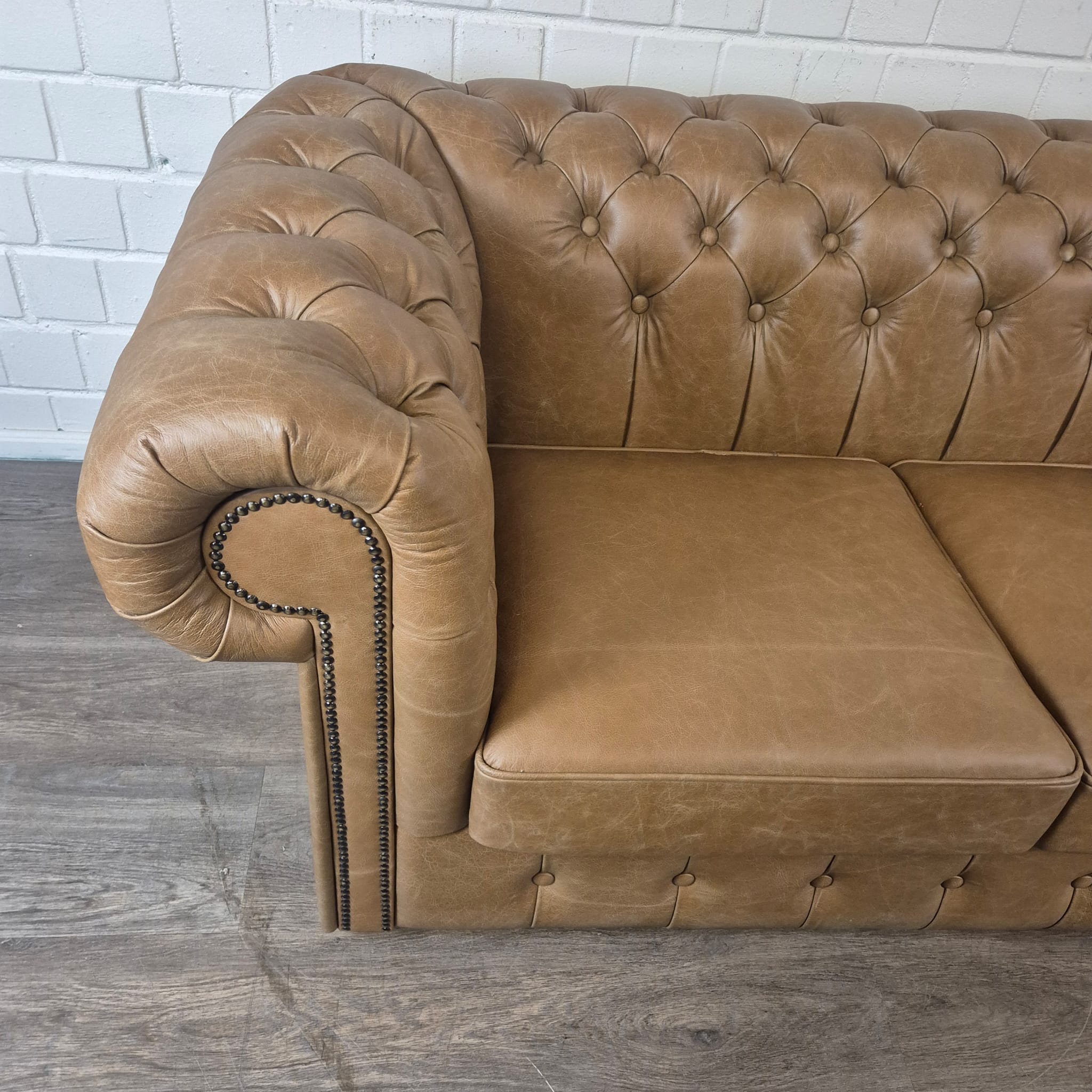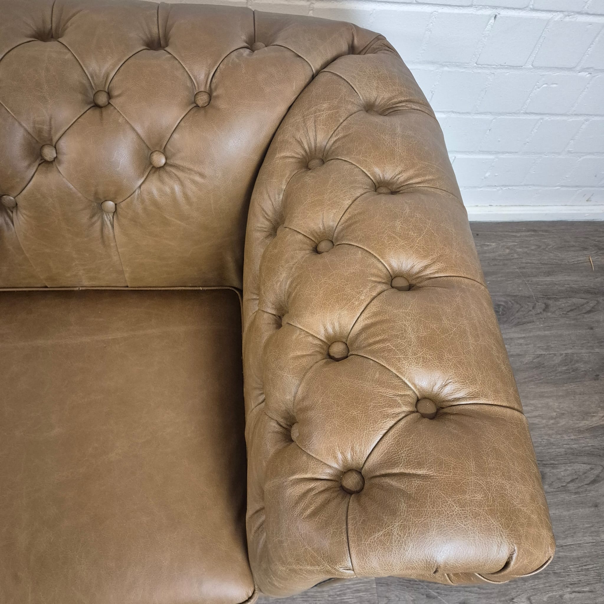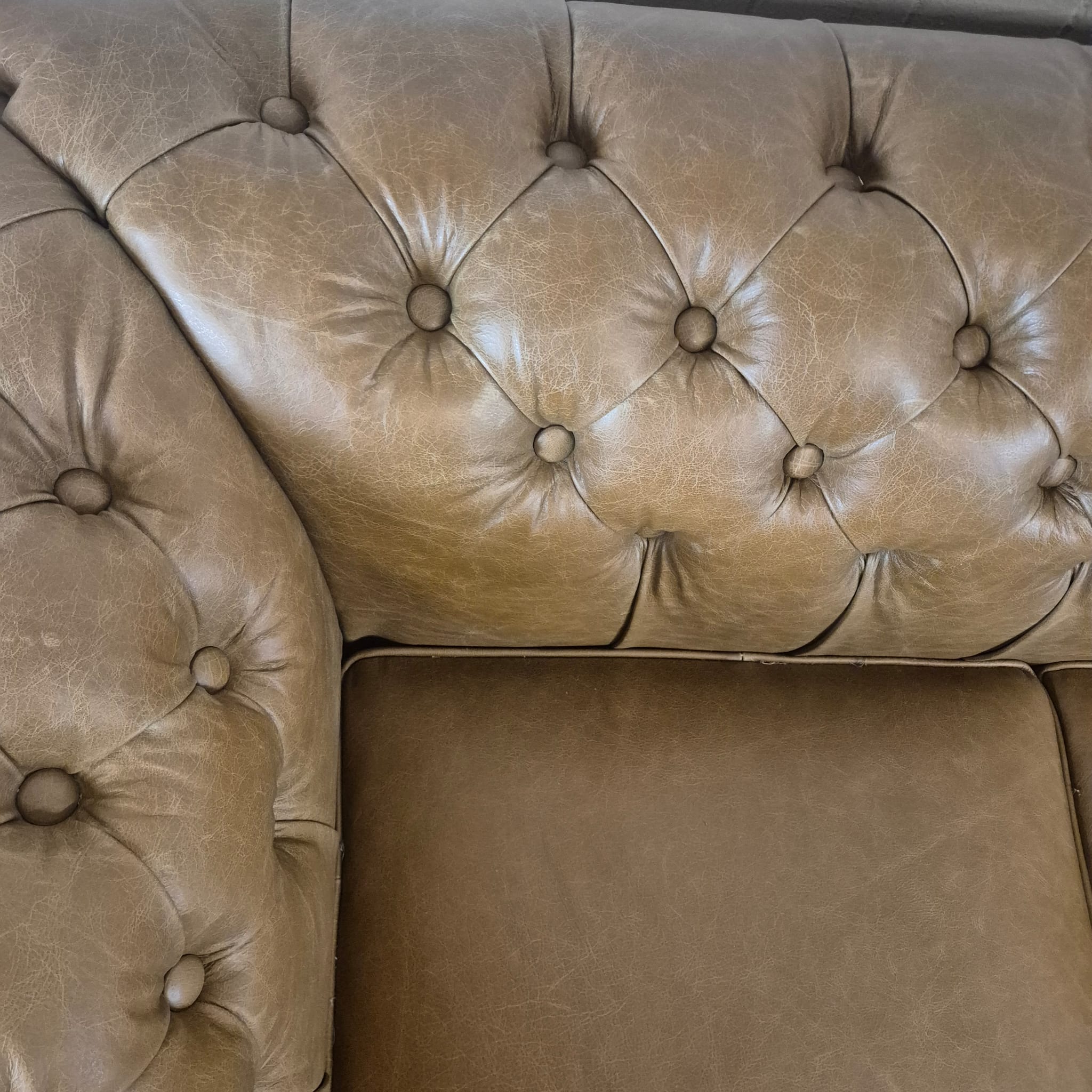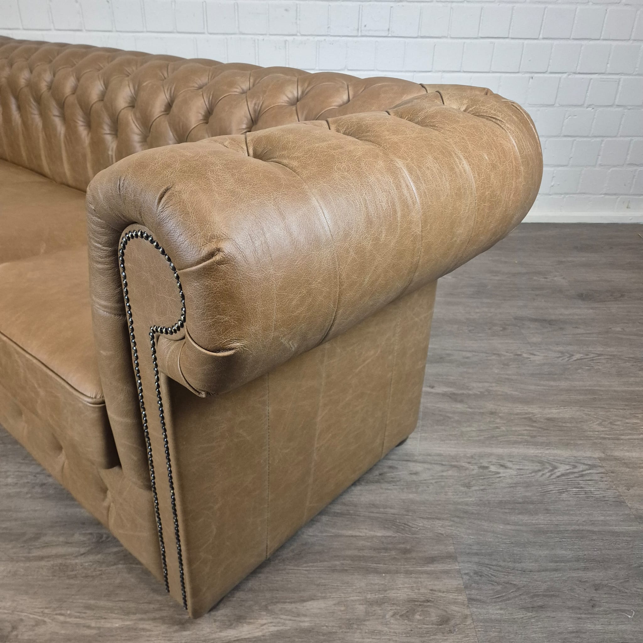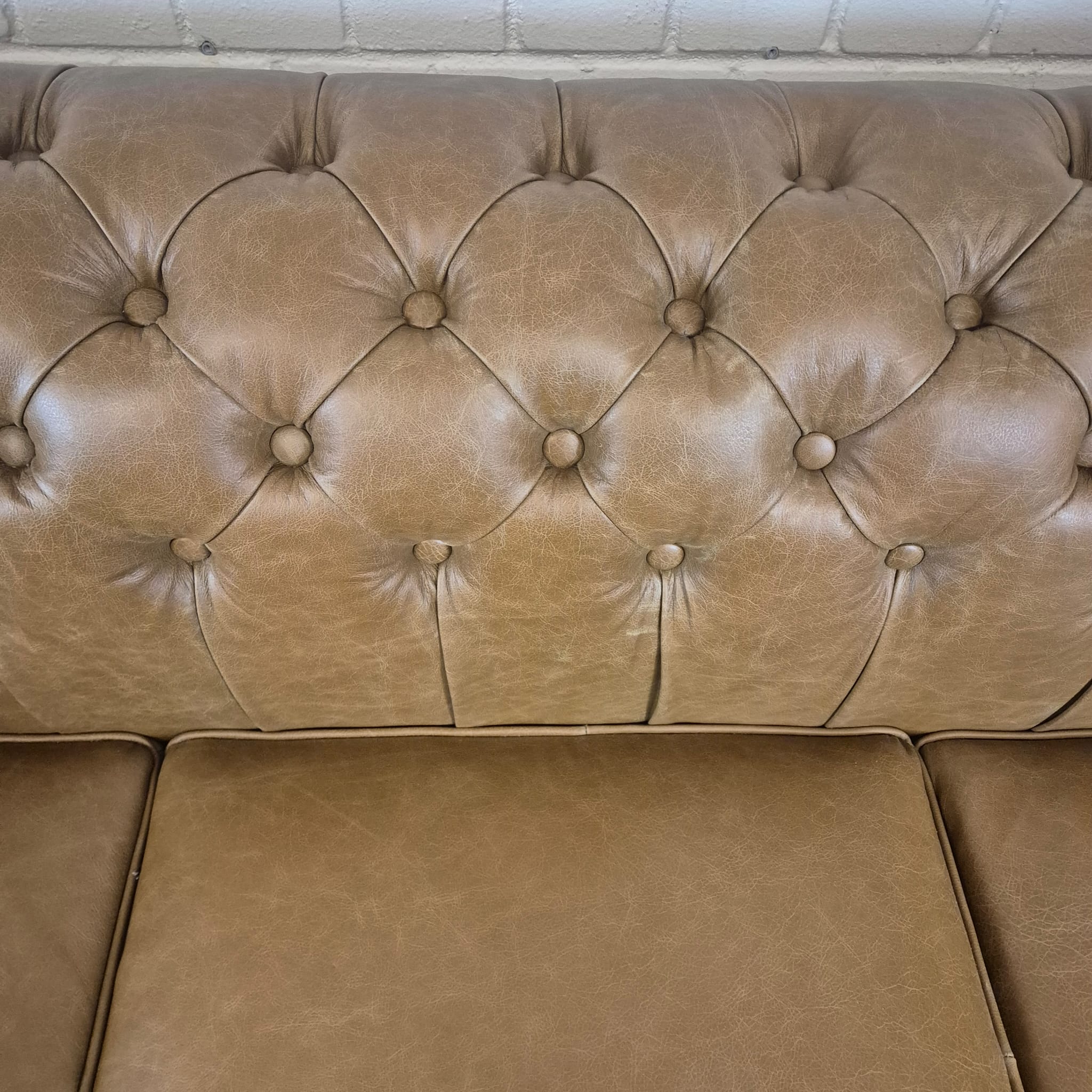 Chesterfield sofa + 2 genuine leather ottomans – Display model at a special price
