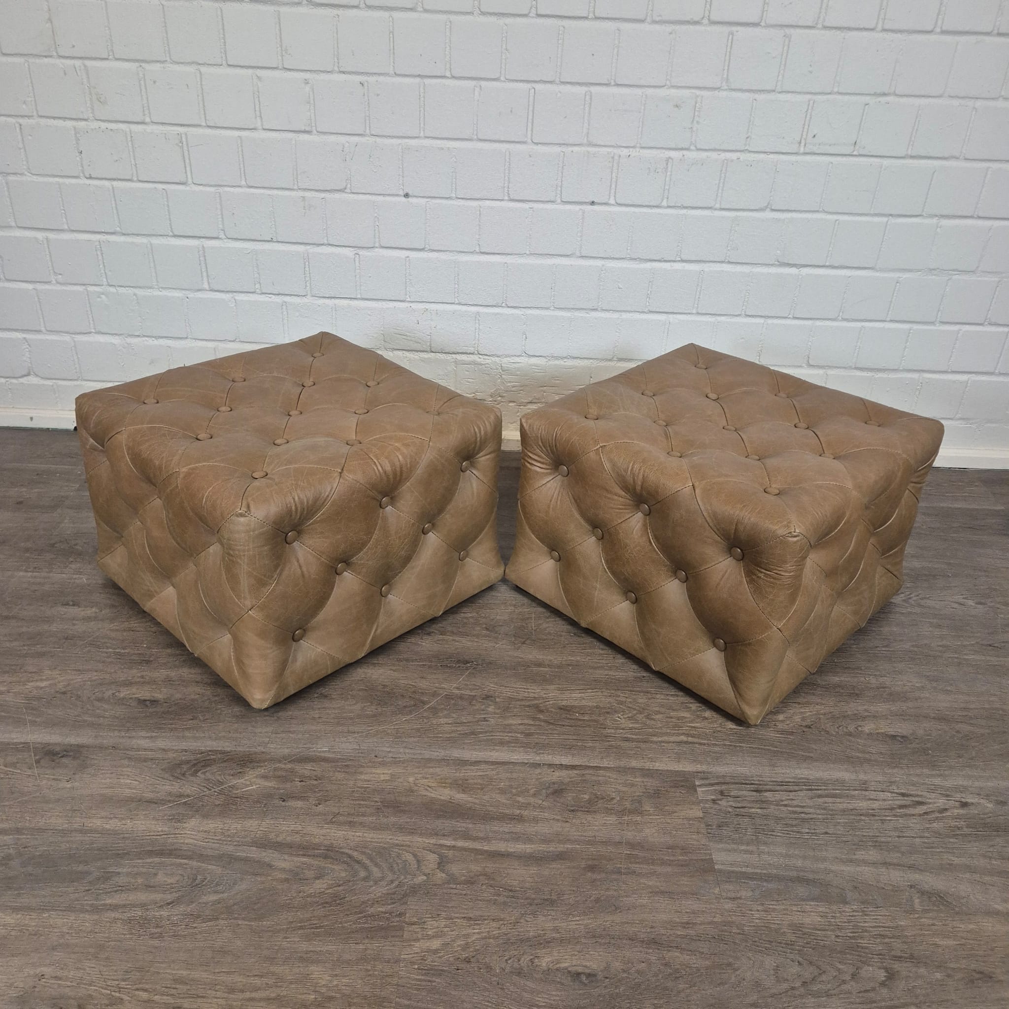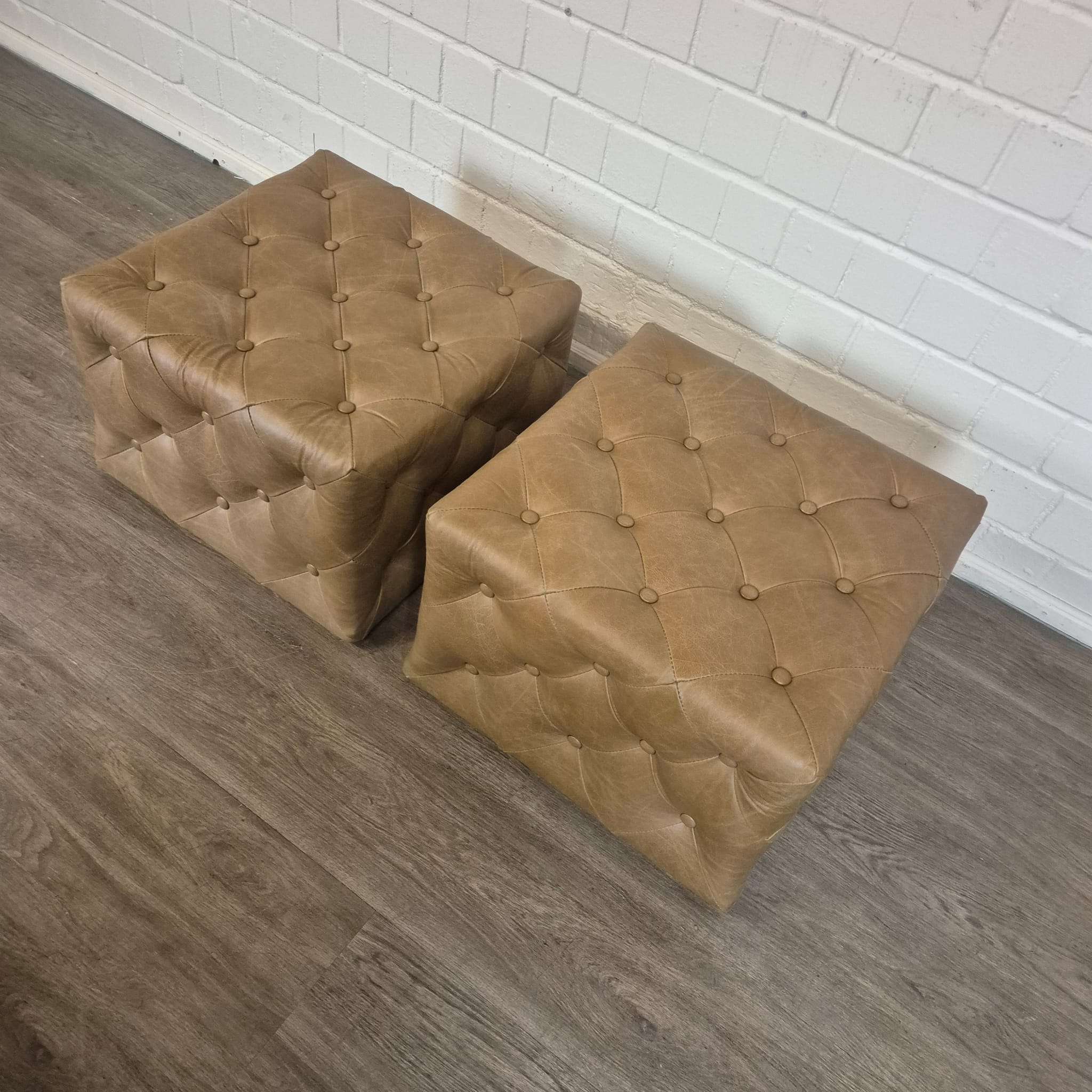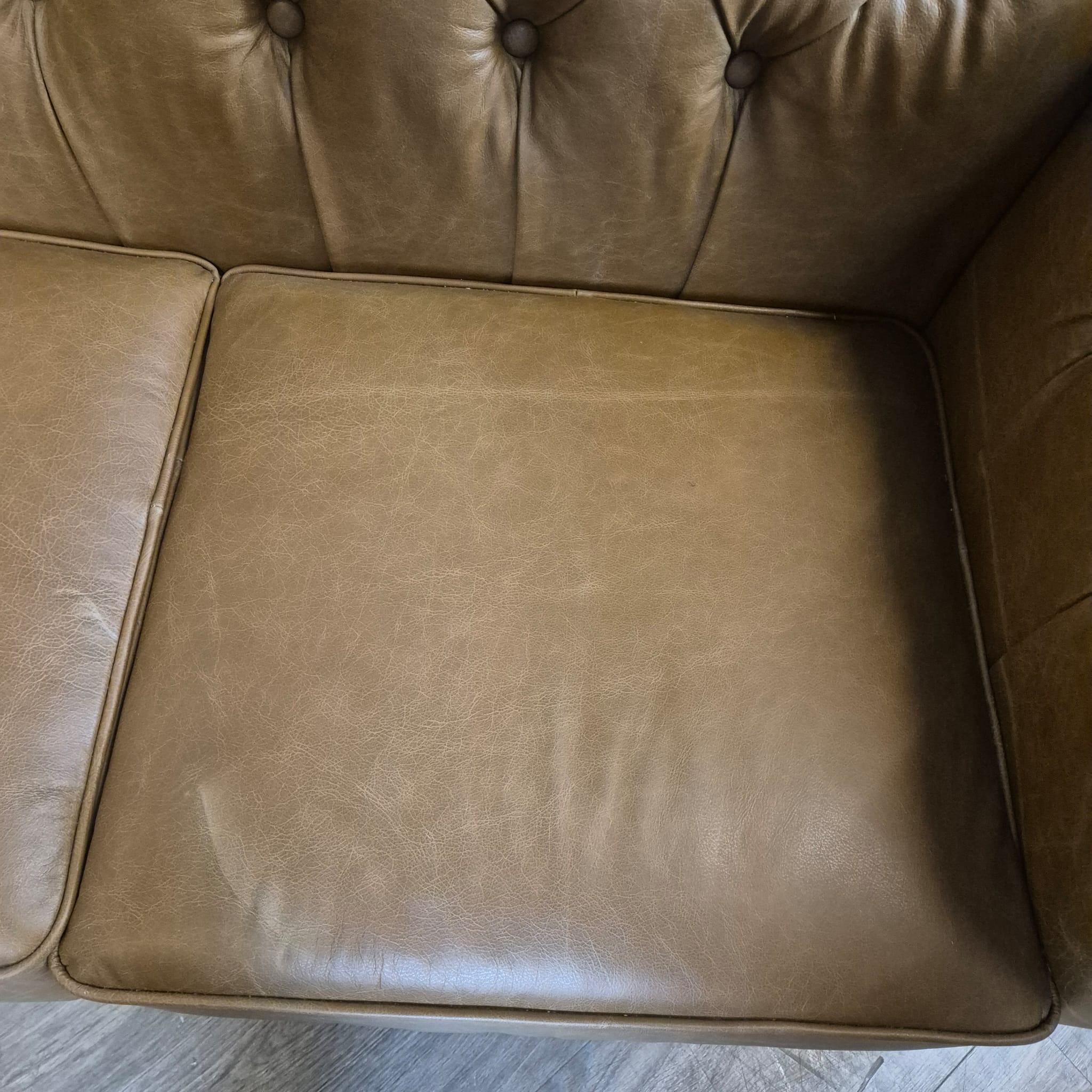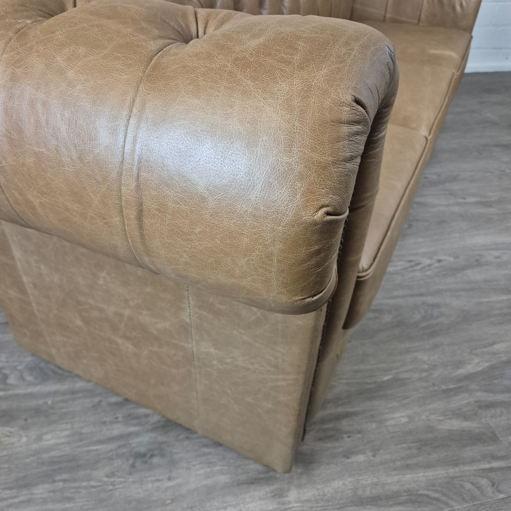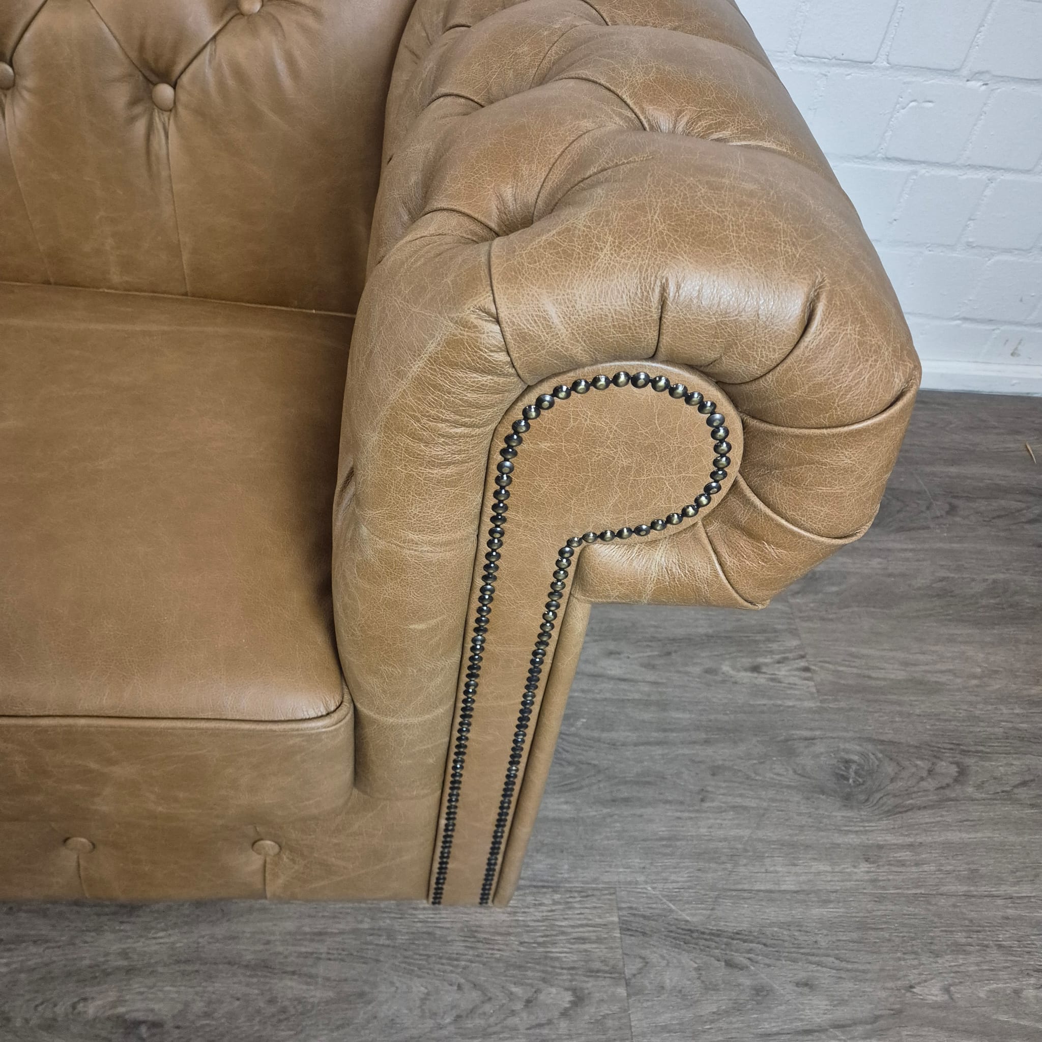 Chesterfield sofa + 2 genuine leather ottomans – Display model at a special price