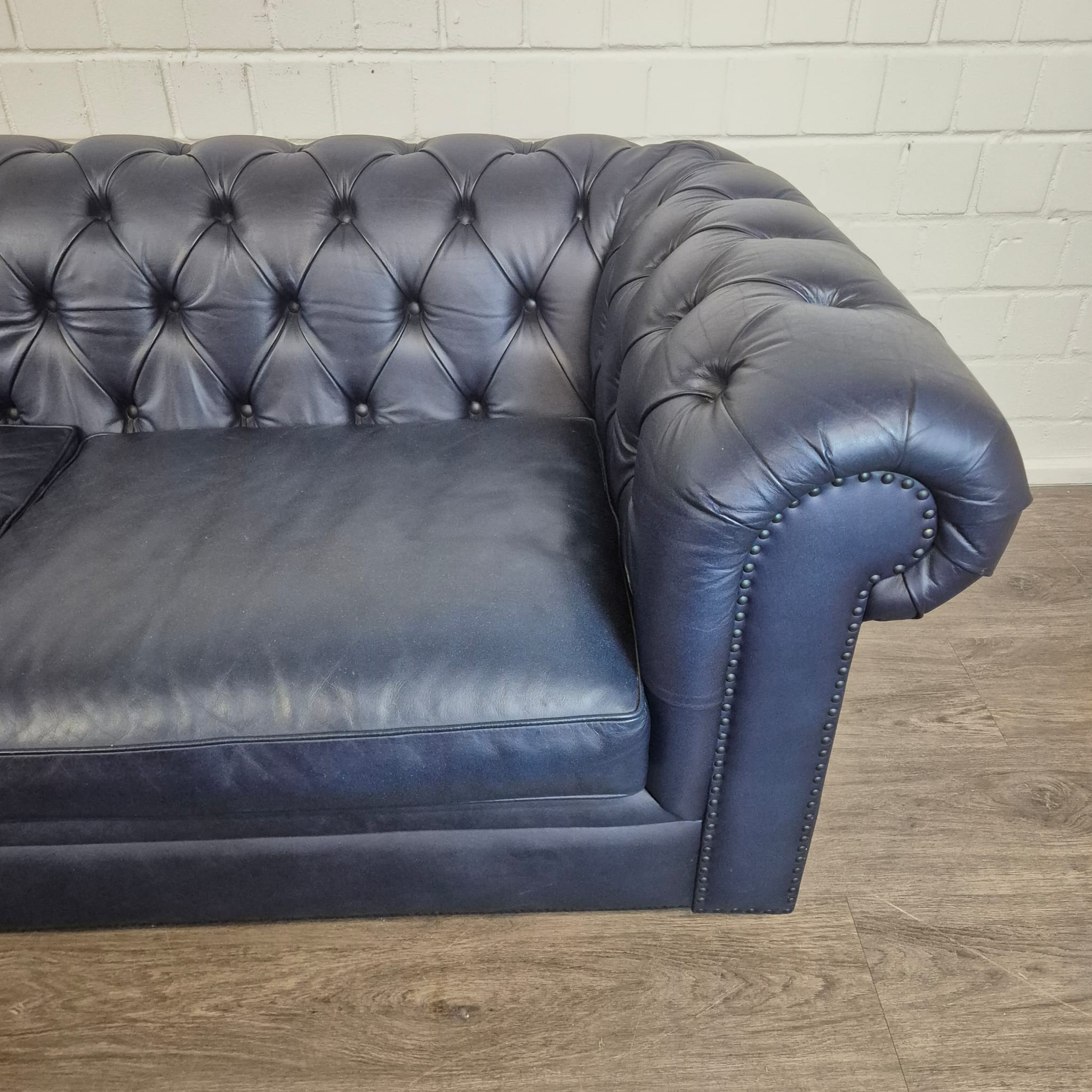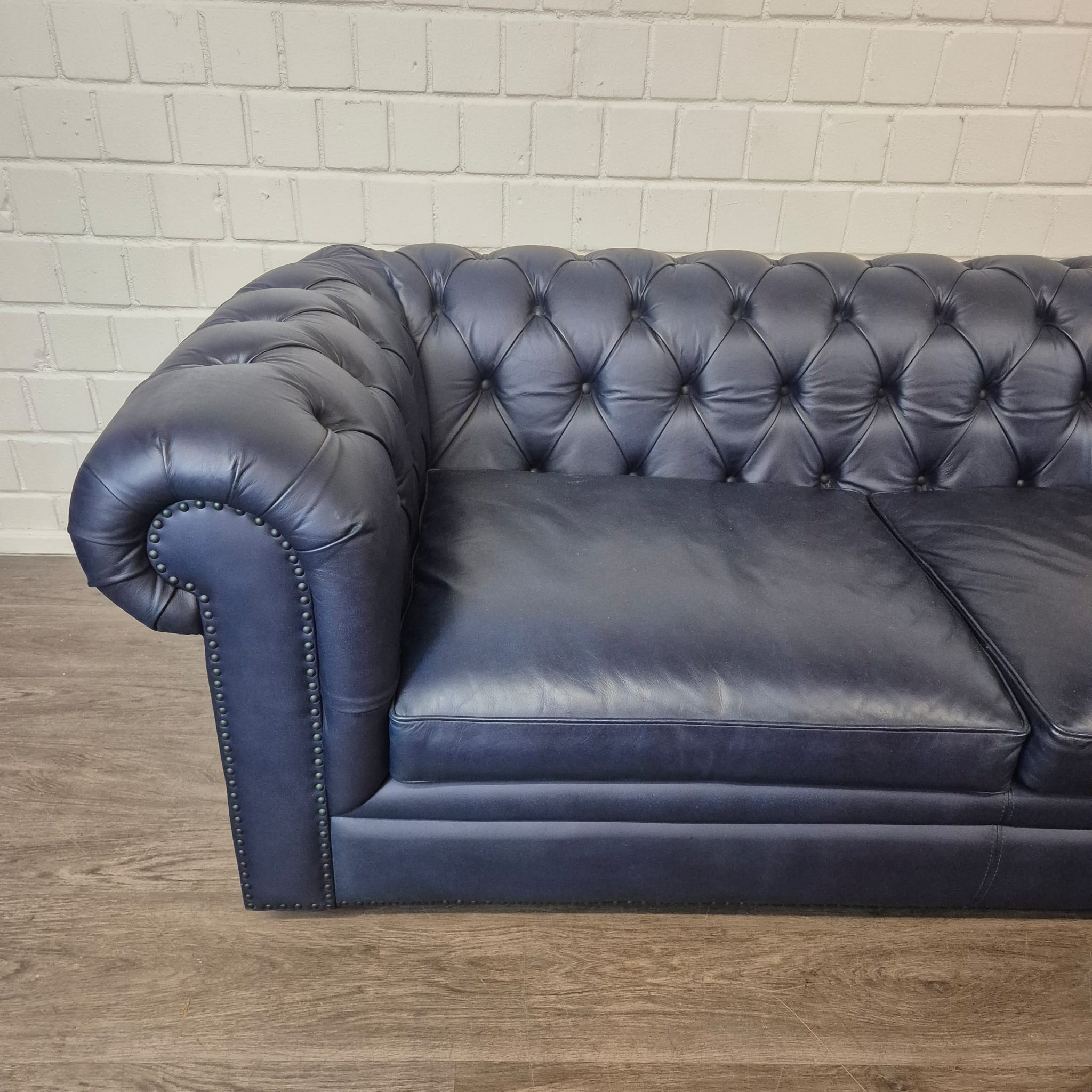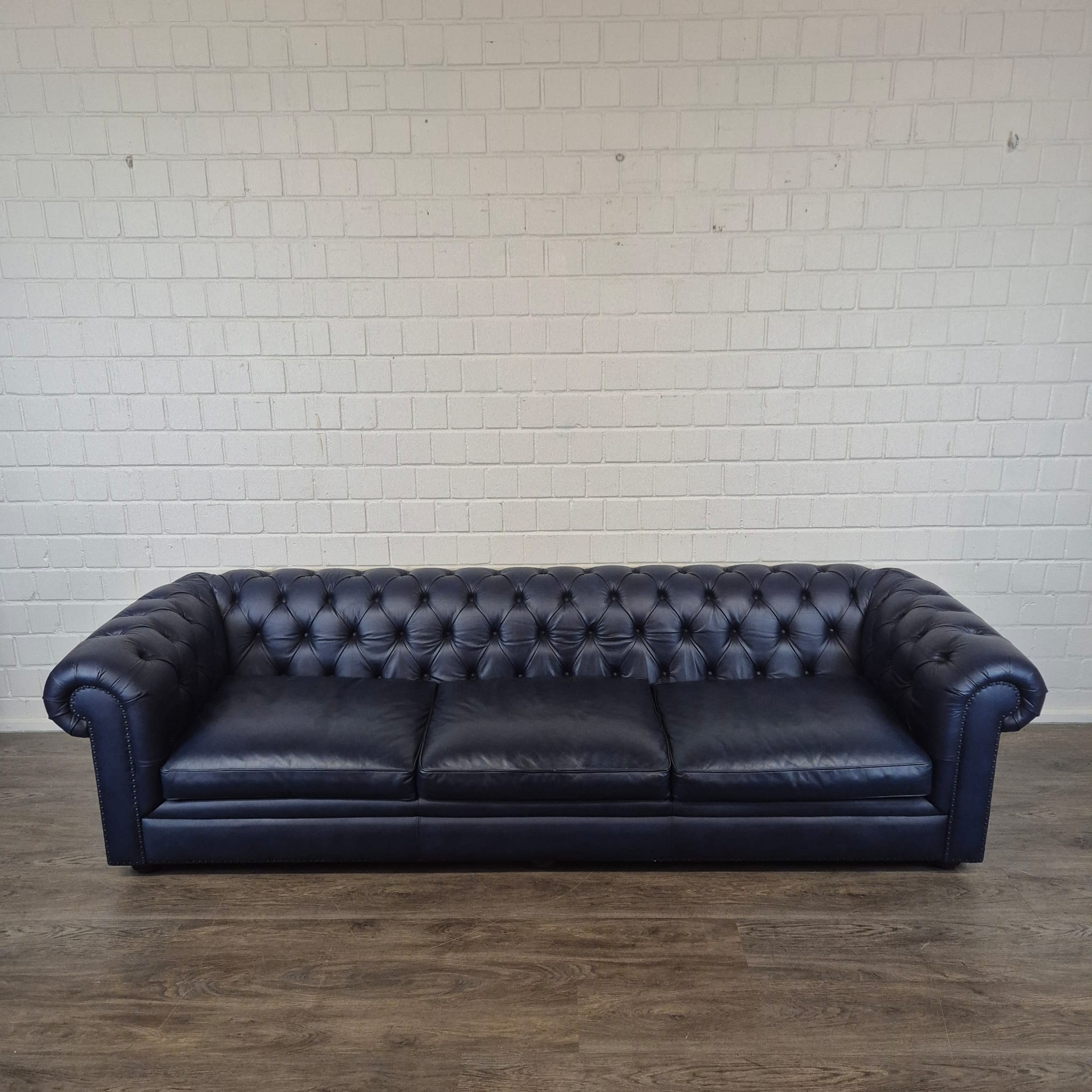 Bring timeless elegance to your living room or office! We offer a classic Chesterfield sofa in a rare and exceptionally elegant dark blue finish. As a former showcase model, you now have the opportunity to acquire this luxurious piece of furniture at an absolute bargain.