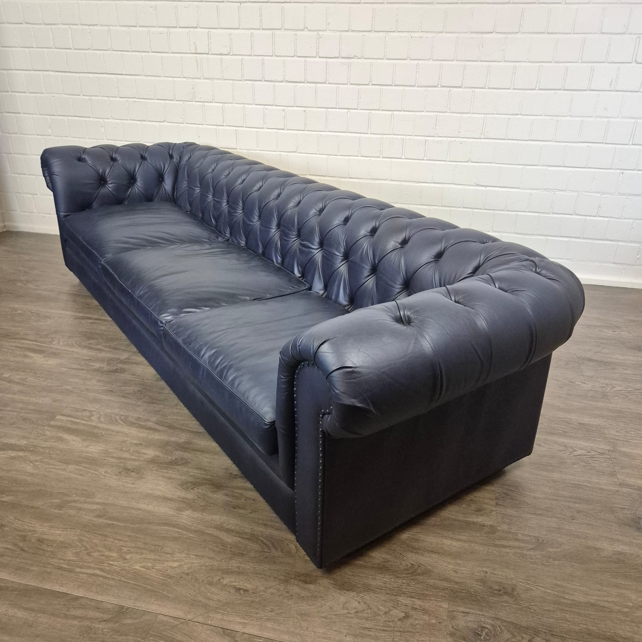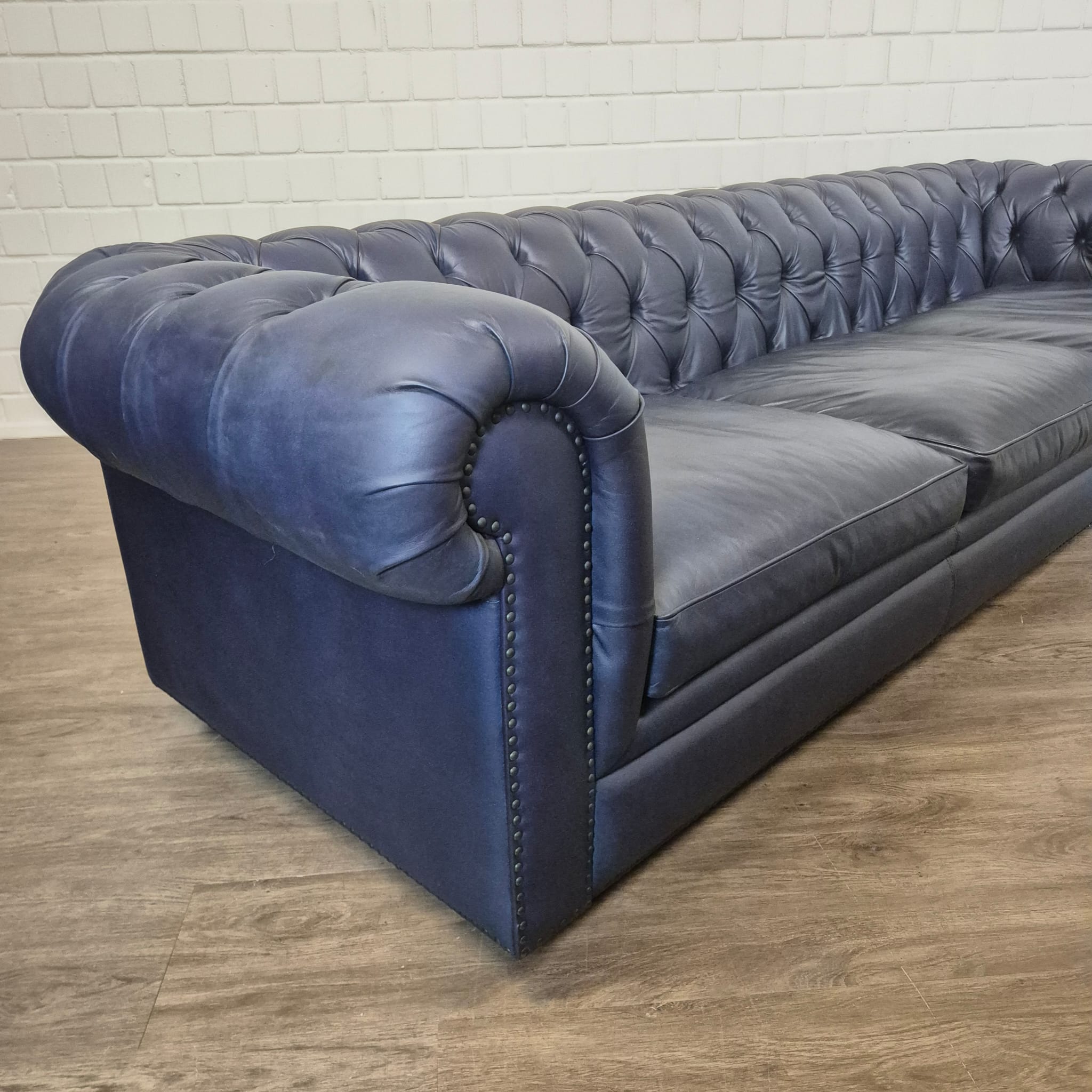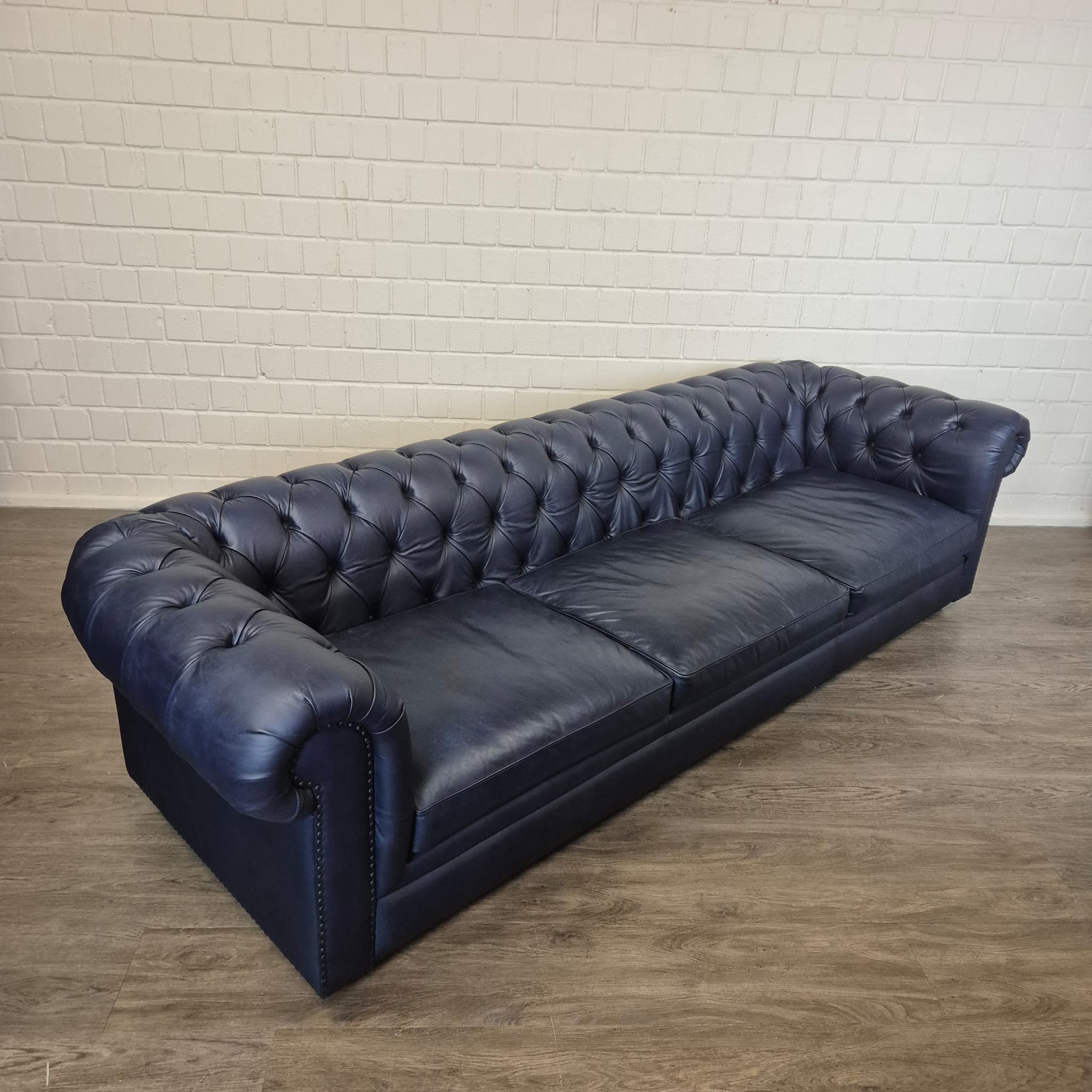 Chesterfield Sofa Leather Deep Blue 2,80 m