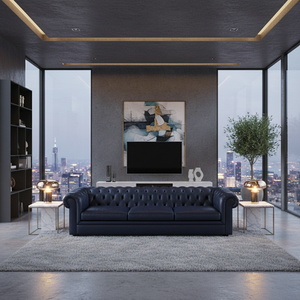 Color: Deep dark blue – a stylish alternative to classic black or brown that combines perfectly with various interior styles.