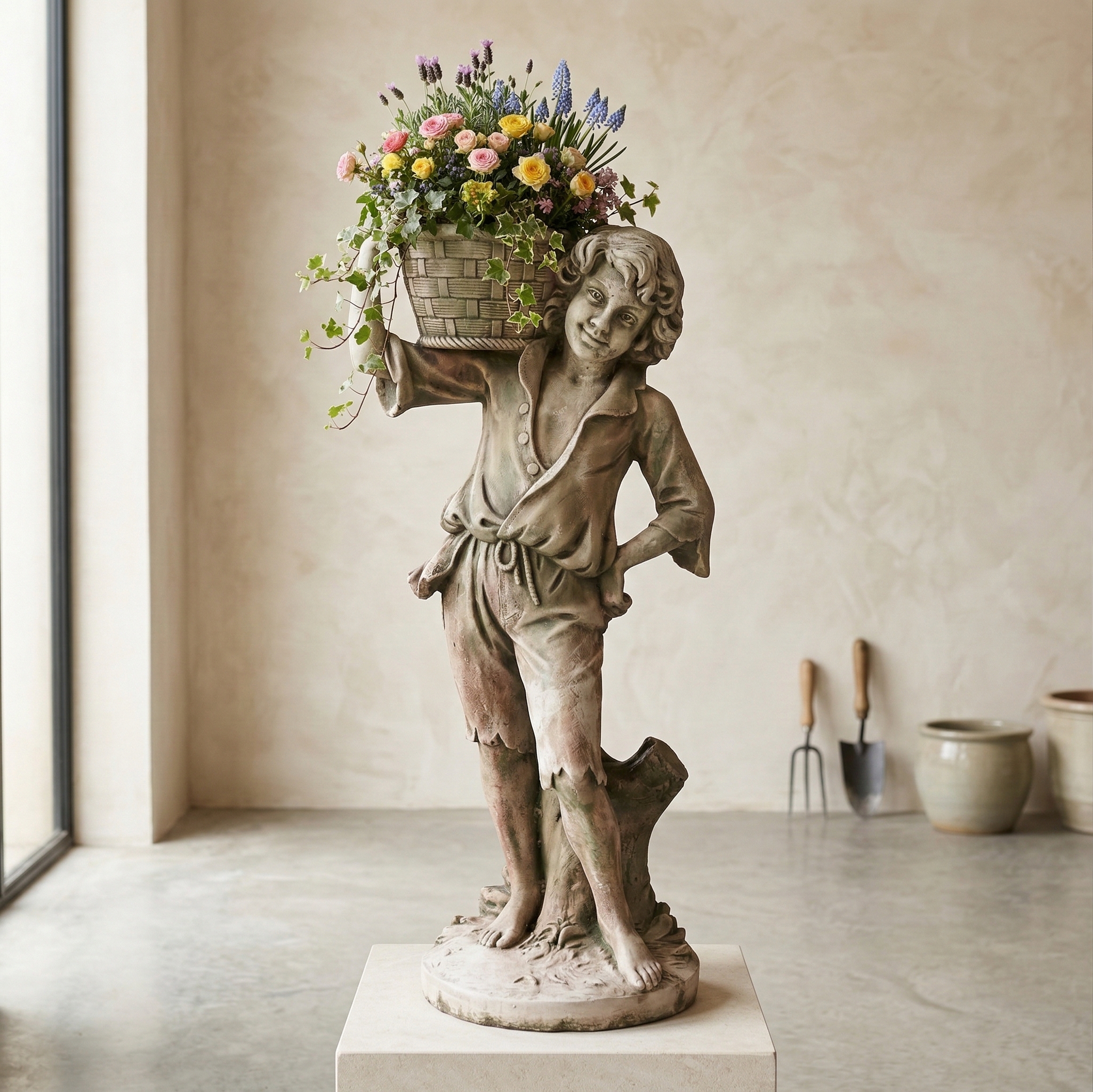 Concrete fountain of a boy with a basket 1,10m