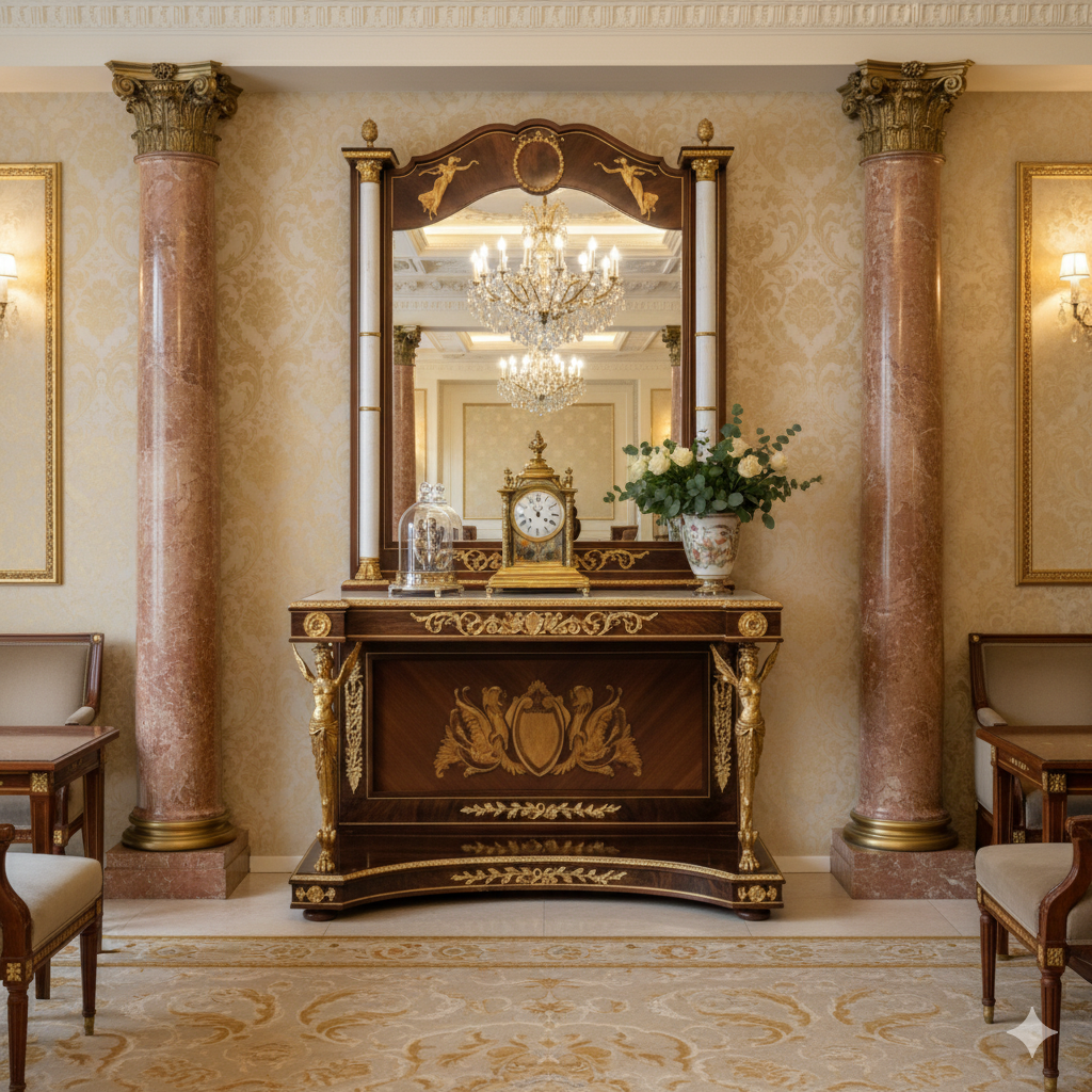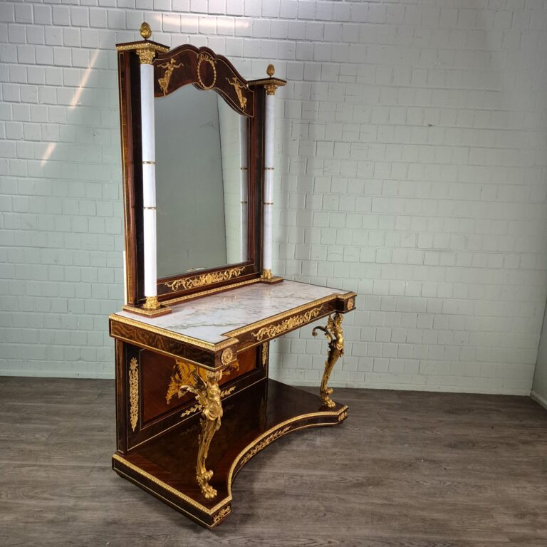 Console Table with Mirror 1,40 m Baroque Style Marble Gold