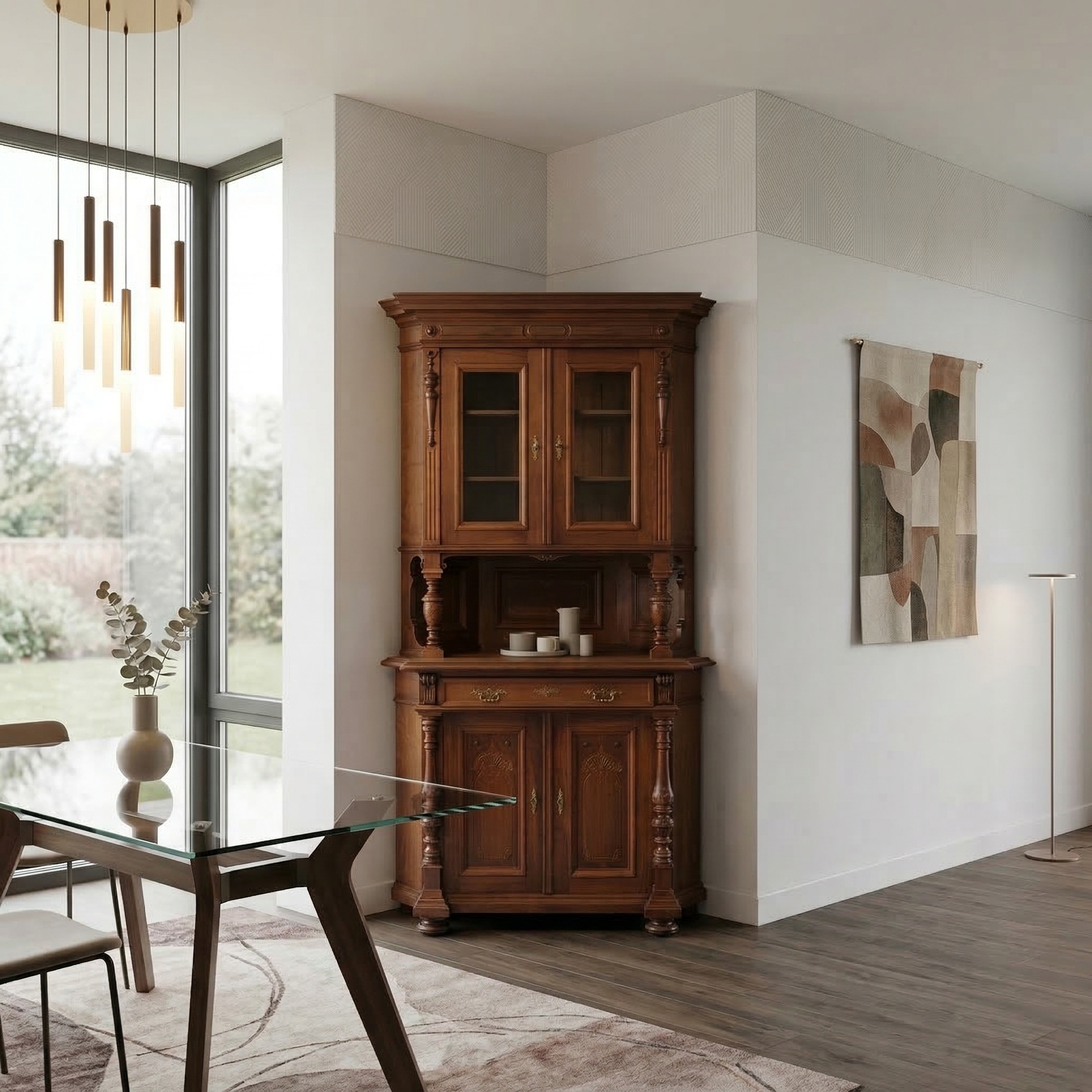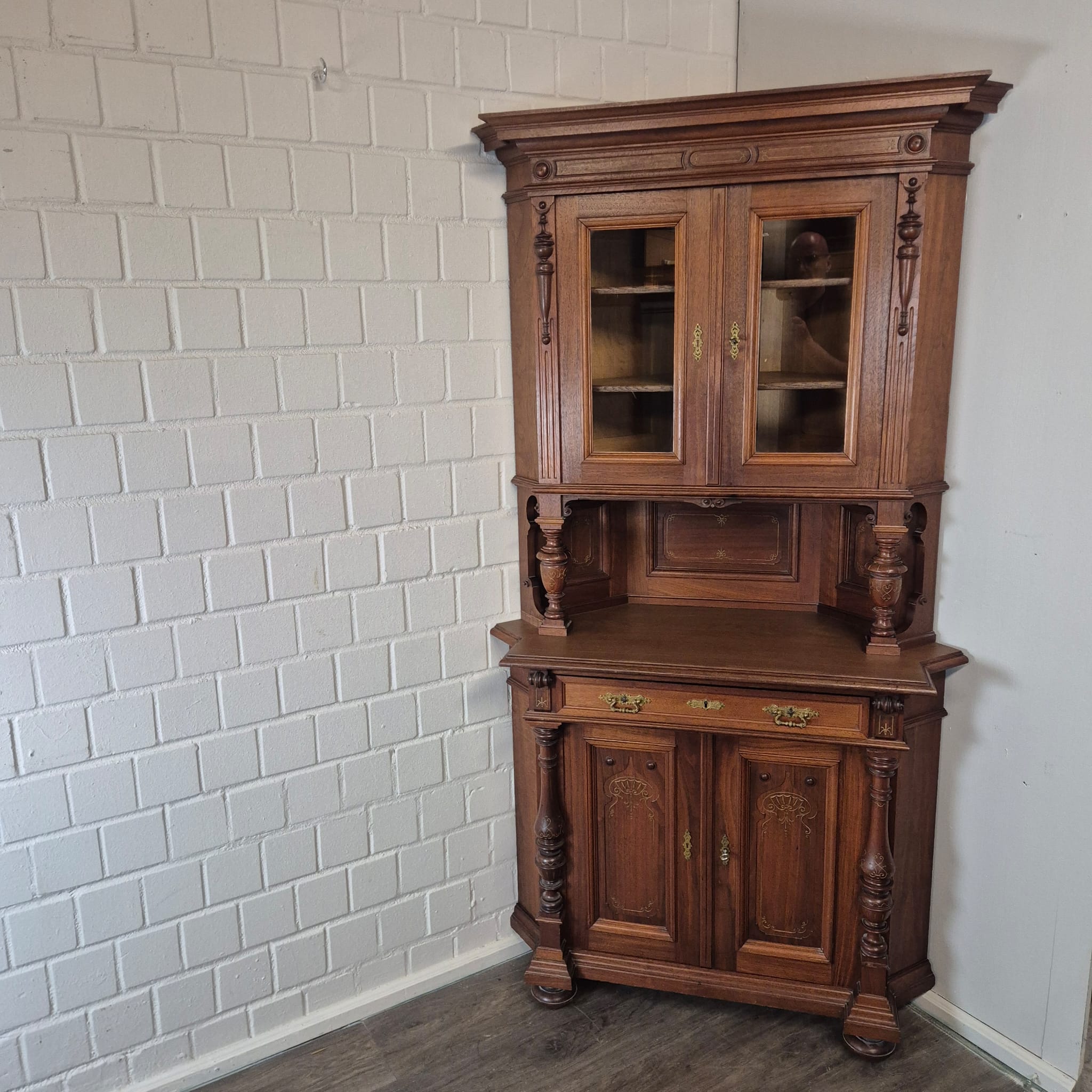 Corner Cabinet Gründerzeit 1880 Walnut
