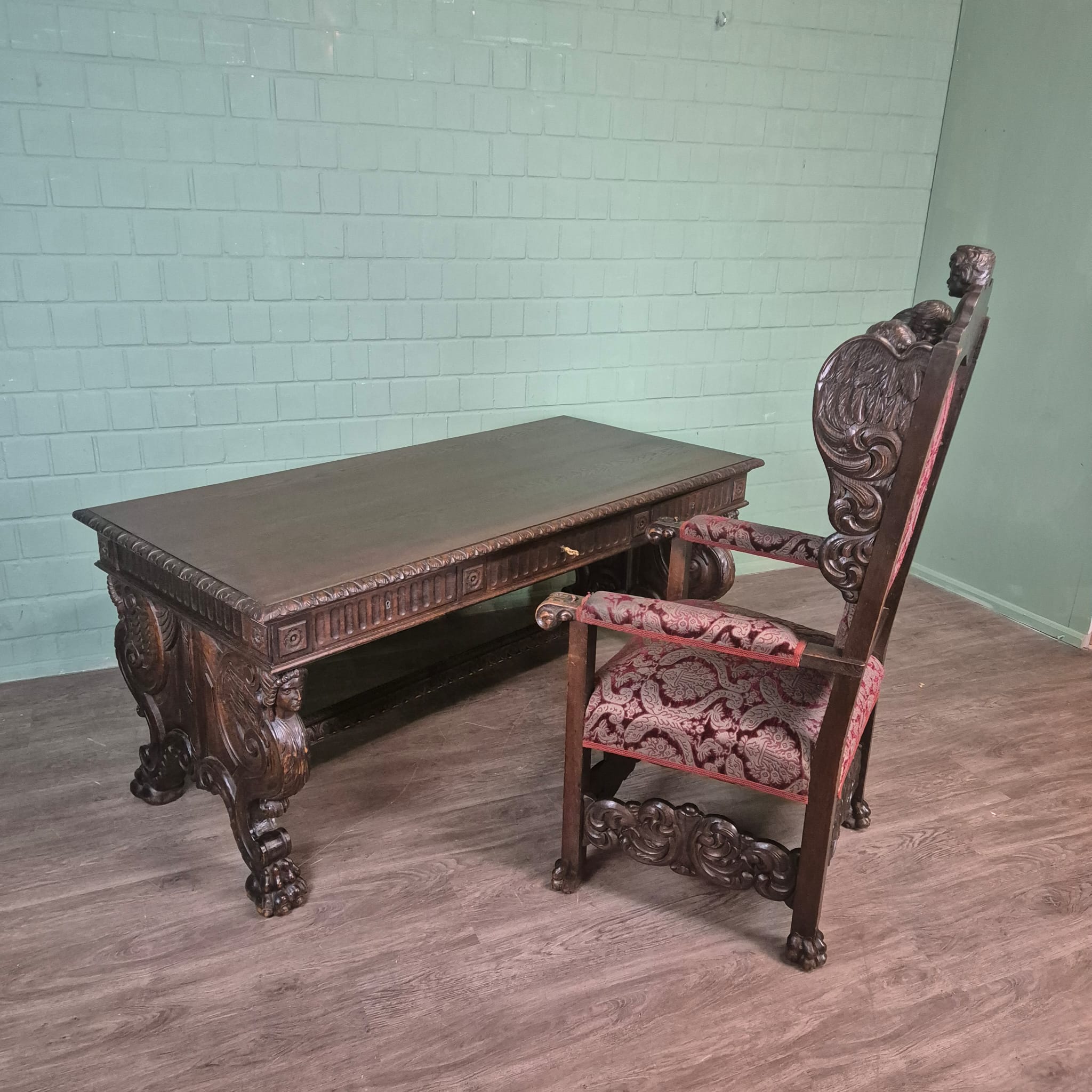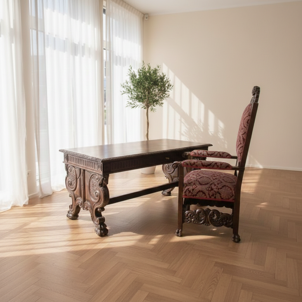 Desk and Office Chair Oak Neubaroque 1920
