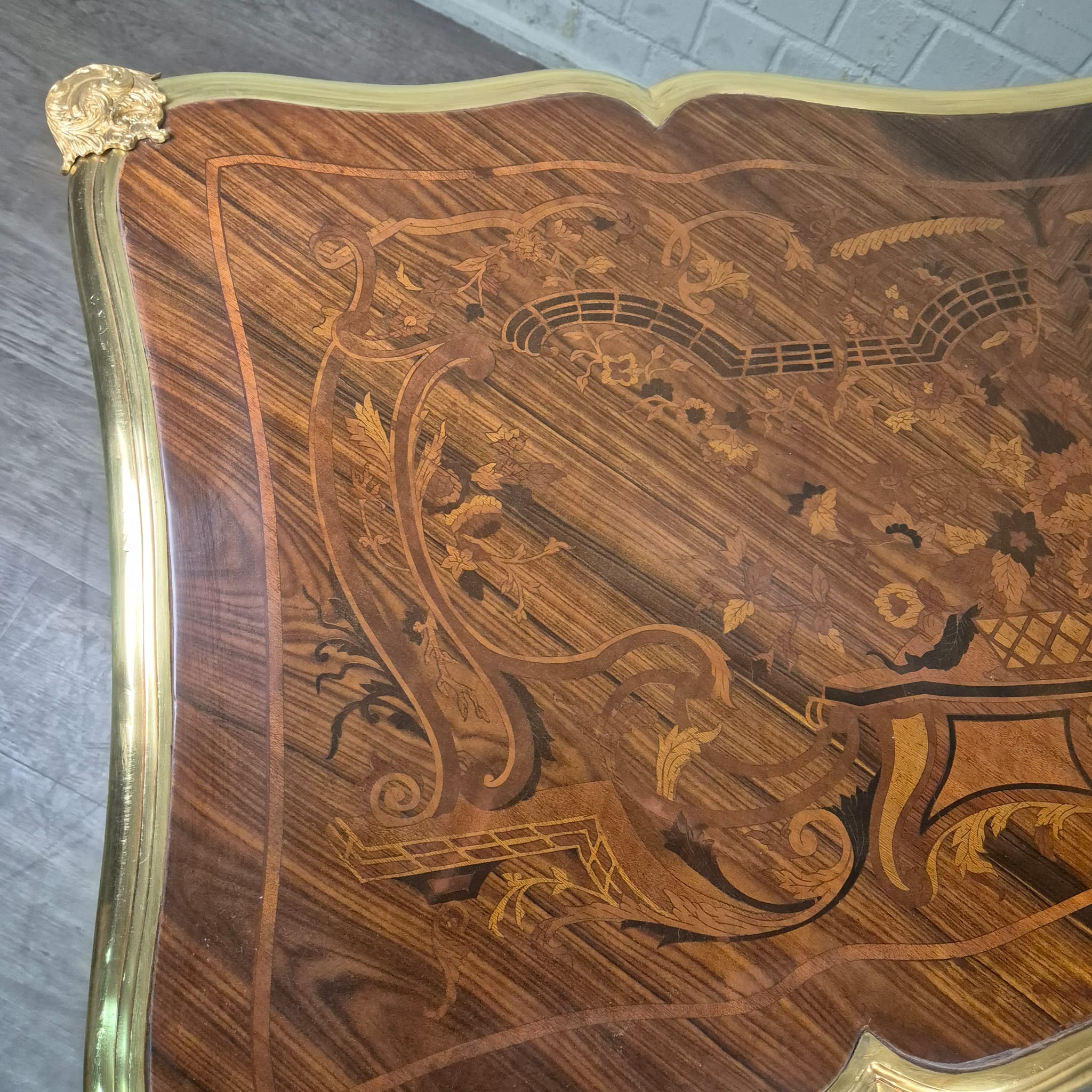 1.679,83€ Ex Tax:Beautiful neo-baroque desk – walnut, marquetry and bronze