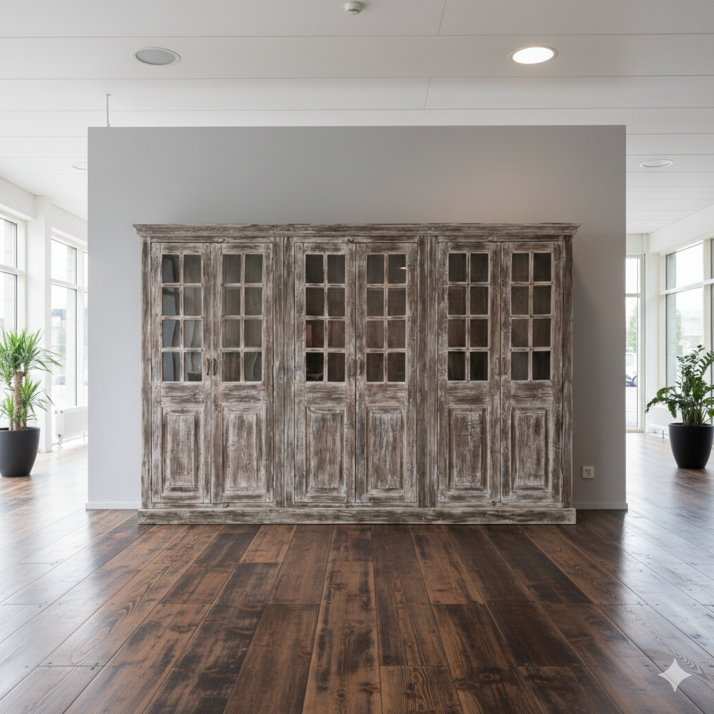Bring rustic charm and cozy elegance into your home with this unique display cabinet made of solid wood in the trendy shabby chic look. This piece of furniture is not only a practical storage solution but also a characterful decorative object that tells a story.
