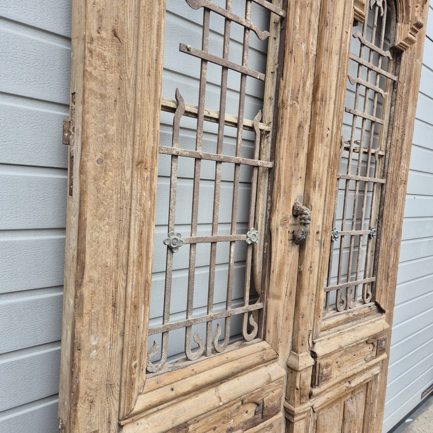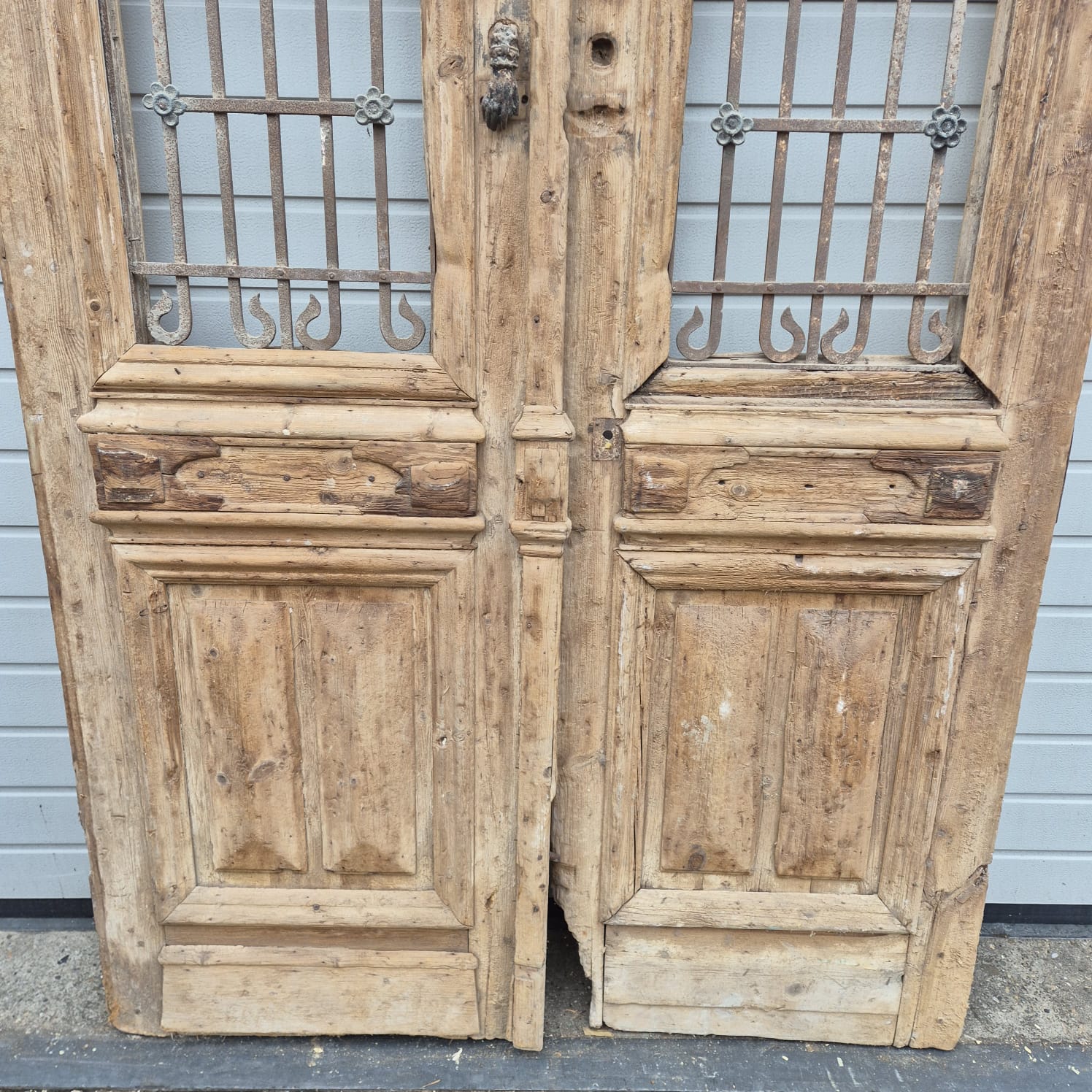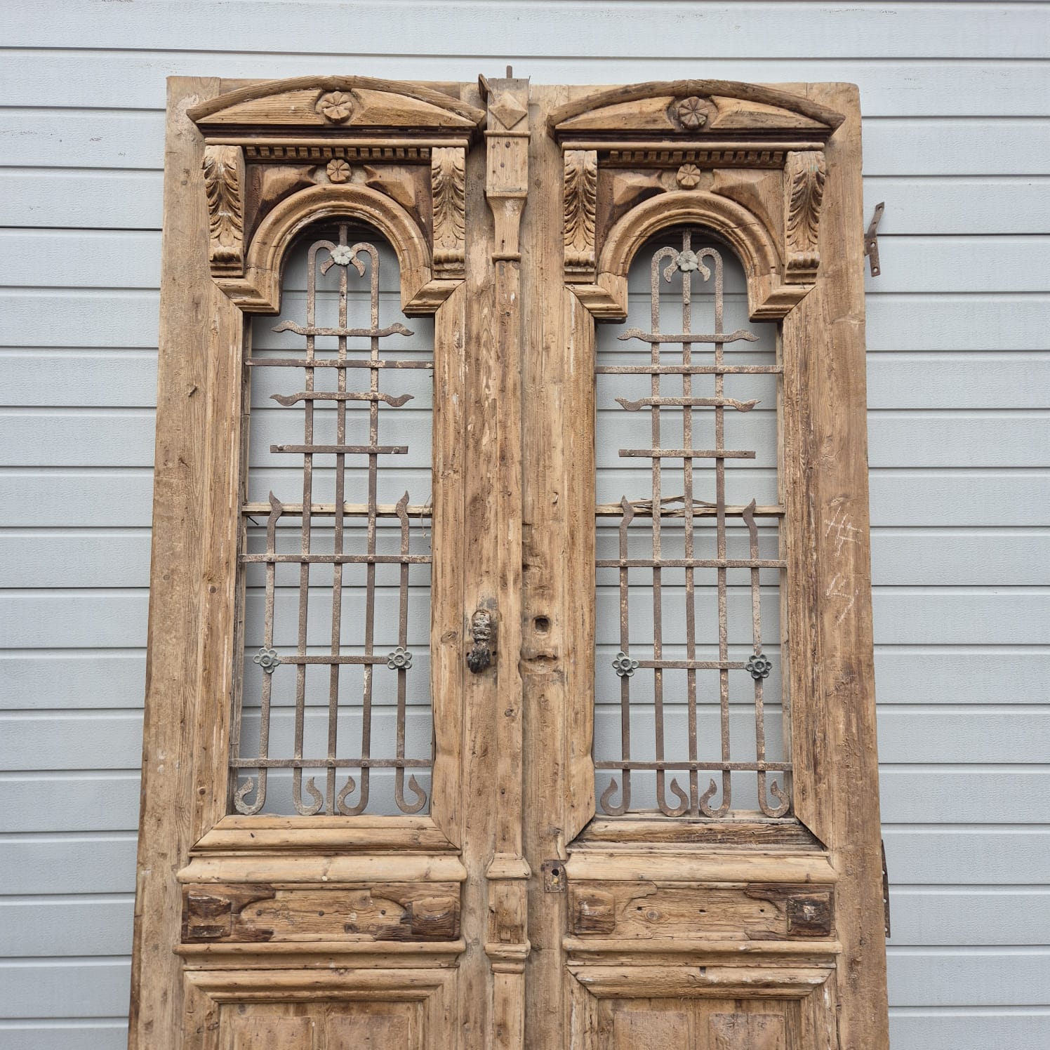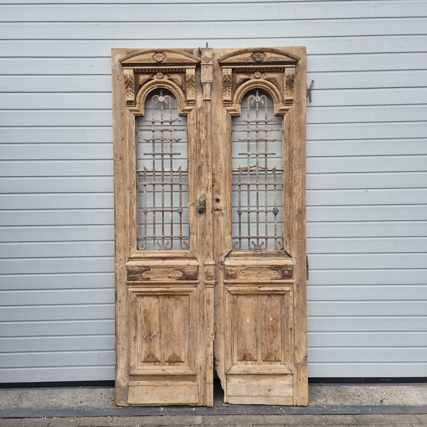 Give your home a unique character with this original example from the early 20th century. This double front door impresses with its authentic patina and the high-quality craftsmanship typical of the Gründerzeit era. Whether professionally restored or preserved in its charming shabby chic state, it is a real eye-catcher for historic buildings, country houses, or as a striking contrasting element in modern architecture.