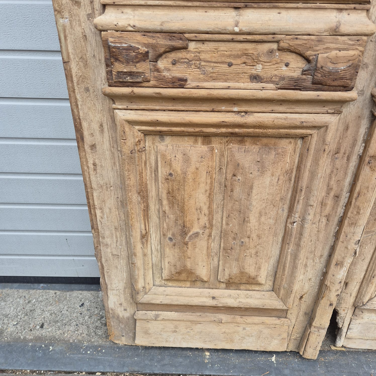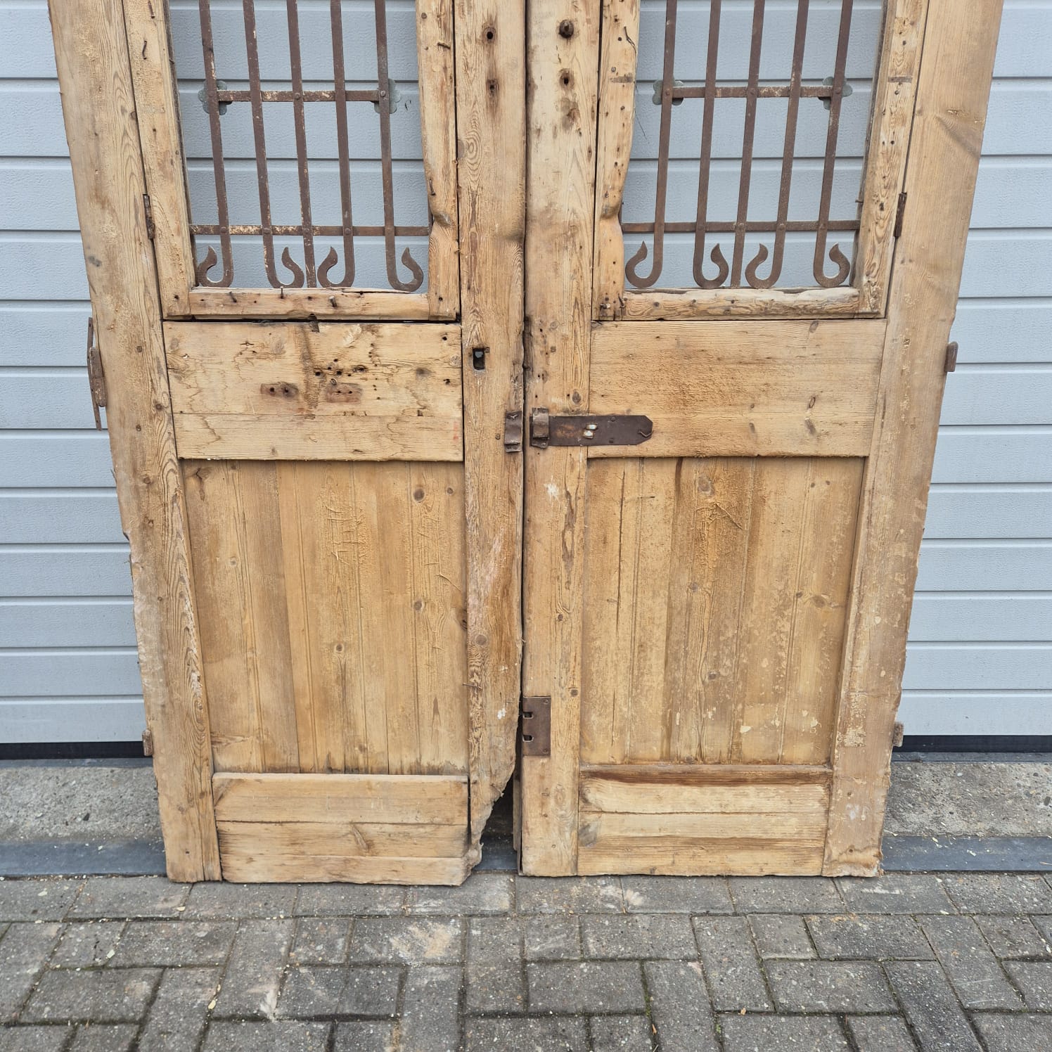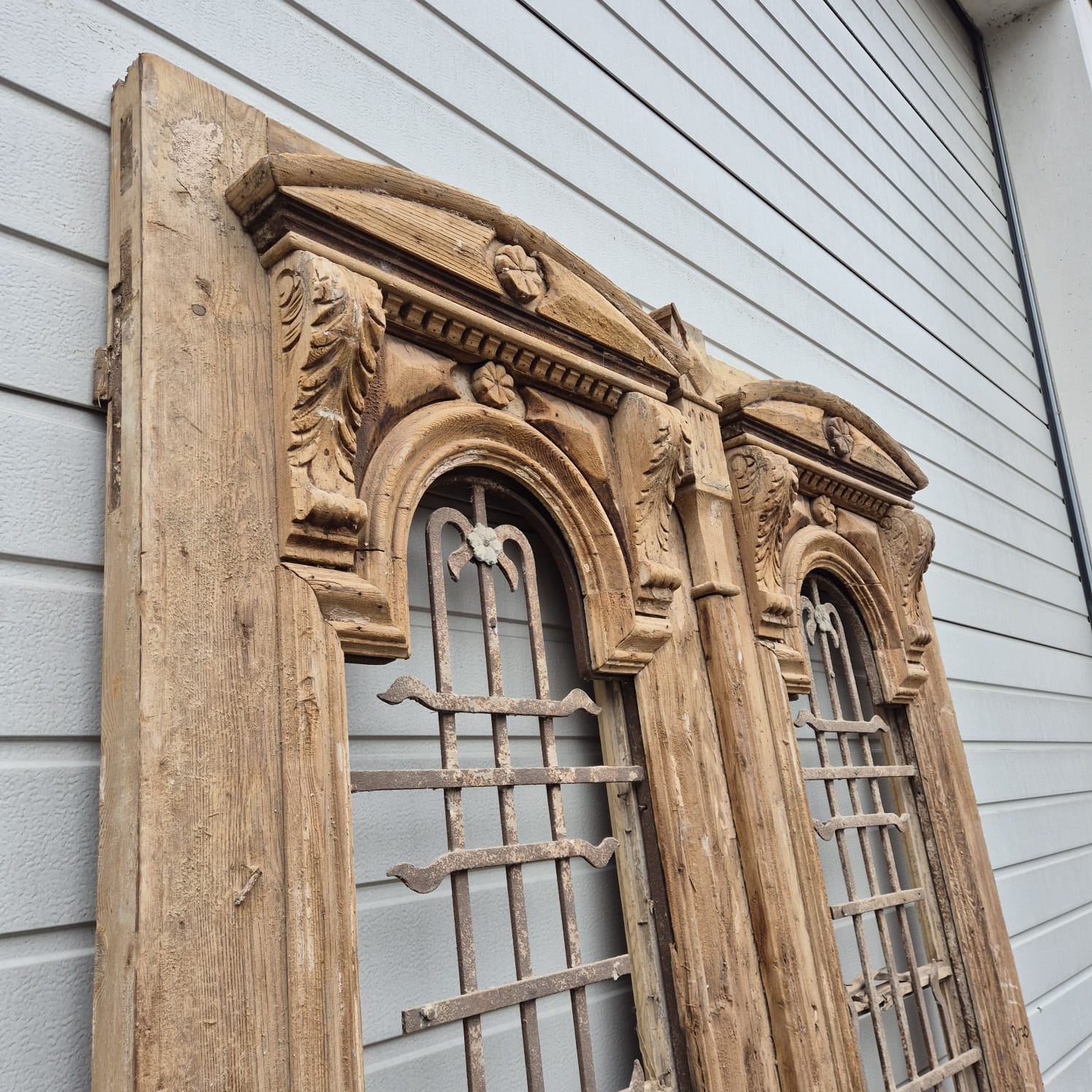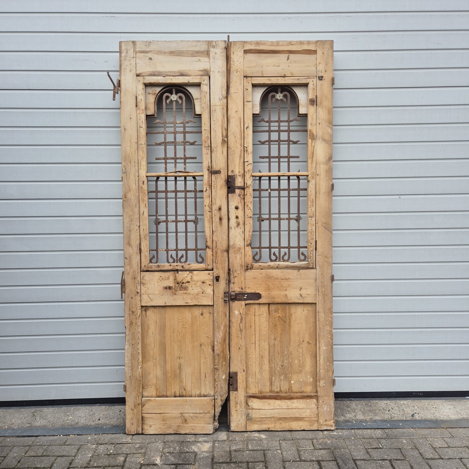Give your home a unique character with this original example from the early 20th century. This double front door impresses with its authentic patina and the high-quality craftsmanship typical of the Gründerzeit era. Whether professionally restored or preserved in its charming shabby chic state, it is a real eye-catcher for historic buildings, country houses, or as a striking contrasting element in modern architecture.