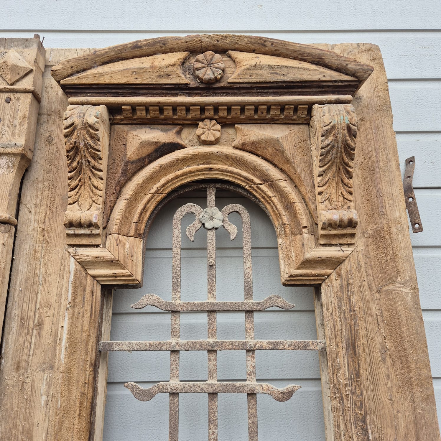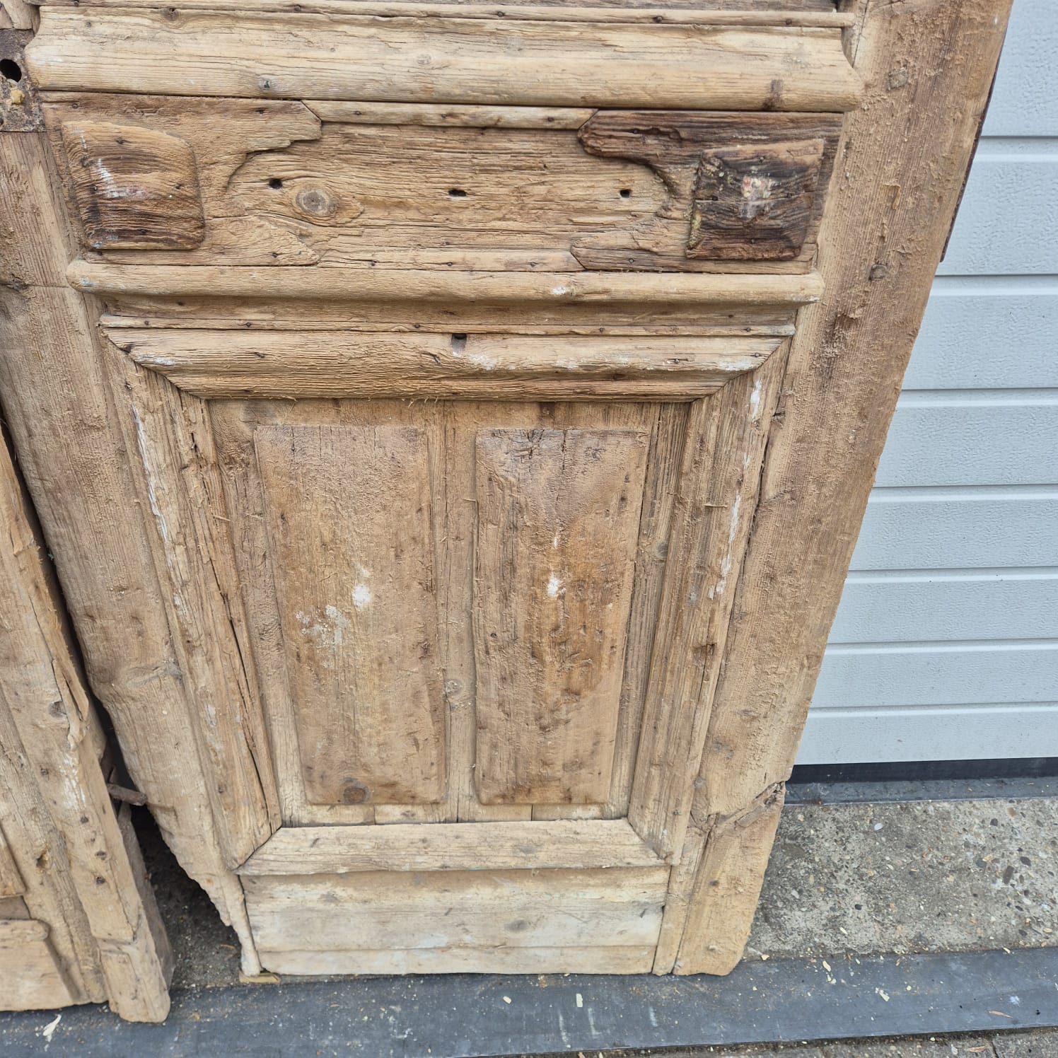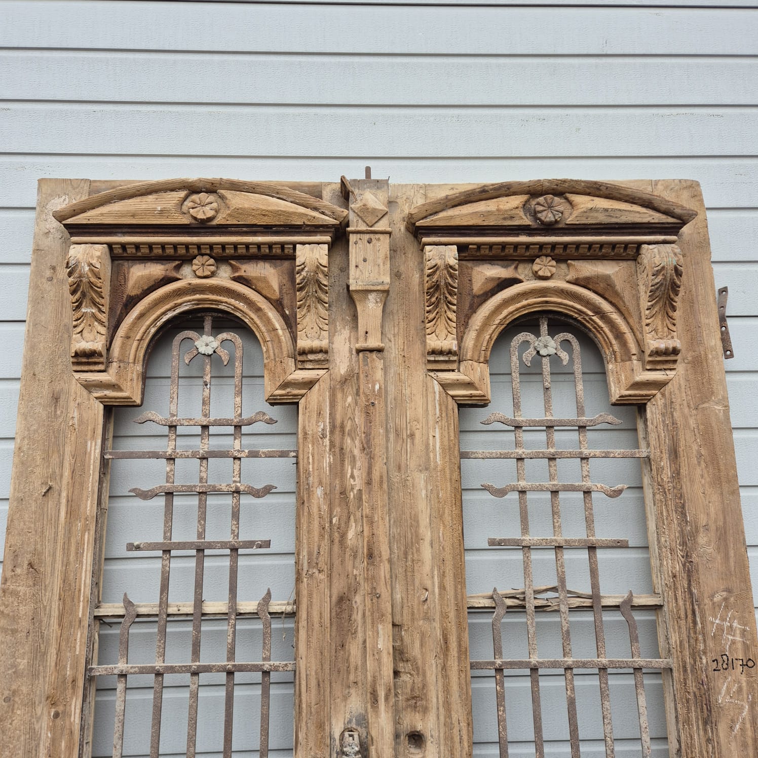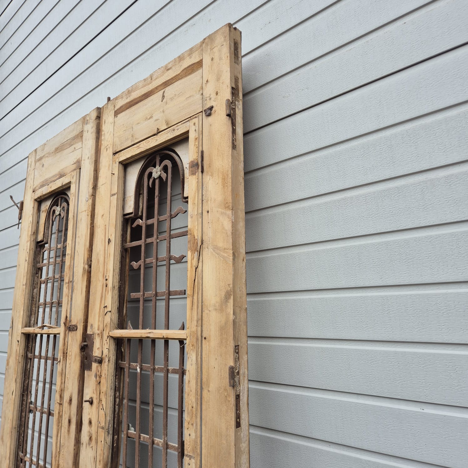 Give your home a unique character with this original example from the early 20th century. This double front door impresses with its authentic patina and the high-quality craftsmanship typical of the Gründerzeit era. Whether professionally restored or preserved in its charming shabby chic state, it is a real eye-catcher for historic buildings, country houses, or as a striking contrasting element in modern architecture.