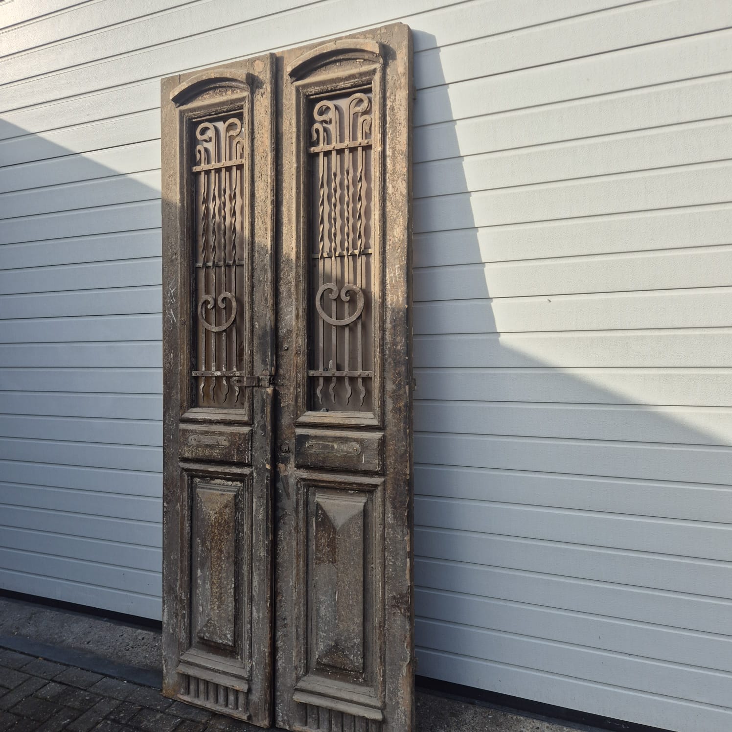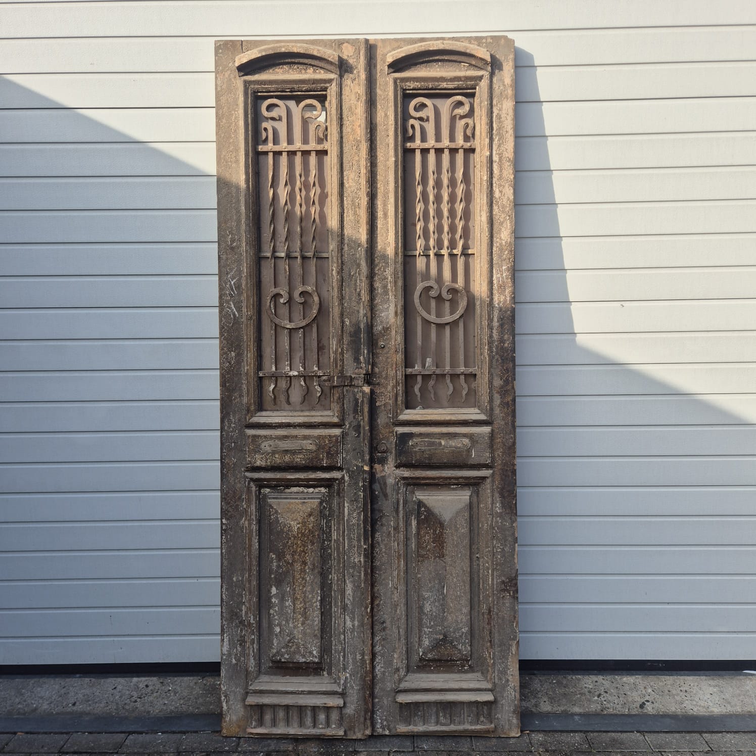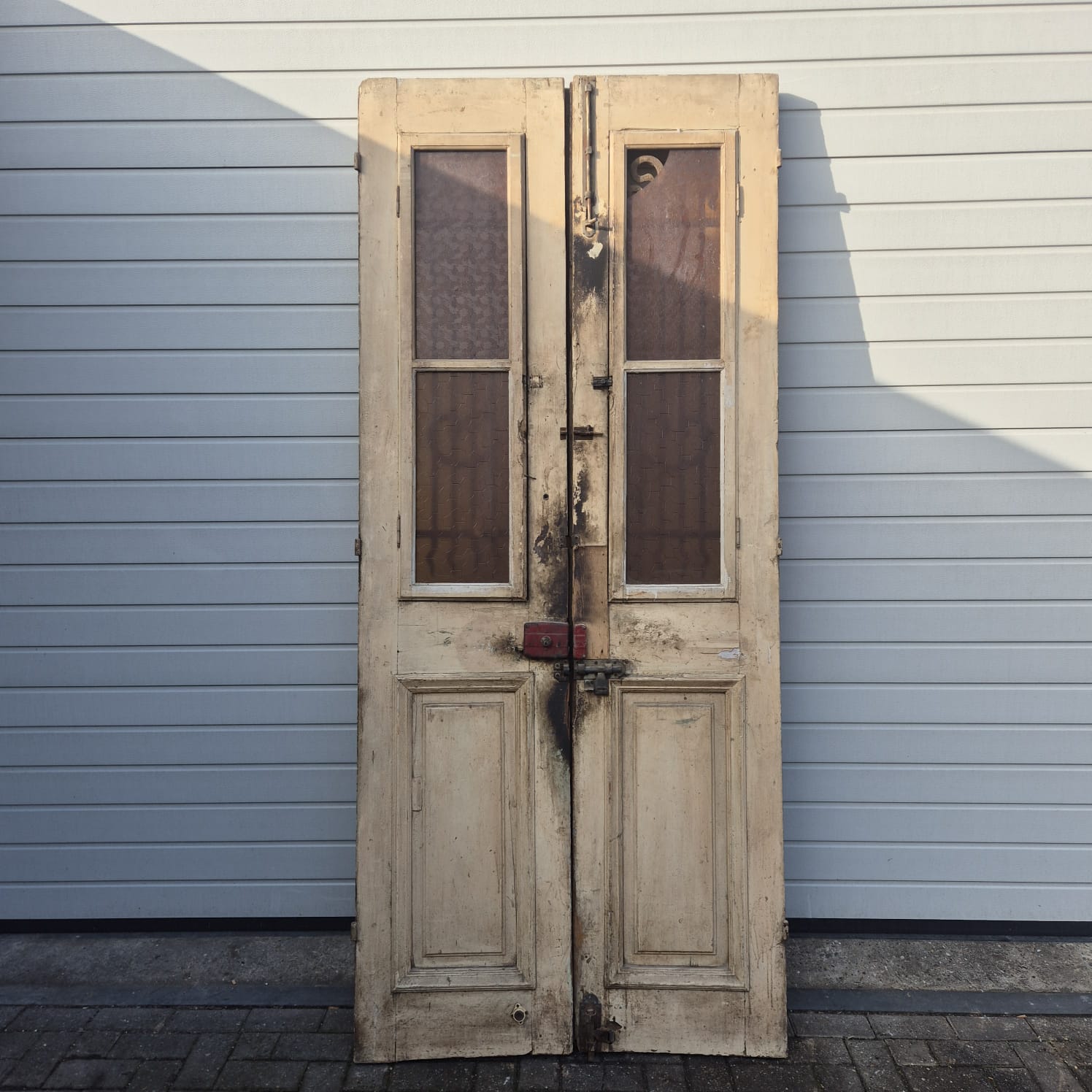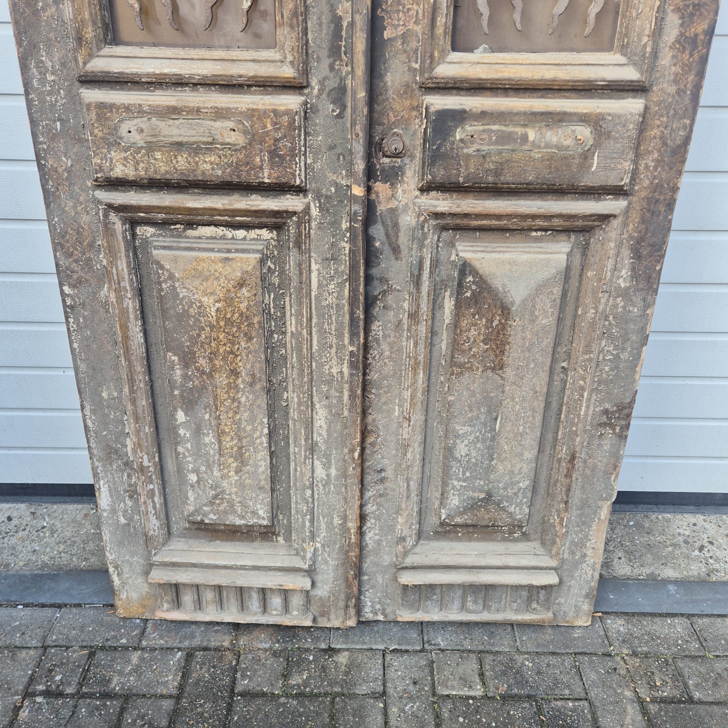 Give your home a unique character with this original example from the early 20th century. This double front door impresses with its authentic patina and high-quality Gründerzeit craftsmanship. Whether you have it professionally restored or leave it in its charming shabby chic state, it is a real eye-catcher for historic buildings, country houses, or as a striking contrasting element in modern architecture.