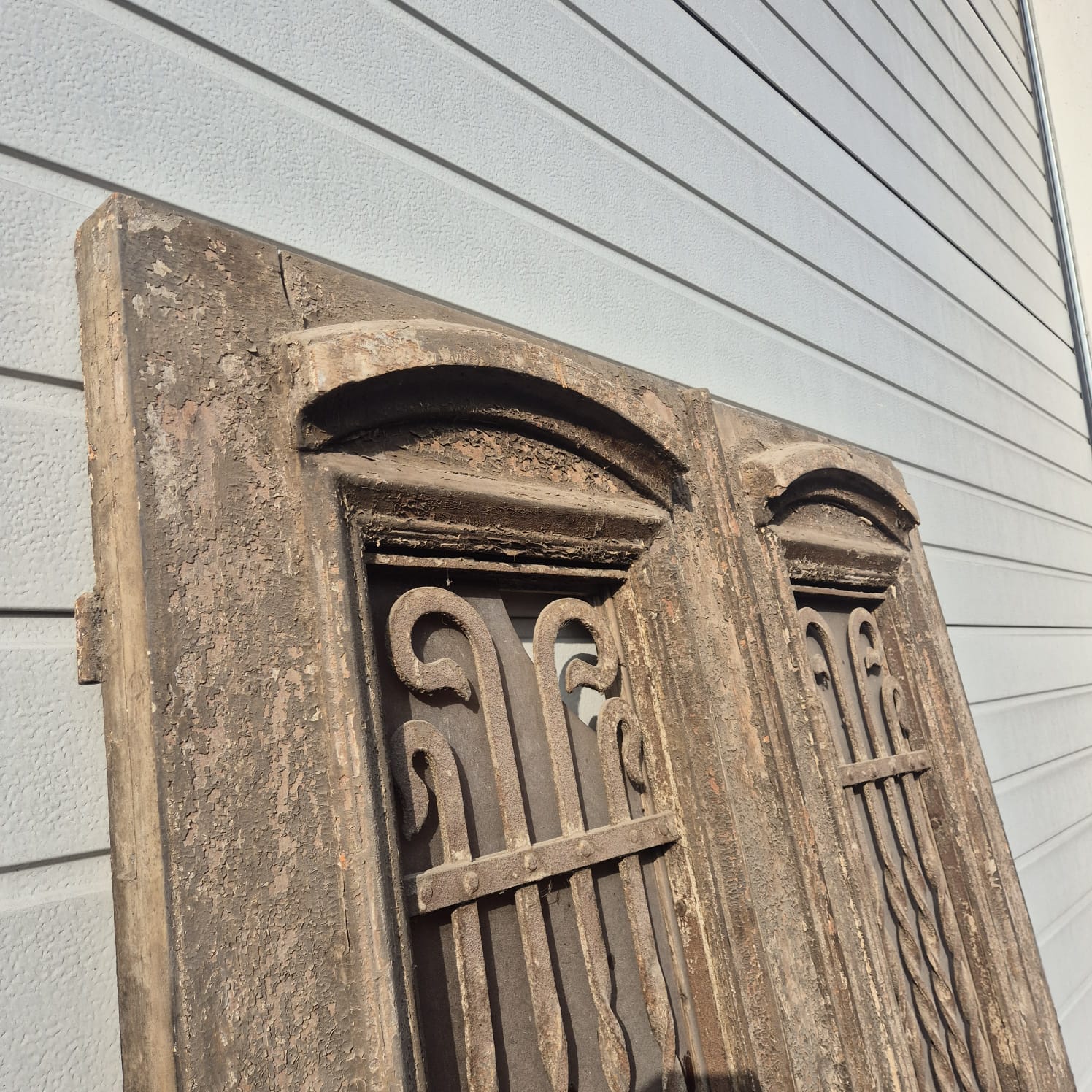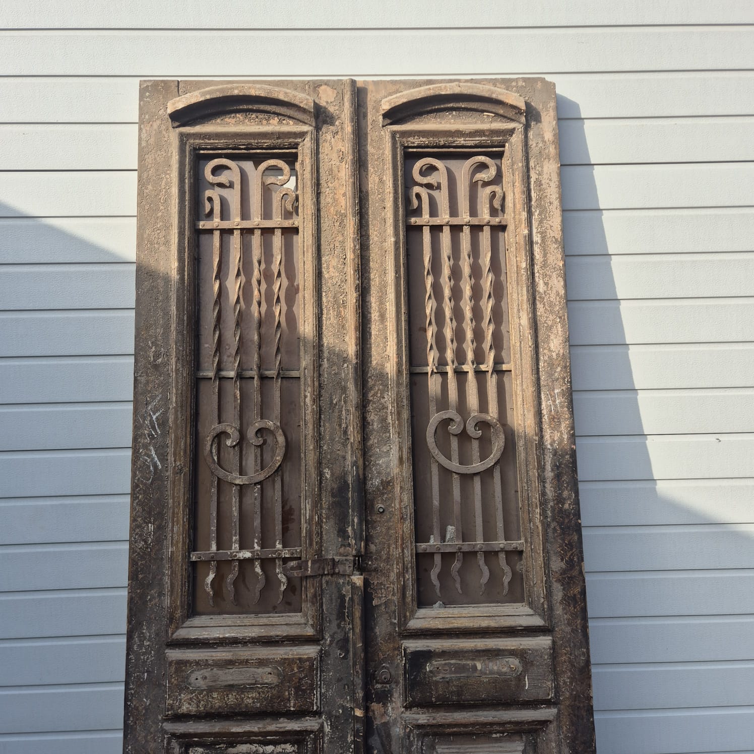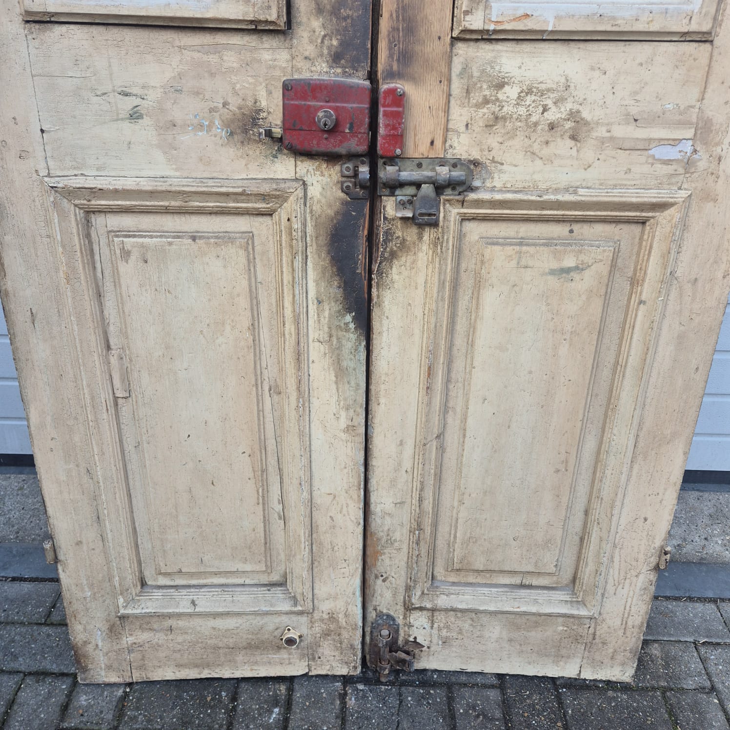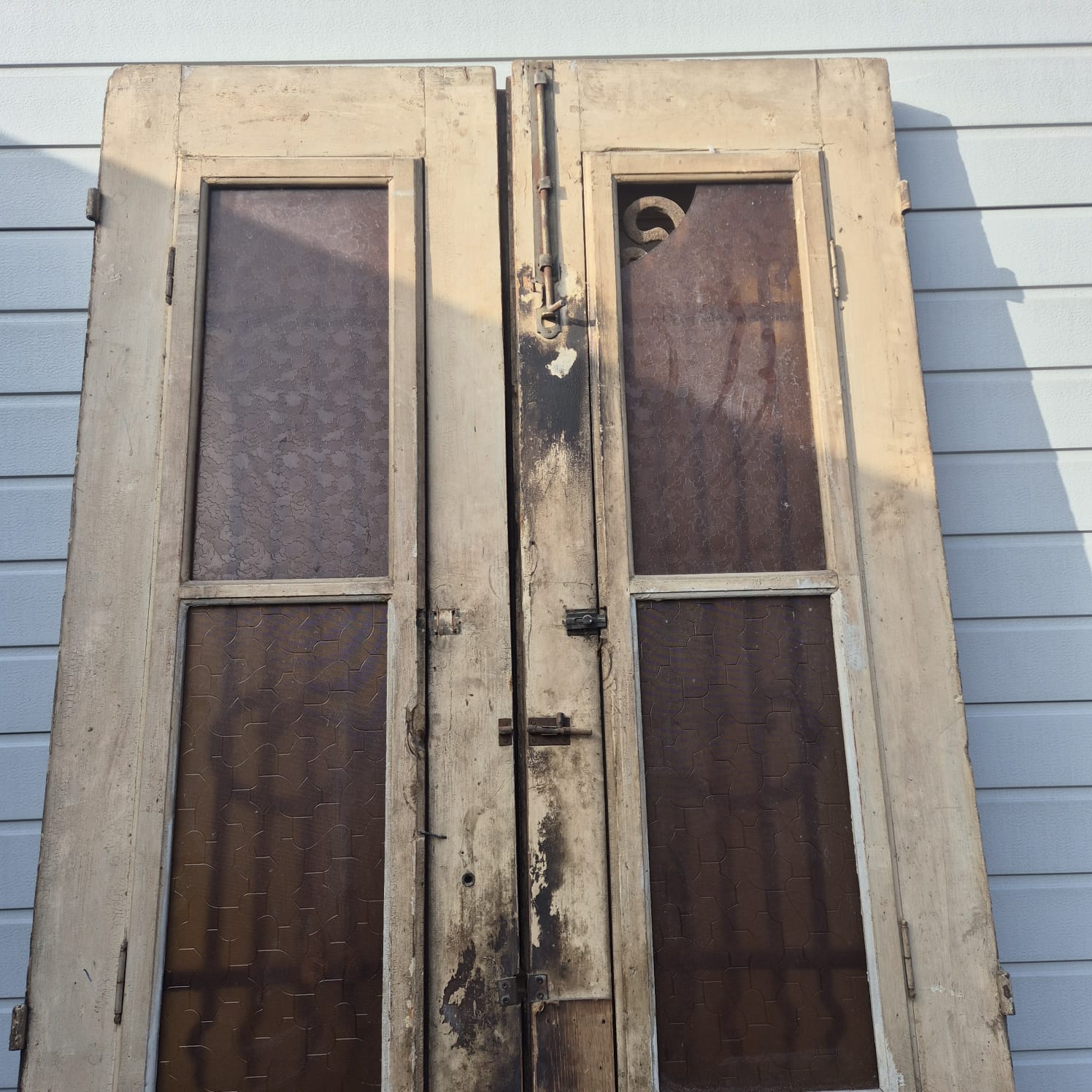 Give your home a unique character with this original example from the early 20th century. This double front door impresses with its authentic patina and high-quality Gründerzeit craftsmanship. Whether you have it professionally restored or leave it in its charming shabby chic state, it is a real eye-catcher for historic buildings, country houses, or as a striking contrasting element in modern architecture.