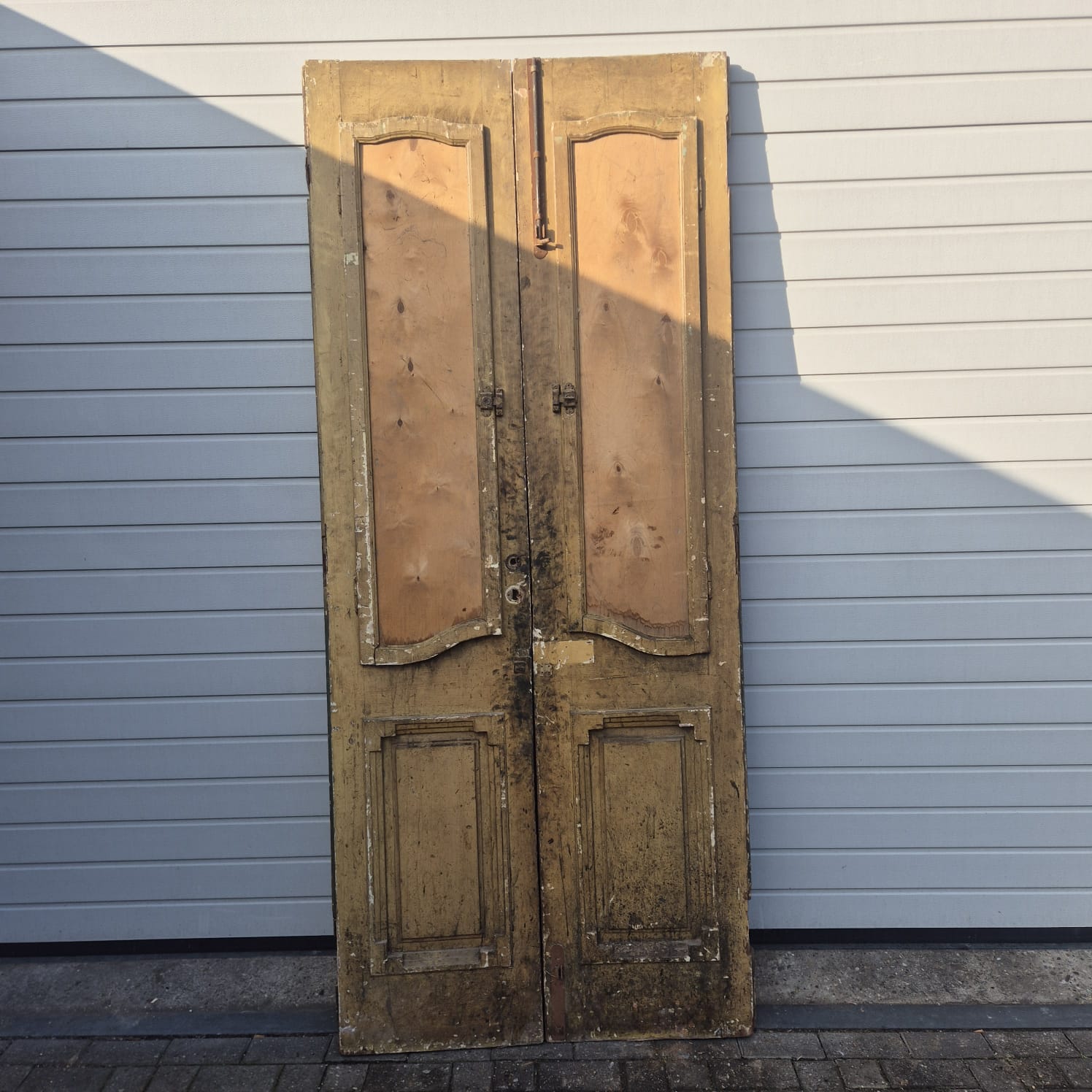 797,48€ Ex Tax:Give your home a unique character with this original example from the early 20th century. This double front door impresses with its authentic patina and high-quality Jugendstil craftsmanship. Whether you have it professionally restored or leave it in its charming shabby chic state, it is a real eye-catcher for historic buildings, country houses, or as a striking contrasting element in modern architecture.