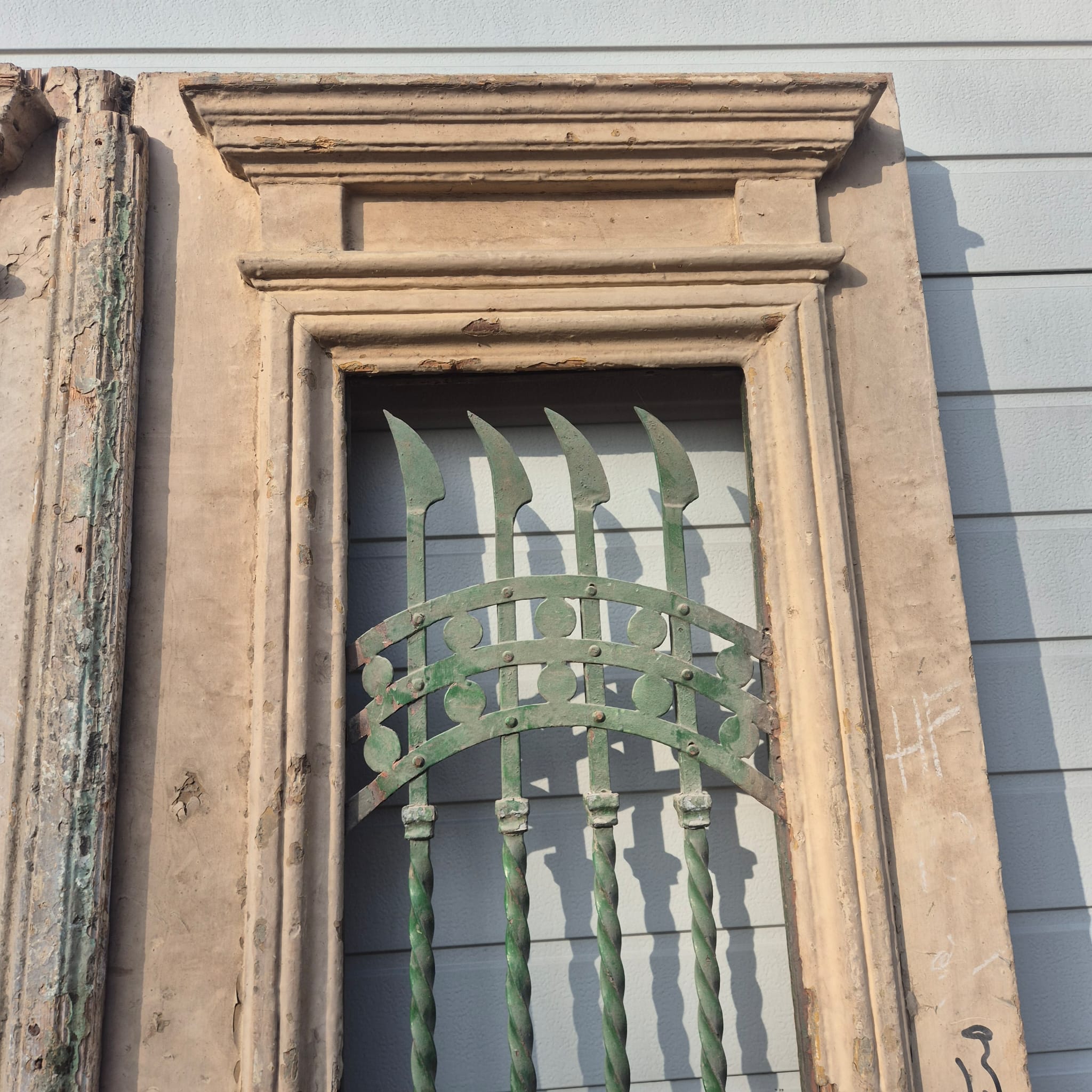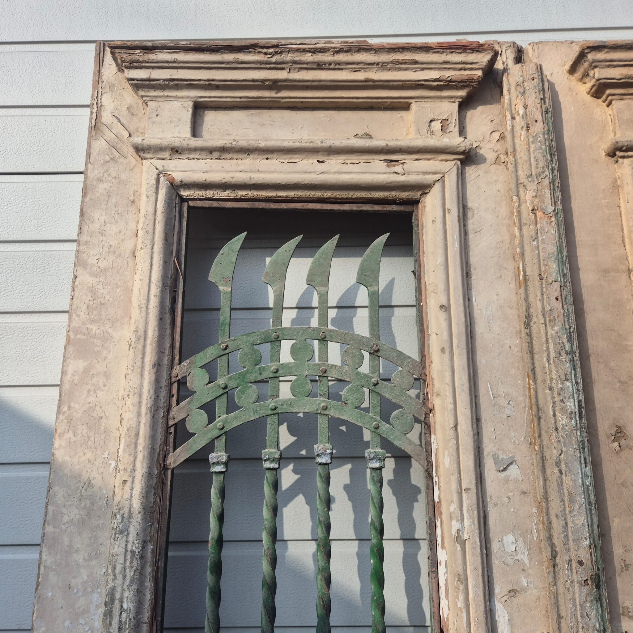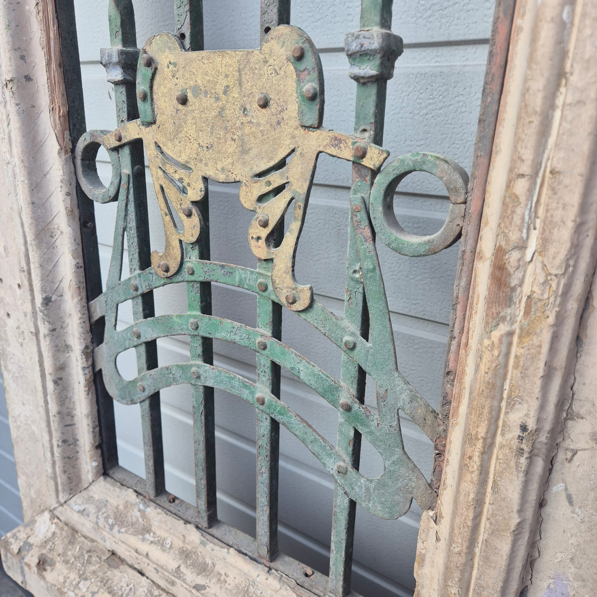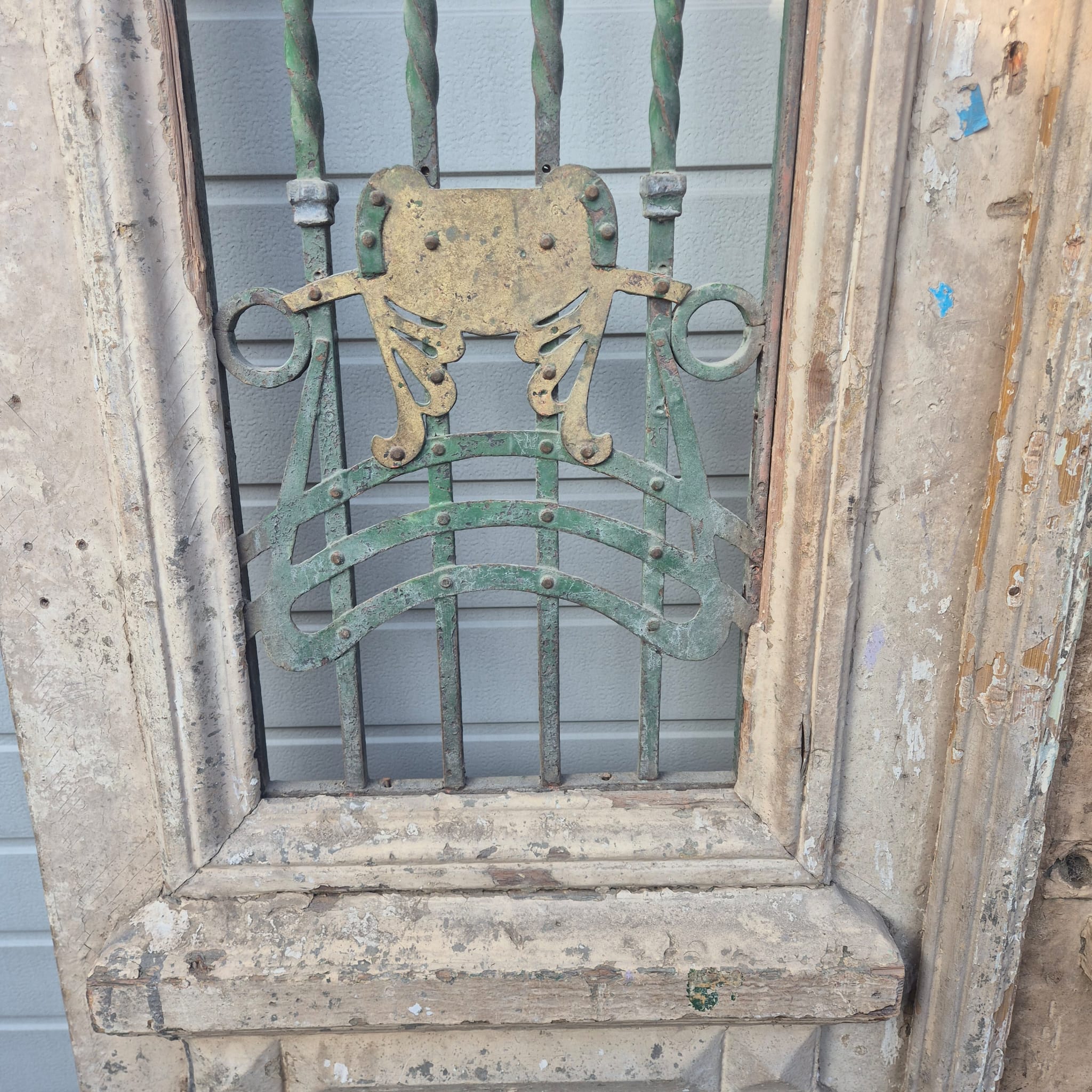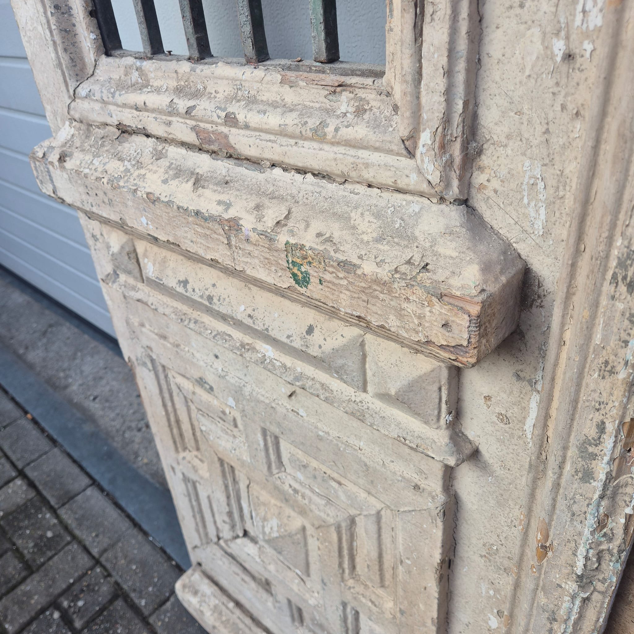 Give your home a unique character with this original example from the early 20th century. This double front door impresses with its authentic patina and high-quality Art Nouveau craftsmanship. Whether you have it professionally restored or leave it in its charming shabby chic state, it is a real eye-catcher for historic buildings, country houses, or as a striking contrasting element in modern architecture.