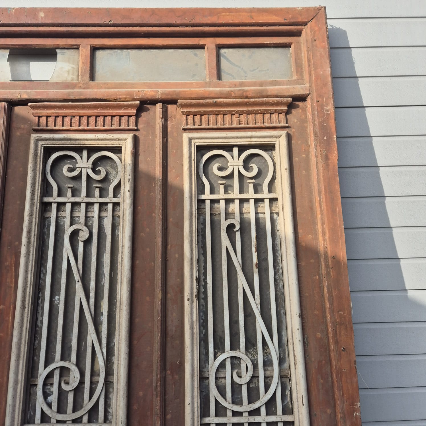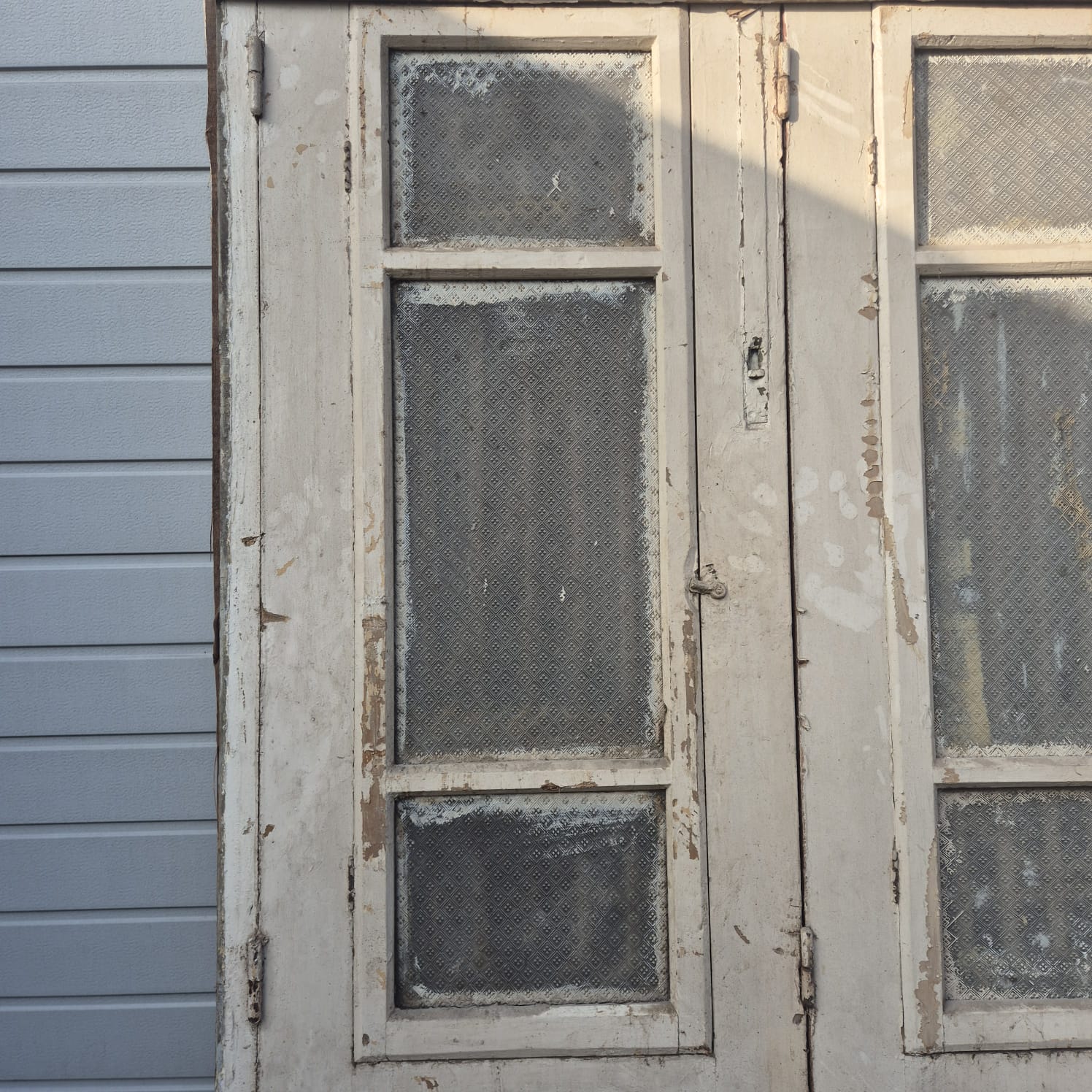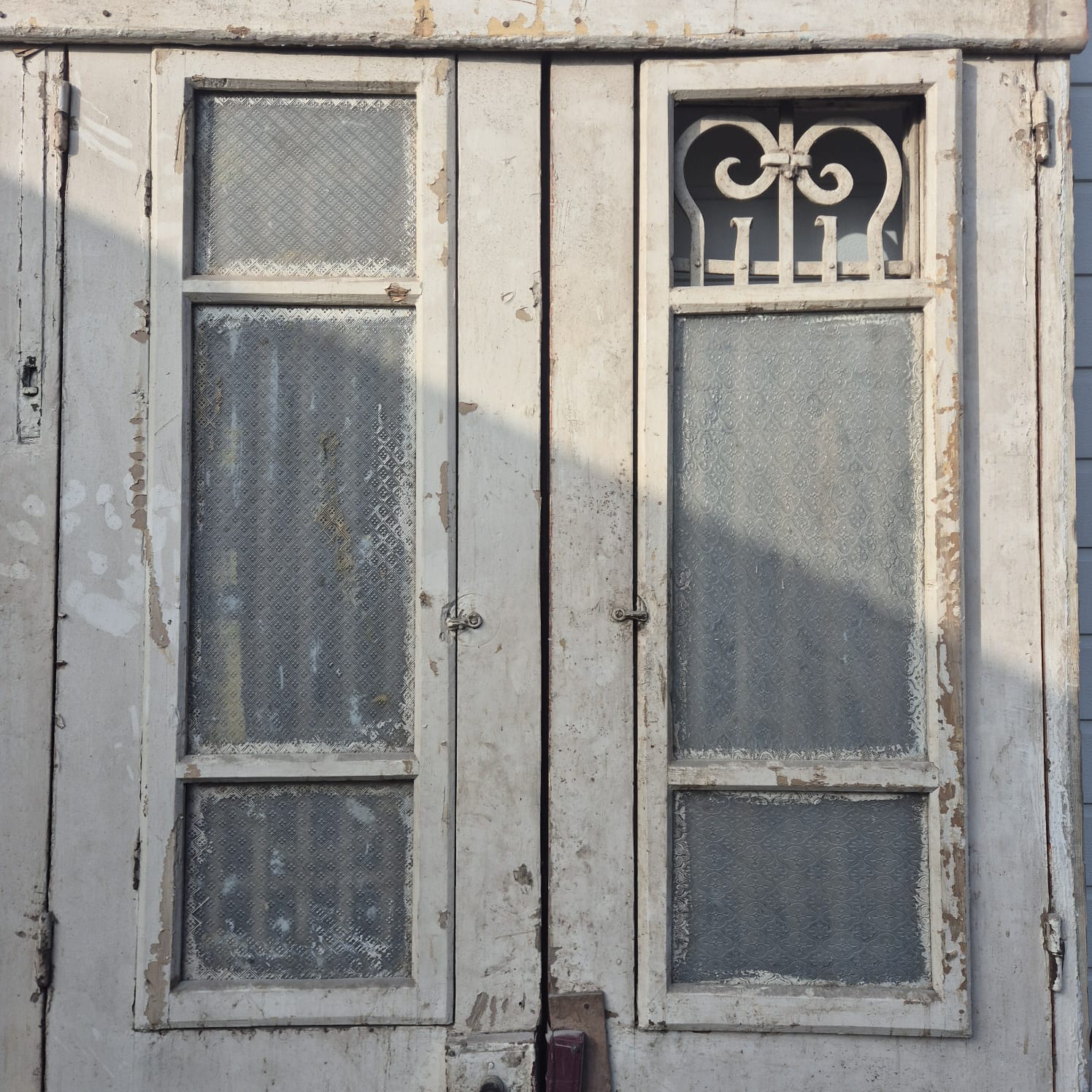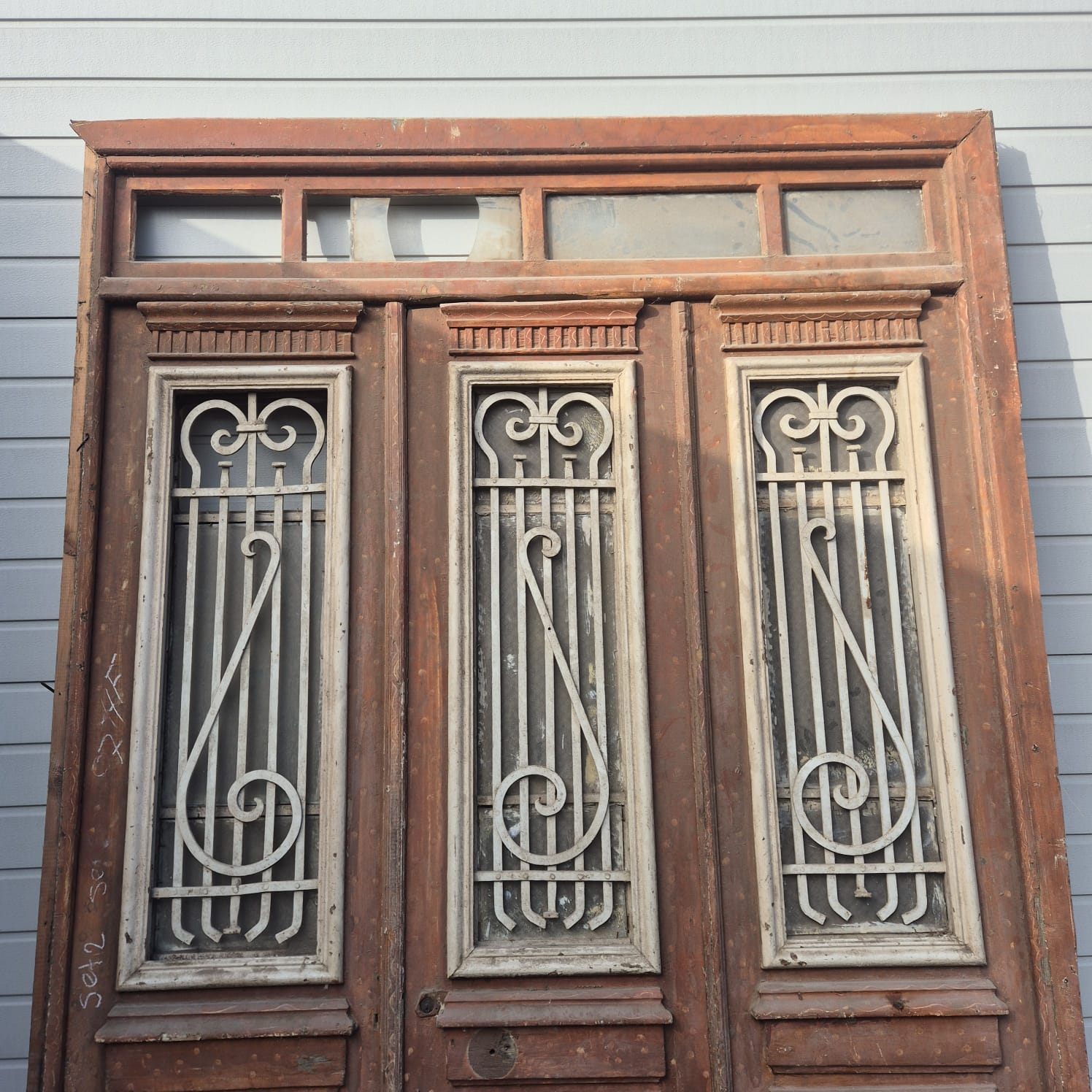 Give your home a unique character with this original example from the early 20th century. This three-panel front door impresses with its authentic patina and high-quality Jugendstil craftsmanship. Whether you have it professionally restored or leave it in its charming shabby chic state, it's a real eye-catcher for historic buildings, country houses, or as a striking contrast in modern architecture. Two units available.