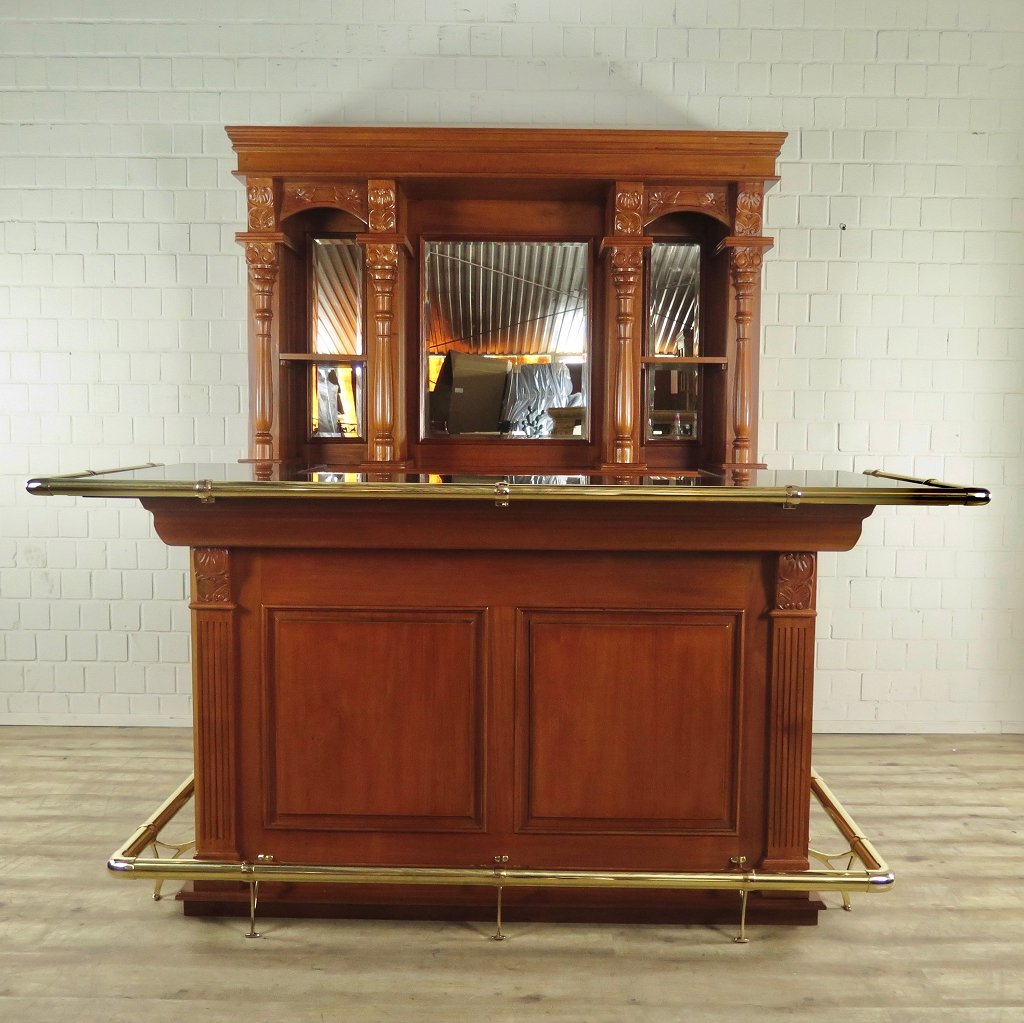 Empire bar made of solid mahogany. Richly decorated with ornaments. The back of the bar is equipped with a mirror.