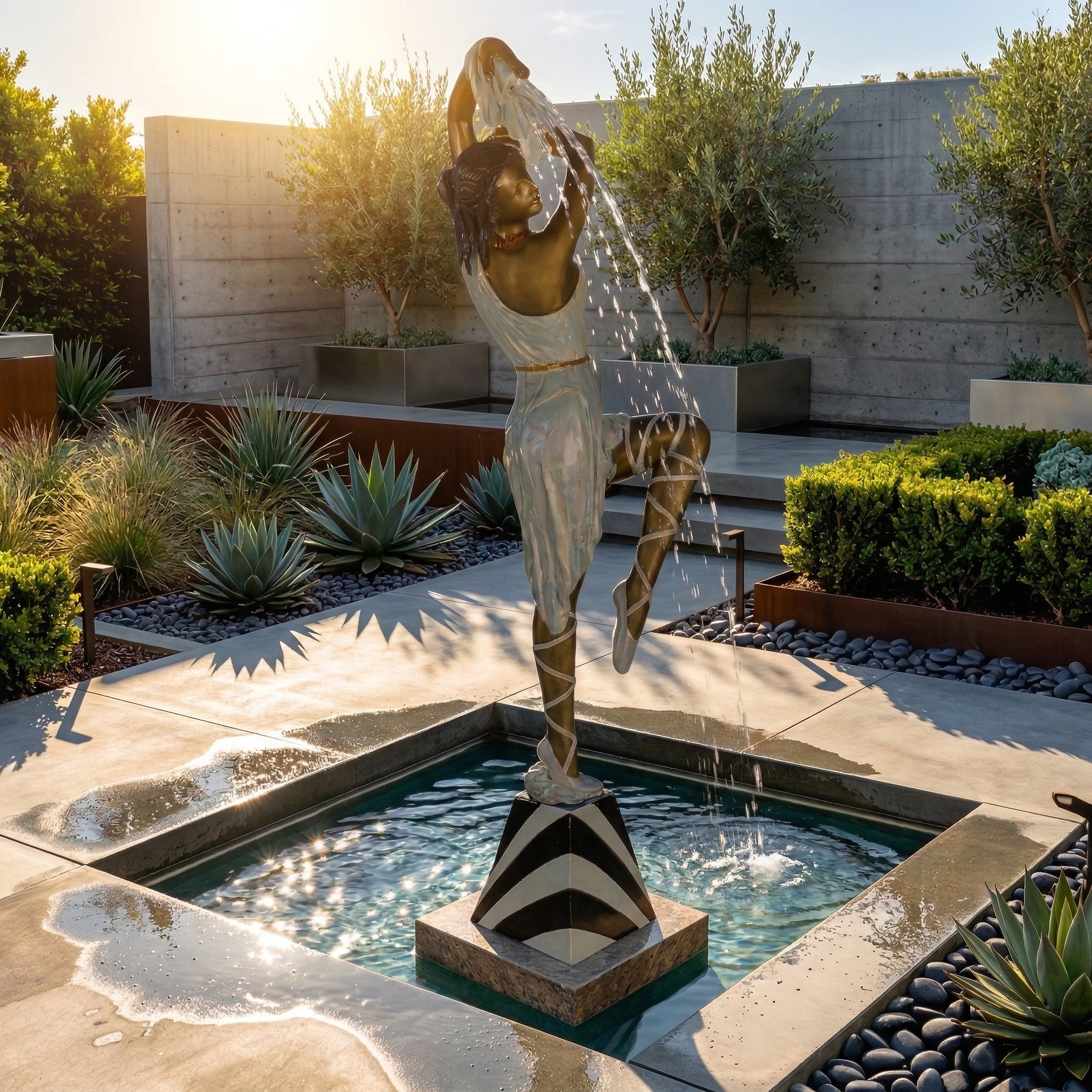 Beautifully shaped fountain in the shape of a ballerina made of bronze.