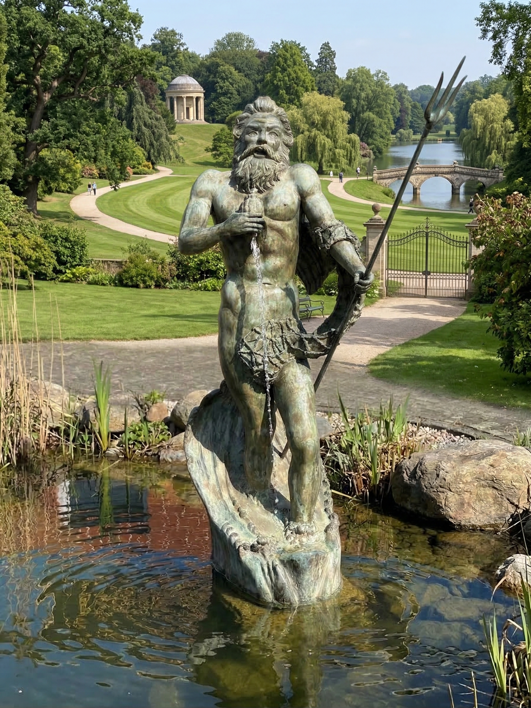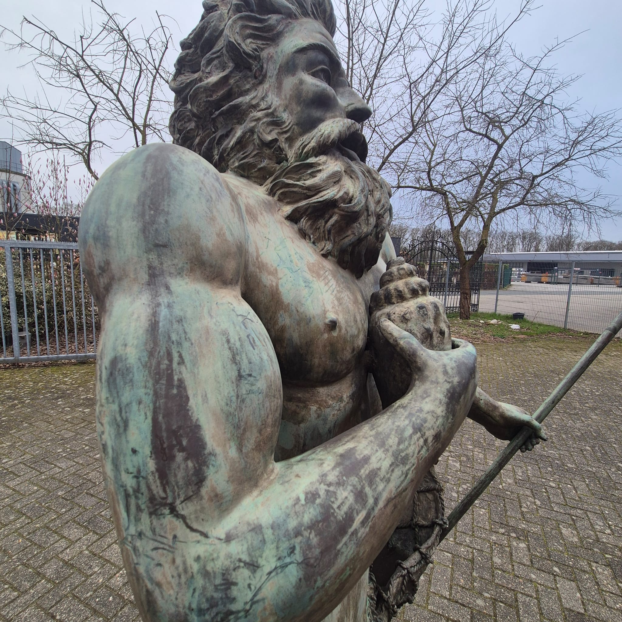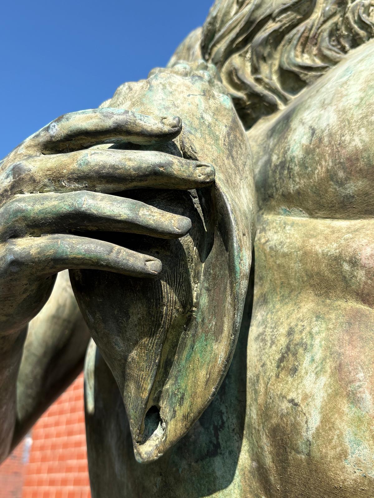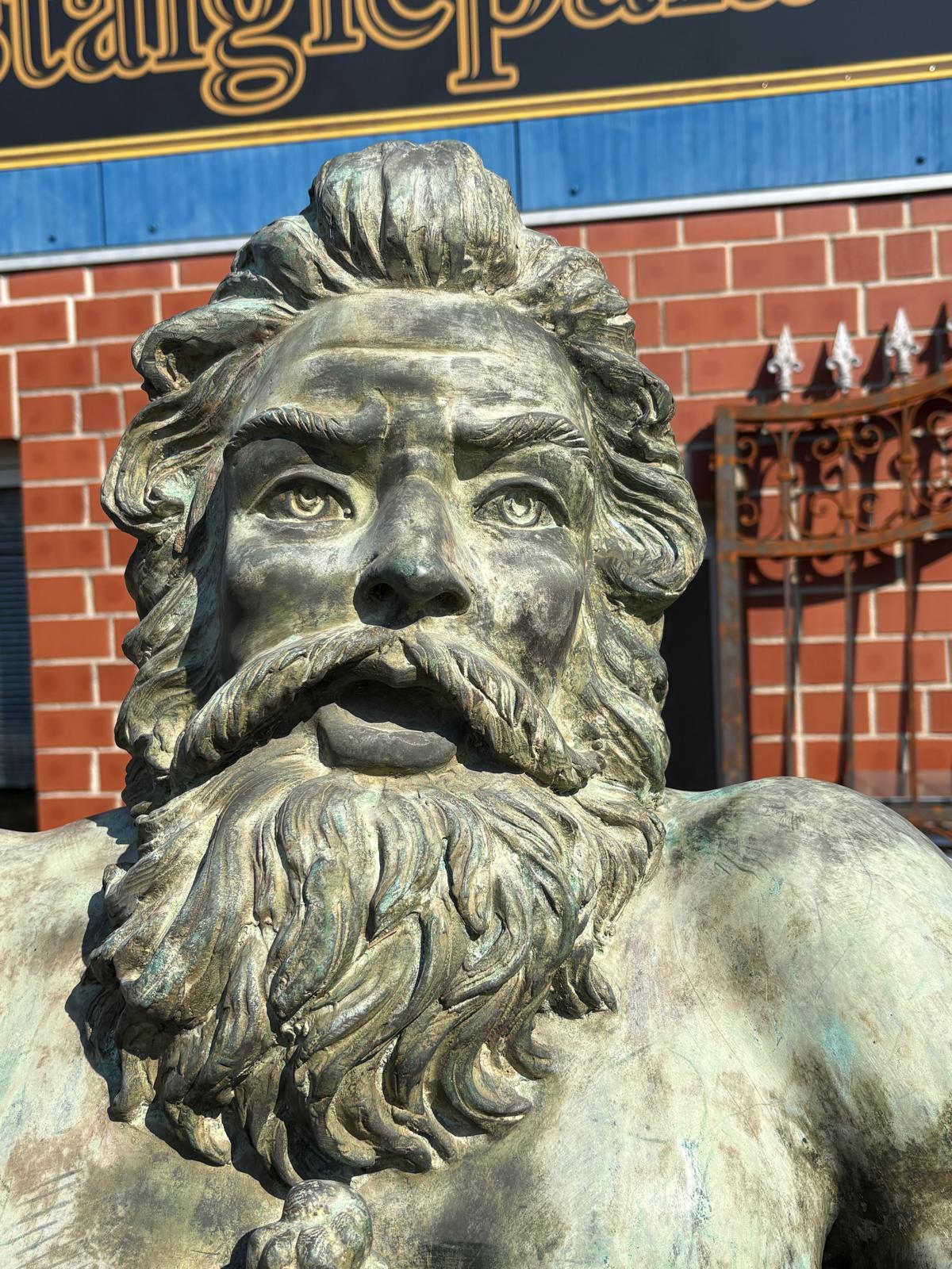 We offer you an exceptional opportunity to acquire a monumental bronze water spout. This impressive figure depicts Poseidon, the Greek god of the sea (or Neptune, his Roman counterpart), in all his power and majesty.