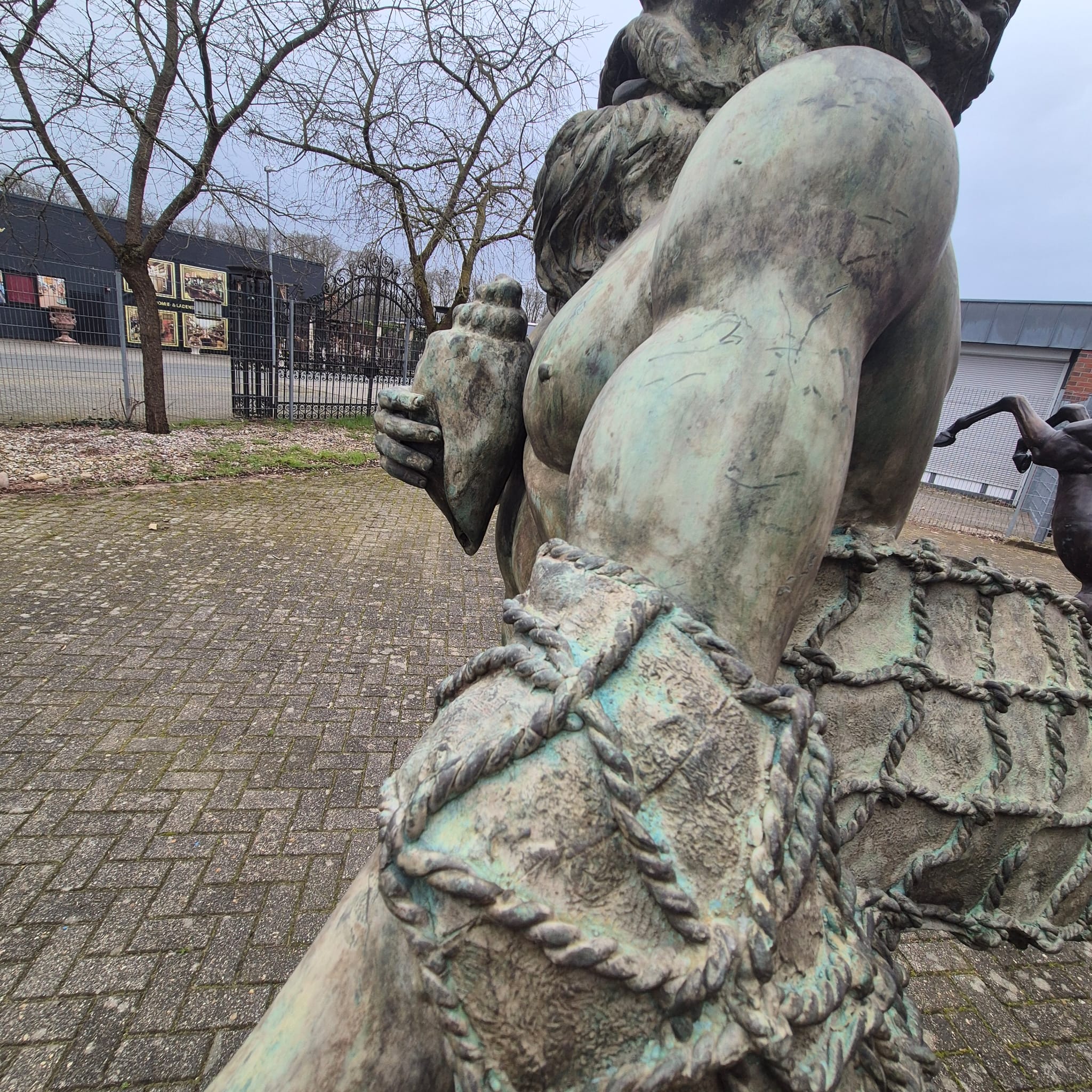 Water spout function: The statue is not only a work of art but also a functional water spout. A connection allows water to flow through the statue, bubbling up from a shell at the base. This creates a soothing and inviting sound effect, turning the statue into an interactive showpiece.