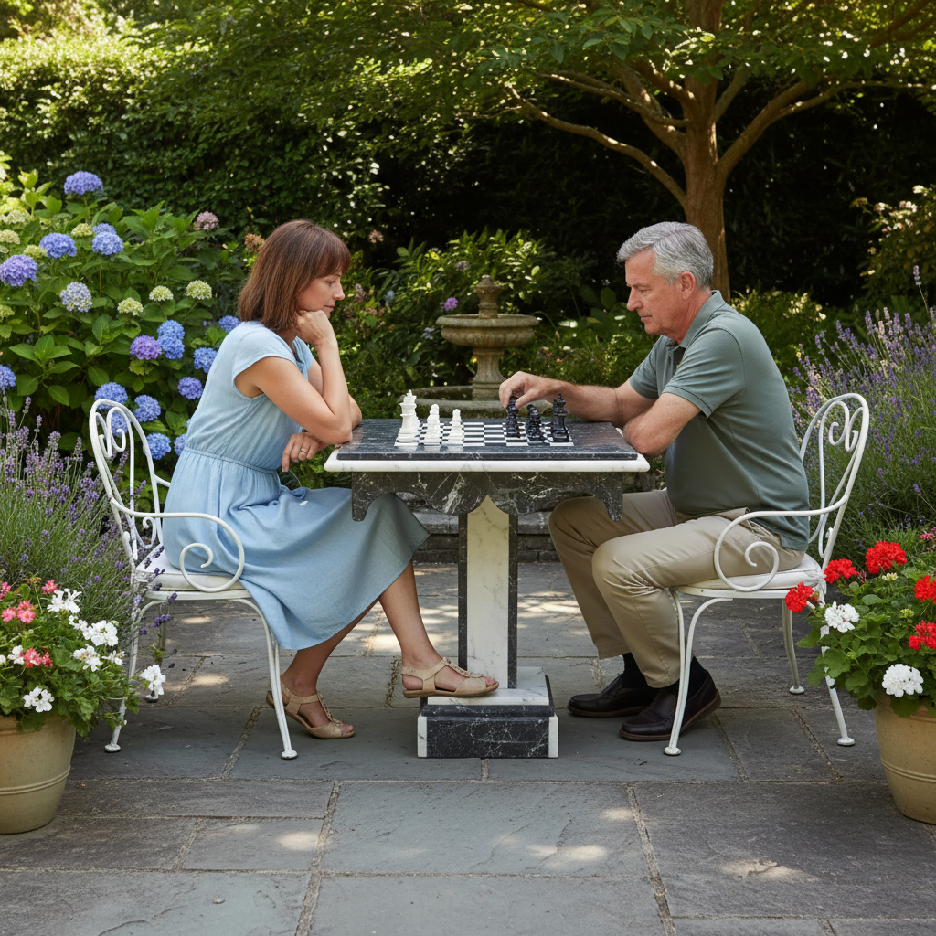 Gaming Table Chess Checkers Marble Black and White