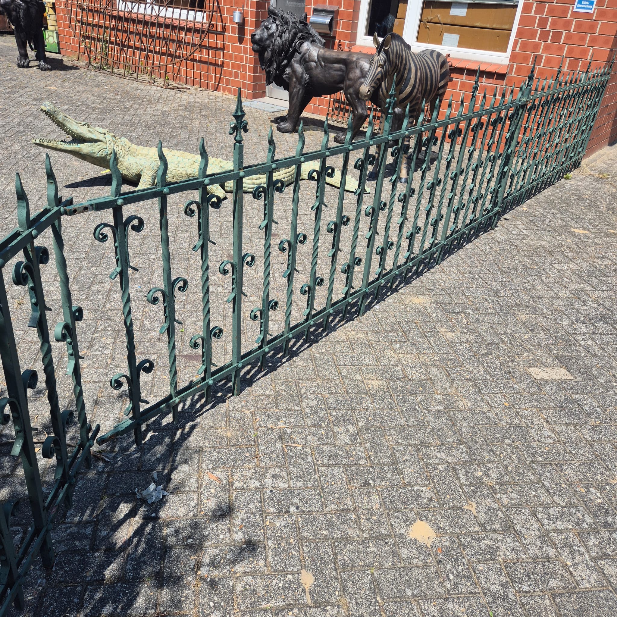 Antique and used: The fence is used and antique, which gives it its authentic charm. The patina that has developed over the decades and any minor irregularities tell the story and provide a unique liveliness. The green color, which is still partly visible, underlines the historical character.