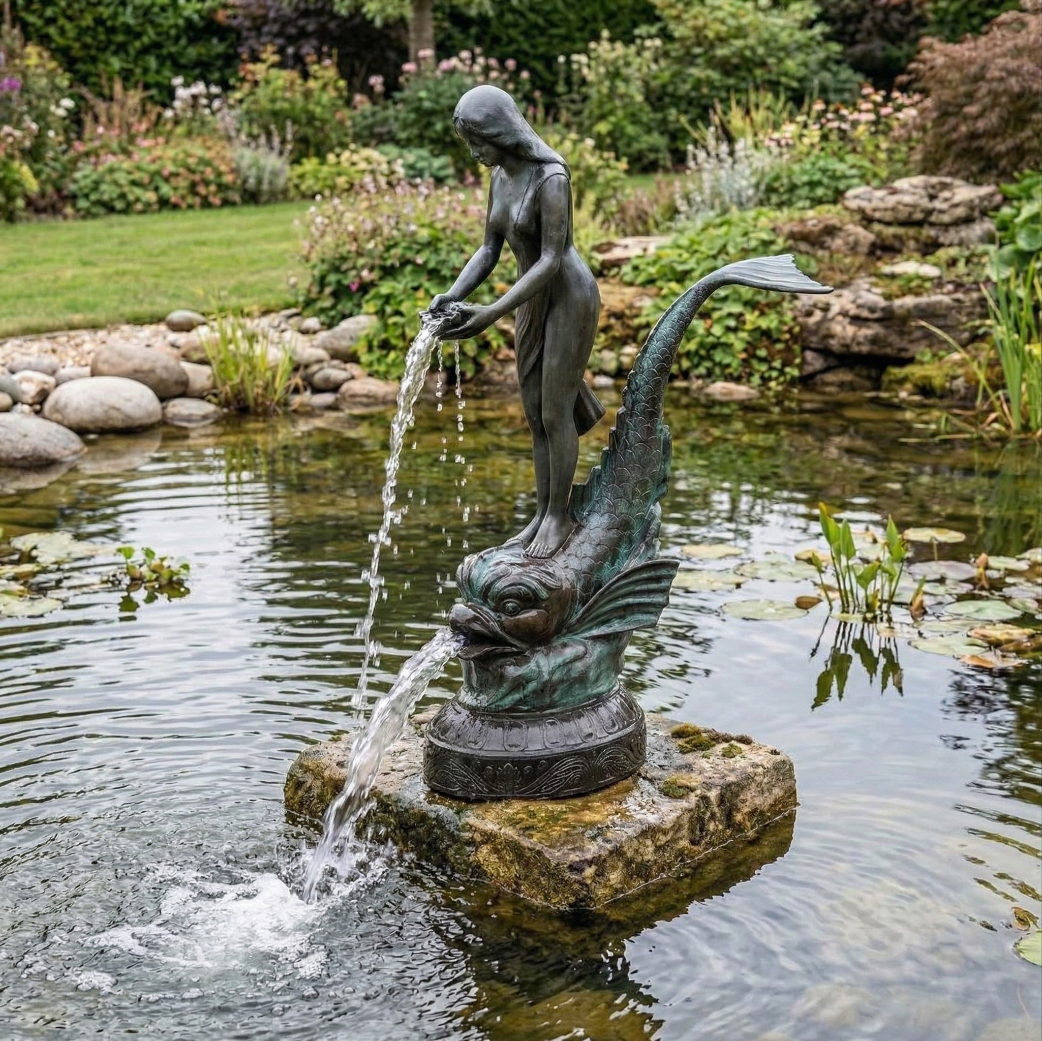 Gargoyle Fountain Woman and Fish Bronze 1,50 m